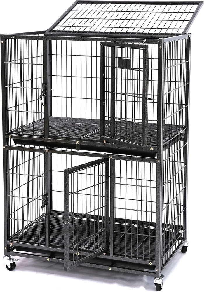 Fa lconbay_US 31" Stackable Heavy Duty Dog Crate 2-Tier Cage w/Wheels Tray for Small Dogs FEATURES 31” Two‑Tier Stackable Heavy Duty Dog Crate – Escape‑Proof Kennel w/ Lockable Wheels 🐕🛡️ 🪶 Product Description Maximize space and comfort for your small dogs with this 31″ two‑tier stackable heavy duty dog crate kennel ! Designed with stability, security, and convenience in mind, this vertical dog cage is perfect for multi‑pet homes, breeders, groomers, pet hospitals or boarding facilities . Each tier comfortably fits small breeds up to 45 lbs , and the sturdy integrated design reduces tipping or wobbling — giving you confidence and your pets a secure retreat. Built with escape‑proof locks, multiple access doors, smooth lockable wheels, and easy‑clean features , this kennel delivers strength and thoughtful everyday usability for stress‑free care and training. 🐾 📏 Specifications • Overall Size: 31″ L x 20.3″ W x 45.67″ H (Two Tiers) • Tier Height: 18.1″ per level • Fits Dogs: Small & medium breeds (up to ~45 lbs per tier) • Material: Heavy duty powder‑coated metal wire • Color: Black • Doors: Front and top access per tier • Wheels: 4 Lockable 360° casters • Flooring: Paw‑friendly metal grid + pull‑out tray 🔧 Key Features ✅ Two‑Tier Space‑Saving Design: Vertical crate system saves floor space while offering two secure areas — great for multiple pets or kennel use. ✅ Escape‑Proof Dual Lock System: Auto‑lock plus extra latch keeps even the cleverest pups safely inside. ✅ Multi‑Door Convenience: Front door and top door per tier make training, feeding, and interaction effortless. ✅ Easy to Move: Four 360° rotatable and lockable wheels let you reposition the crate anywhere with stability. ✅ Hygienic & Easy Cleaning: Removable tray and paw‑friendly grid make cleanup quick and efficient. ✅ Heavy Duty & Long‑Lasting: Thick metal construction with powder‑coated finish resists rust and energetic dogs. ✅ Comfort & Safety: Floor grid spacing and solid build keep pets elevated, comfortable, and secure. 🌟 Why You’ll Love It ✔️ Saves floor space without compromising strength. ✔️ Dual access encourages interaction and reduces anxiety. ✔️ Secure auto‑locks give peace of mind. ✔️ Smooth mobility with secure placement using lockable wheels. ✔️ Easy cleanup keeps your space hygienic. ✔️ Great for breeders, groomers, vet clinics, or multi‑pet households! 📦 What’s in the Box • 2 × Tiered Dog Crate Sections • 2 × Paw‑Friendly Metal Floor Grids • 2 × Pull‑Out Leak‑Proof Trays • 4 × Lockable 360° Wheels • Assembly Screws & Hardware • User Manual 💡 Tips for Use • Measure your dog’s length & height, then add 2–4″ for a comfortable fit. • Use top doors for easy interaction during training or feeding time. • Lock wheels for stationary use and unlock for easy relocation. • Clean trays regularly to maintain a tidy and healthy crate environment. 📦 Fastest Shipping Guaranteed Unlike other stores that offer cheaper products but come with delivery delays of up to 30 days, we take pride in offering fast and reliable shipping. Based in the American, we guarantee that your order will be delivered within 3–8 days, with no unexpected delays (unless under rare circumstances). When you shop with us, you’re choosing speed and satisfaction. 📦🚚 ❓ FAQs Q1: What size dogs are suitable for this crate? 👉 Ideal for small to medium dogs up to ~45 lbs per tier — always measure your pet for best fit. Q2: Can the crate stay stable even when moved? 👉 Yes — lockable casters ensure stability once in place. Q3: Are the trays easy to remove? 👉 Absolutely — the pull‑out trays make cleaning fast and mess‑free. Q4: Do both tiers have doors? 👉 Yes — each level features a front and top door for easy access. Q5: Is assembly difficult? 👉 Not at all — simple assembly with included hardware and instructions. Item model number 4G-285S-0KP5 Age Range Description All Life Stages Style Durable Number of Items 1 Target Audience Keyword dogs Breed Recommendation Medium size breed Product Dimensions 31"L x 20"W x 46"H Material Alloy Steel Model Name 2-Tier dog cage Directions Suitable for small to medium-sized dogs Is Discontinued By Manufacturer No Specific Uses For Product Indoor Item Package Dimensions L x W x H 44 x 31.5 x 4.5 inches Included Components Lockable Caster Wheels, Manual Instruction, Removable Tray & Floor Grids, Safe Locks Gap Size 1.1 Inches Item Weight 60.6 Pounds Specific Uses for Product Indoor Item Dimensions LxWxH 31 x 20 x 46 inches Color Black Manufacturer Station Size 31.0"L x 20.0"W x 46.0"H 31.5 inches x 44.0 inches x 4.5 inches. Weight: 60.6 lb PAYMENT We accept all payments via Ebay using Credit Cards , Affrim, PAYPAL , Apple Pay and many others SHIPPING We are always working hard to ensure your package arrives as soon as possible. Please understand that some factors like weather, high postal traffic, and the performance of shipping companies are outside of our control. DELIVERY & RETURN POLICY We offer a 30-Day Return Policy on items in which you are not completely satisfied with. You have the option of a full-refund.