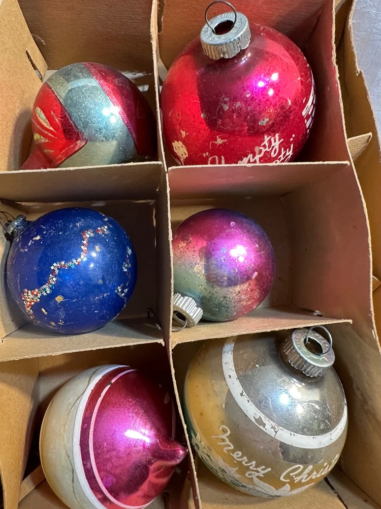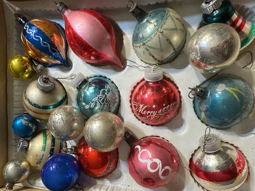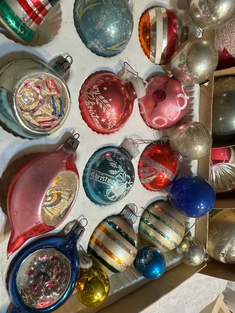 Vintage mercury, glass and vintage glass ornaments various sizes colors styles