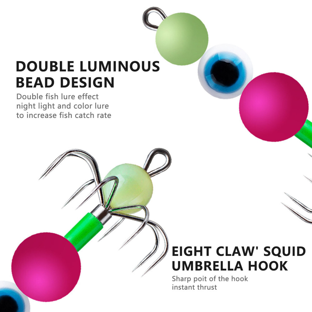 Features: Luminous Squid Jig Hooks: These hooks are designed with a luminous feature, making them highly visible underwater for increased fishing success. Octopus Squid Hook Fishing Lure: The unique design of these hooks mimics the movement of a real octopus or squid, attracting a wide range of fish species. Convenient to Use Cuttlefish Fishing Bait Lure Hook: The cuttlefish-inspired design of these fishing bait lure hooks ensures easy and hassle-free baiting, saving you time and effort. Suitable for Various Environments: These hooks are suitable for use in various fishing environments, ensuring versatility and adaptability to different fishing conditions. Suitable for Halibut Marlin Bass: Whether you're targeting halibut, marlin, or bass, these hooks are designed to meet the specific needs of these fish species, increasing your chances of a successful catch. Specifications: Material: Metal Size: 6.3*3cm Notes: Please allow slightly errors due to manual measurement and different monitors. Package includes: Chocie 1-2: 1* 3pcs*Hook Set OR Chocie 3: 1* 10pcs*Hook Set