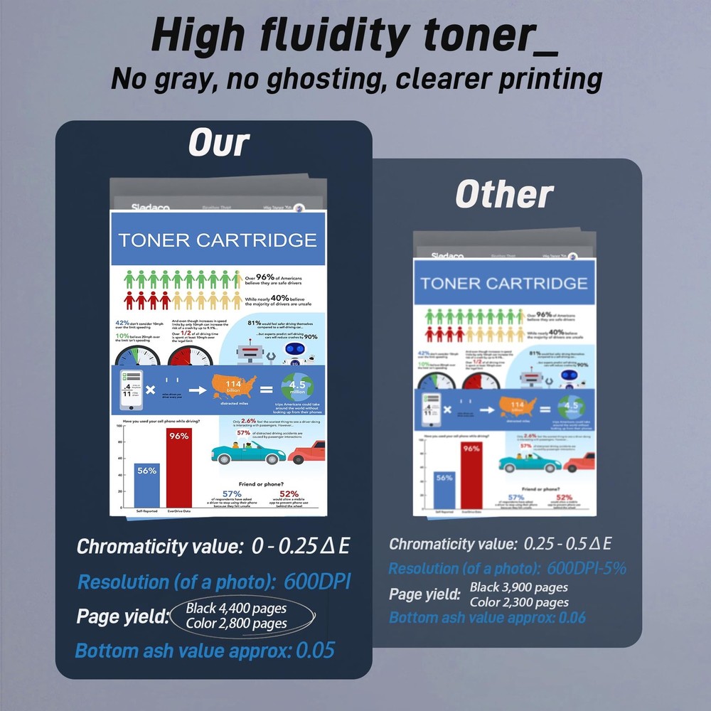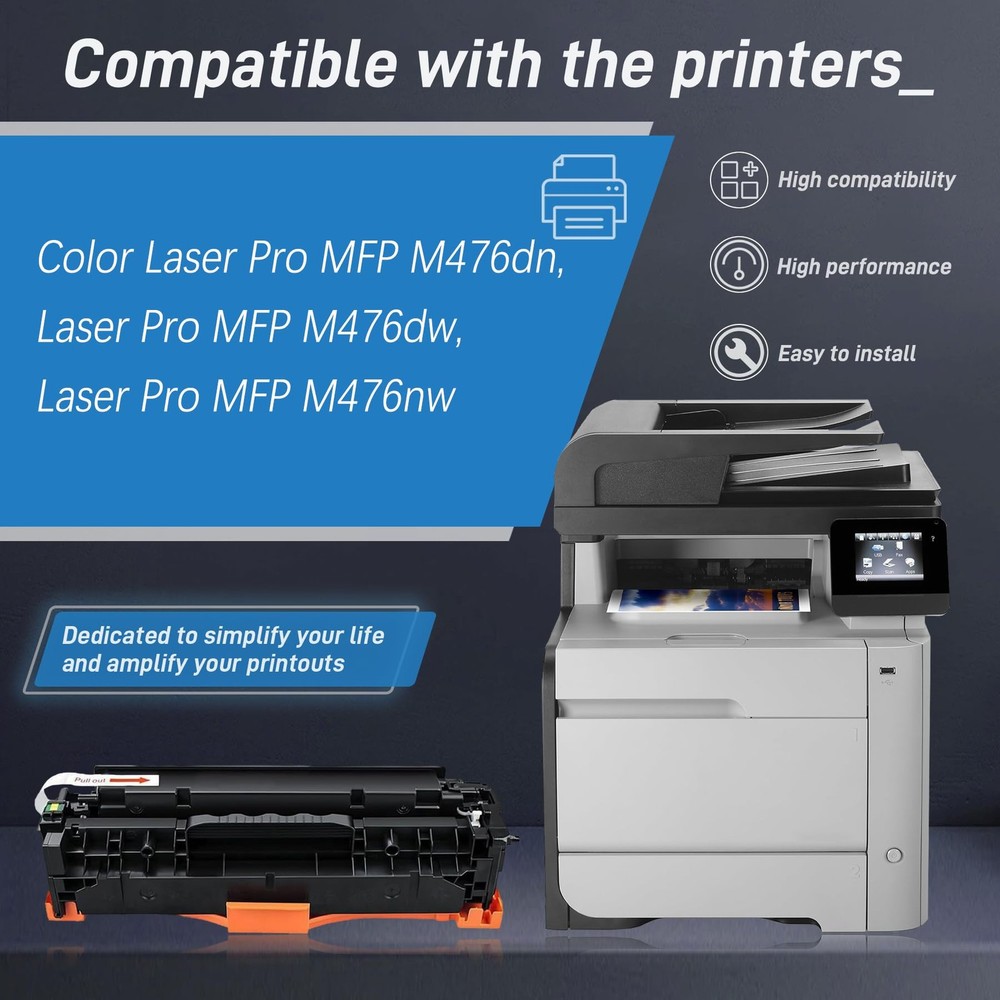 The products you purchase include: 4 pack of 312A toner cartridges (Black,Cyan,Magenta,Yellow) Printer Model: Color Laser MFP M476dn printer Color Laser MFP M476dw printer Color Laser MFP M476nw printer High Capacity: Page Yield: 4,400 pages per black Toner Cartridge at 5% coverage,2,800 pages per color Toner Cartridge at 5% coverage (Letter/A4) Refined Toner Cartridge: -Adhesive toner that prevents all kinds of fading. -Easy to install and recognize, the perfect partner for your printer. -Precise and sharp printouts for a professional look. Strict Quality Control: Our toner cartridges are tested to ensure consistent, Match the image/text on your printer. Widely used in many scenarios Homes, schools, hospitals, government, commercial companies, etc. Cost Savings: Save more on usage than other products while maintaining excellent print quality, perfect for users who value affordability and reliable performance. Printers for 312A Toner Cartridge: Color Laser MFP M476dn M476dw M476nw Printer 312A Toner Cartridge High Yield: 4,400 pages per black Toner Cartridge at 5% coverage,2,800 pages per color Toner Cartridge at 5% coverage 312A Toner Cartridge Compatibility: Works perfectly with printers to produce crisp images and high-gloss prints, and is strictly managed to ensure stability 312A Toner Cartridge Performance: Tested in industry quality control processes to give you a crisp, smooth printing experience for long run times and high quality print performance After receiving the goods, if you have any questions about the product, please ask at the first time, we will certainly give you a satisfactory answer, thank you for your and trust!