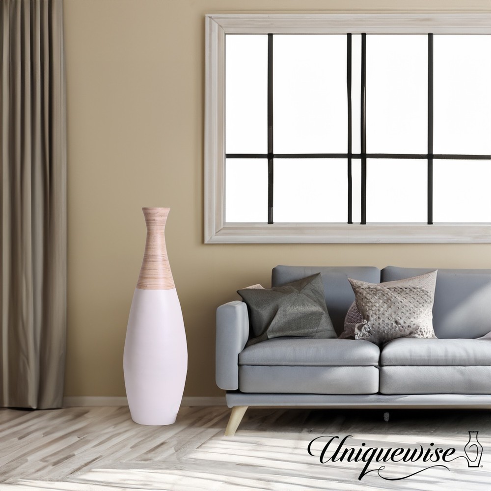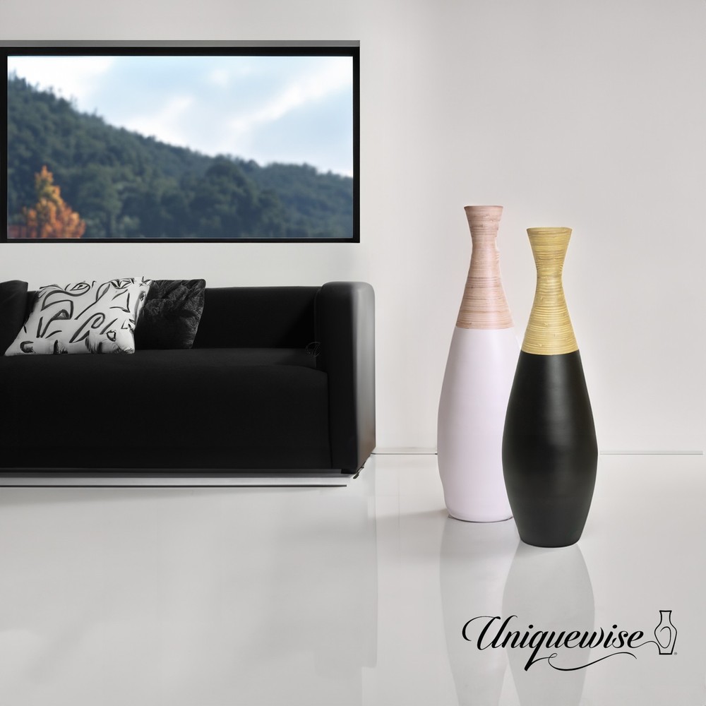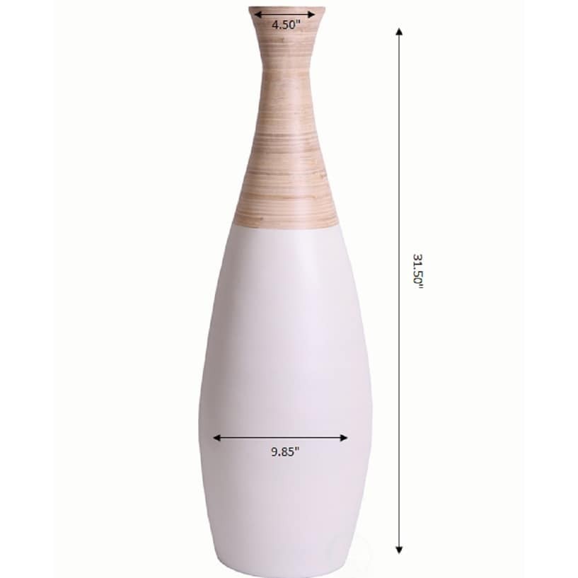 Dimensions: Elevate your living space with the impressive dimensions of this modern floor vase, standing at a height of 31.5"and measuring 10" in width, 10" in depth. Its substantial size ensures a commanding presence that effortlessly draws attention Modern Design: Immerse your home in an air of sophistication with the sleek and modern design of this floor vase. Its aesthetic appeal transcends traditional decor, adding an elegant touch and a captivating artistic element to any room Material: Meticulously crafted from 100% natural and sturdy bamboo, this floor vase boasts exceptional durability for long-lasting use. The lightweight design enhances its versatility, allowing you to effortlessly incorporate it into various settings. For added stability, consider placing sand or pebbles Free Shipping Over $49.99* Details 31.5 inch Spun Bamboo Tall Trumpet Floor Vase - Decorative Home Accent, Natural Product Description: DimensionsElevate your living space with the impressive dimensions of this modern floor vase, standing at a height of 31.5"and measuring 10" in width, 10" in depth. Its substantial size ensures a commanding presence that effortlessly draws attention Modern DesignImmerse your home in an air of sophistication with the sleek and modern design of this floor vase. Its aesthetic appeal transcends traditional decor, adding an elegant touch and a captivating artistic element to any room MaterialMeticulously crafted from 100% natural and sturdy bamboo, this floor vase boasts exceptional durability for long-lasting use. The lightweight design enhances its versatility, allowing you to effortlessly incorporate it into various settings. For added stability, consider placing sand or pebbles in the vase Fill ThemEmbrace creativity with the versatility of this bamboo standing vase. Whether adorned with dried branches, tall wispy grass, or silk decorative flowers, it serves as a captivating focal point. The vase's unique design also makes it a striking standalone accent piece. Please note that this vase is not intended to hold water DisplayMake a statement in your hallway, entryway, dining room, living room, or any overlooked room corner with this stunning floor vase. Its transformative presence effortlessly enhances the visual appeal of any space, turning it into a focal point that exudes luxury Upgrade your home to a luxurious haven with the infusion of this modern floor vase. Revel in its exclusive qualities, including vibrant colors, a sturdy design, and subtle hints of natural beauty that collectively elevate the ambiance of any room. The vase's unique shape adds a modern allure to your living room, hallway, dining room, or any corner that craves a touch of sophistication. This versatile vase doesn't just stop at being visually appealing; it's practical too. Showcase its beauty without any fillings for a minimalist look or go bold by filling it with silk flowers, branches, or tall wispy grass for a more striking display. To ensure stability, especially if choosing to fill it, consider placing sand or pebbles in the vase. Whether prominently displayed in your living room, gracefully welcoming guests in the entryway, or adding charm to your dining room, this floor vase is designed to take your home decor to the next level. Its transformative presence promises to leave a lasting impression and redefine the aesthetic of your living space.