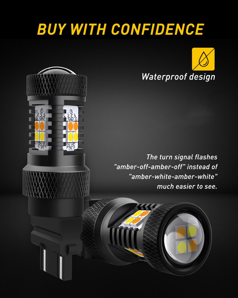 Specifications: Model:3157 3156 3457 4157 3057 T25 LED Chip:16pcs 3030-SMD LED chips for each bulb Lumens:1400Lm/per bulb Color Temperature:3000K Amber/Yellow , 6000K White Waterproof Level:IP65 Waterproof & Shockproof Power:8W/per bulb Beam Type:360°Beam Angle Certified by:CE & ROHs Work Voltage: DC 12V Warranty:1 YEAR Lifetime:More than 30000 hours Placement on Vehicle:Front Bulb size:3057A 3357NA 3047 3057 3155 3357 3454 3457 4057 4157 3757(For Reference Only) Installation positions: Front Turn Signal Light Applicable Used as a: Turn Signal Light/Daytime Running Light Suitable For Pickup, Wagon, UTB, Cab, ATV, SUV, Jeep, Truck, Bus etc. 3157 Switchback LED Turn Lights Signal WHITE Dual AMBER Color Anti Flash Hyper Specifications: Model: 3157 3156 3457 4157 3057 T25 LED Chip:16pcs 3030-SMD LED chips for each bulb Lumens:1400Lm/per bulb Color Temperature:3000K Amber/Yellow , 6000K White Waterproof Level:IP65 Waterproof & Shockproof Power:8W/per bulb Beam Type:360°Beam Angle Certified by:CE & ROHs Work Voltage: DC 12V Warranty:1 YEAR Lifetime:More than 30000 hours Placement on Vehicle:Front Bulb size:3057A 3357NA 3047 3057 3155 3357 3454 3457 4057 4157 3757(For Reference Only) Installation positions: Front Turn Signal Light Applicable Used as a: Turn Signal Light/Daytime Running Light Suitable For Pickup, Wagon, UTB, Cab, ATV, SUV, Jeep, Truck, Bus etc. Features: * Good light type :Double panel design, light source arrangement infinitely close to halogen lamp, light distribution distance 2mm, no dark area. * Excellent Heat Dissipation Construction : Our bulbs use built of lightweight and high-strength aluminum alloy as bulb body to keep themselves cool, even if they're used in constant-on applications like daytime running lights, they still illuminate non-fading brightness. * Non-Polarity Design : Directly replace your factory halogen lamp perfectly with the same socket and electrical connector, for plug and play installation. You needn't worry whether you have a CK or Non-CK socket, these bulbs are universally compatible. (Load resistor or flash relay will be needed to prevent the hyper flash when the replacement on the Turn Signal Lights) * Built-in Constant Current IC Driver : A constant current driver is a device that takes any incoming voltage and smooths it out, regulates it, so a steady stream of voltage/current reaches the LED, ensures a bright, efficient and long-lasting illumination. * CANBUS ERROR FREE : No. For some vehicles, it may require install decoder or load resistor to avoid turn signal hyper flash or fast blinking. Package include: 2*3157 LED Bulb Item Specifics Brand AUXITO Manufacturer Part Number Does Not Apply Ballast Included no Bulb Color Amber(Turn Signal Mode)/White(Parking Mode) Bulb Fitment Code 3157 Bulb Type LED Cable Type Cable Type Color Temperature 6000k (White Light) 3000K (Amber Light) Compatible With 3157 Fitment 2020|Ford|Expedition|King Ranch Sport Utility 4-Door|3.5L 3496CC Fitment Type Direct Replacement LED Number 16 LED Quantitiy 16 Lifetime More than 50,000hrs Light Color White/Amber Light Source Type 3030 Lighting Technology LED Material Metal MPN Does Not Apply Number of Bulbs 2 Suitable For Parking Light,Turn Signal Light To Fit Turn Signal Light,Parking Light Type White/Amber 3157 Turn Signal Parking Light Bulbs Voltage 12V Manufacturer Warranty 2 Years Wattage 16W Available Sizes 9006 9012 9145 9140 9008 H13 9004 9007 H7 7443 1157 1156 Interchange Part Number 3157/4157/4057/3357/3047 part number 1 3047LL, 3057KX, 3157ST, 3057X, 4057K, 3457NAK part number 2 3457AK, 3357ALL, 4114K, 3157X, 3057KLCP, 3757AK part number 3 3357LL, 4057LL, 3157K, 3357K, 3057K, 3057ALL part number 4 4114LL, 3457K, 3157LL, 4157K, 3057LL, 4157NAK part number 5 3047, 3357A, 3757A, 3457, 4114, 3357 part number 6 3157NA, 5702A, 4157NA, 3057, 3454NA, 4157 part number 7 3155, 3457A, 3457NA, 4057, 3157A, 3057A, 3157 Manufacturer Warranty 2 Years Payment Variety of payment methods are accepted, such as credit, debit, gift cards, Apply pay, Google Pay, Paypal and Paypal Credit. Shipping 1. All items will be shipped in 24 hours after receiving your payment . 2. We ship this item to US only via USPS first class mail. It usually takes 3-5 working days to deliver. Returns 1. We offer 60 days return policy. 2. Please contact us if you have any questions with the products . 3. Refund will be sent after we got your returned package. 4. All returned items should be in the original packaging with tracking number. Contact Us We work from Monday - Saturday 9:00AM - 6:00PM, but we will reply once we get your message. There will be delay on response if you send message or E-Mail on Sunday. DESCRIPTION PAYMENT SHIPPING RETURN POLICY CONTACT US Shop Category Store Home LED Headlight ◈ 9005 HB3 ◈ 9006 HB4 ◈ 9007 HB5 ◈ H7 LED Fog Light ◈ H8 H9 H11 LED Plate Light LED Reverse Light LED Brake Light Rear Bumper Light Car Parts & Accessories ◈ LED Third Brake Light ◈ Other Parts & Accessories Other New List Item 4pcs Door Belt Weather Strip Molding Seal For Honda Fit Jazz 2008-2013 I USD 39.99 Red+White Round Truck 16LED Trailer Stop Turn Signal Tail Light Brake Waterproof USD 21.09 2* Rear For 2013-2016 Chevrolet Spark LS EV LT Black Exterior Door Handles USD 35.99 For Ford Escape 13-19 Front RH Door Handle Grab Trim Molding Right SILVER Decor USD 13.99 For 2017-2021 Honda Civic Hatchback Window Visor Vent Rain Sun Guard Shades 4Pcs USD 40.99 Hot Item Rubber Seal Trim Prevent Water Leakage Windshield Sunroof Roof Top Window 10FT USD 10.99 AUXITO Grille Garnish TSS Sensor Cover For 2018-2021 Toyota Tacoma TRD PRO BLACK USD 13.29 Rubber Seal Trim Prevent Water Leakage Windshield Sunroof Roof Top Window 10FT USD 12.99 WHITE LED Side Door Light Lamp For Toyota Camry Prius Avalon 4Runner 6000K 12V USD 11.99 FOR 94-04 MUSTANG PASSENGER or DRIVER SIDE MASTER POWER WINDOW CONTROL SWITCH USD 9.99 Excellent Delivery 3157 Switchback LED Turn Lights Signal WHITE Dual AMBER Color Anti Flas