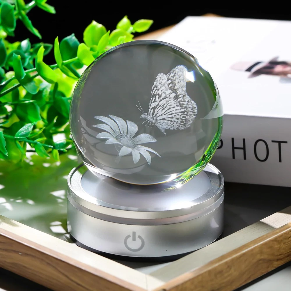 3.15In. 3D Butterfly with a Sunflower Crystal Ball Cute Gifts for Women Girlfrie