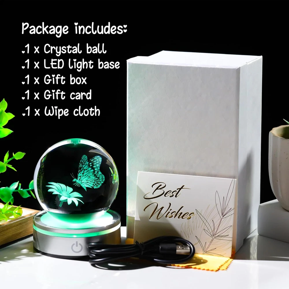 Store New Arrivals Add to Favorite View Feedback Contact 3.15In. 3D Butterfly with a Sunflower Crystal Ball Cute Gifts for Women Girlfriend, K9 Crystal Ball Engraved Butterfly Figurine Paperweight with LED Light Base for Home Office Decoration for Birthday Description Light Source Type LED Style Modern Number of Items 1 Power Source Dual-powered Number of Light Sources 6 Country of Origin China Lighting Method LED Lamp Type Night Light Bulb Shape Size A19 Product Dimensions 8.3"D x 4.7"W x 3.9"H Material Crystal Finish Type Polished Manufacturer Arikyrist Indoor/Outdoor Usage Indoor Item Weight 1.8 Pounds Shade Height 3.15 Inches Bulb Base G5 Mounting Type Tabletop Color Flower and Butterfly Is Cordless? Yes Is Waterproof false Recommended Uses For Product Decoration Shade Material Crystal Brand Arikyrist Switch Type Touch 【Perfect Gift】If you are looking for what gift to give your loved one, this crystal ball engraved 3D butterfly with a sunflower figurine will be your best choice! It is a perfect gift for friends, girlfriend, boyfriend, teachers, kid, wife, husbands, mums, dads, grandparents, and a great idea for birthdays, Mother's Day, Father's Day, Christmas, New Year's Day, Valentine's Day, anniversaries or any other occasion. We are sure that the person who receives this gift will have the sweetest smile on their face 【Premium Crystal & Exquisite Crafts】Each crystal ball is made of K9 crystal, and the lifelike butterfly with a sunflower is engraved inside the crystal ball by advanced laser engraving technology, which is optically transparent and perfect for displaying 3D engraved images. Compared to ordinary patterns, this 3D pattern is extraordinarily realistic and every detail of the pattern can be clearly seen by the naked eye. There are no impurities or unwanted bubbles 【Wonderful Decoration】The crystal engraved butterfly with a sunflower ball with LED light base is not only a beautiful gift, but also a versatile decoration in various settings for the home. It can be placed on birthday party, themed parties, desks, counters, TV cabinets, nightstands, in bedrooms, living rooms, on display shelves, or positioned on window sills. This lifelike owl will add more fun and vibrancy to the surroundings.(tips: a place with better light can show the charm of the crystal ball) 【Light Base & Colorful Light LED】The crystal engraved butterfly ball comes with a light base. 6 light modes (multi-colour slow flash; multi-colour fast flash; constant white, red, blue and green light). Flick switch to change light modes and turn on or off. Powered by 3 AAA batteries or USB cable. When you turn on the switch on the base, the owl pattern becomes clearer and more beautiful. Especially at night, the light from the LED base emits a fascinating coloured glow and can be used as a night light 【Ready to be a Gift】Each ball is carefully selected by workers in order to provide you with better products and services. All of our crystal ball are carefully packed in a beautiful gift box with wipe and greeting card, ready to surprise and love her at any time 3.15in. 3D Butterfly with A Sunflower Crystal Ball Cute Gifts for Women Girlfriend, K9 Crystal Ball Engraved Butterfly Figurine Paperweight with LED Light Base for Home Office Decoration for Birthday ABOUT US We offer the best prices around on high quality products. Our E-store includes media such as books, movies, music and games while offering electronics, toys, sporting apparel, clothing, tools, general home, garden items and more. SHIPPING We are always working hard to ensure your package arrives as soon as possible. Please understand that some factors like weather, high postal traffic, and the performance of shipping companies are outside of our control. We offer free shipping to the lower 48 states and ship within 2 business days of payment, usually sooner. We do not accept P.O. Boxes. Please provide a physical address. RETURNS We offer a 30-Day Return Policy on items which you are not completely satisfied with. You have the option for a full-refund or an exchange of the item. No returns are available on items shipped outside of the USA. PAYMENT We accept PayPal. CONTACT US This page content is yet to come Please ad us to your favorite seller and visit again later Thank You CUSTOMER SATISFACTION We try our very best to make sure every customer is completely satisfied. If there's a problem, message us! We're happy to help.