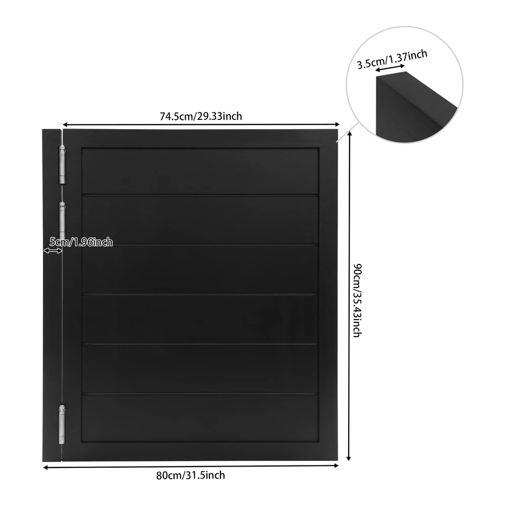 31.5x35.43in Swing Solid Wood Door Partition Door With Hinges For Shop Entrance Description This partition door not only plays a subtle yet effective role in spatial arrangement but also adds a touch of distinctive style to the environment with its unique design aesthetics. Whether installed in a hallway, kitchen, or bathroom, it adds unique aesthetic charm to your home while ensuring privacy and creating a comfortable, well-organized living space. So don't wait—order yours today! This stylish partition door masterfully balances form and function, dividing spaces while elevating your interior decor. Its clever design provides the blend of privacy and openness, adapting beautifully to a room - be it a passageway, culinary space, or bathing area. Beyond its practical benefits, it brings an element of sophisticated charm to your living environment, transforming ordinary areas into thoughtfully arranged spaces. Why hesitate? Make this versatile addition to your home now! Key Features Premium Materials: Made from stainless steel and wood with a painting process, it is sturdy, eco-friendly, impact-resistant, and wear-resistant, with excellent fade resistance, ensuring long-lasting beauty and practicality. Exceptional Durability: Meticulously constructed from premium stainless steel and wood with a painting process, this product delivers exceptional hardness while maintaining resistance to wear damage or impact for long-term reliable service. High Flexibility: Equipped with stainless steel dual-direction rebound hinges, it supports two-way door opening, allowing for 180° opening and closing. It can automatically close, making it easier for people to enter and exit, and the closing speed can be controlled by adjusting the hinge elasticity. Flexible Opening/Closing: Featuring stainless steel dual-direction rebound hinges, it enables 180° two-way door opening and closing. The self-closing mechanism facilitates smooth entry and exit, with closing speed adjustable via hinge elasticity control. Versatile Functionality: This half-waist door can divide your space to optimize the space layout, improve the appearance of your home or store, and promote the circulation of fresh air, providing you with a comfortable indoor environment. Multifunctional Performance: It adds elegance to the room and provides privacy for your bar counter, porch, garden, and more. It can also be used to divide the space into different functional areas, making the layout reasonable and practical. Moreover, the half-waist door design can ensure air circulation to provide a comfortable indoor environment. Elegant Appearance: The pleasing color and beautiful straight line patterns provide it with a nice appearance, which can greatly increase the aesthetic sense of space, compatible with most decoration styles. Visually Appealing: With its attractive color scheme and clean straight line patterns, it adds a sophisticated touch to your space, blending seamlessly with various décor styles. Ideal Gift: Thanks to its practical design, unique appearance, and outstanding decorative effect, this product makes an ideal housewarming gift for friends. Easy to Clean: Thanks to its smooth surface and simple construction, you can easily clean it with a damp rag (not included)! Simple Installation: This product is simple in structure, equipped with complete accessories, and easy to install. You can finish the installation by yourself. Good Customer Service: We stand behind all our guests and look forward to assisting you with your purchase. It is our pleasure to answer your confusion and questions. The end of the story between us is not "we sell and you buy". Details Smooth Edges: They can protect your hands from getting scratched during installation and daily use. Safety-Enhanced Edges: The smooth-edged design minimizes the risk of hand injuries during installation and everyday use. Sturdy Doorpost: It provides a stable installation base, and it adopts a thickened design to ensure firmness. Enhanced Doorpost: Designed with reinforced thickness, the durable doorpost ensures a rock-solid installation base. Application This product serves as an ideal partition door. It is suited for installation in residential spaces, hallways, stairway entrances, shopping malls, reception areas, living rooms, clubs, balconies, terraces, cafes, bars, restaurants, kitchens, cashier counters, libraries, courtyards, office entrances, and various other settings. Hinge Installation Steps Lean the doorpost against the wall, make holes in the wall, and install expansion bolts(not included). Fasten the hinges to the doorpost and the door. Insert a wrench into the adjustment hole of each hinge, and insert the pin. Adjust the bottom hinge in the same way. All hinges must be adjusted and installed simultaneously. Specifications Color: Black Style: Modern Material: Wood, Stainless Steel Process: Painting Installation Required: Yes Opening and Closing Angle: 180° Thickness: 35mm/1.37in Doorpost Width: 5cm/1.96in Product Size(L*H): 80*90cm/31.5*35.43in Door Leaf Length: 74.5cm/29.33in Package Size: 97*87*9cm/38.19*34.25*3.54in Gross Weight: 11.4kg/25.13 lbs Net Weight: 10.83kg/23.88 lbs Package Included 1*Door Leaf 3*Hinges 1*Doorpost All Accessories for Installation Payment Delivery details Terms of sales About us Contact us Payment We accept ebay payment 。 Fees such as import duties, taxes are not included in the item price or shipping costs. These charges are the buyer's responsibility. Delivery details Shipping: 2-9 working days to: USA Terms of sales We maintain high standards of excellence and strive for hundred percent customer satisfaction. Feedback is very important to us. We hope that you contact us immediately before you give neutral or negative feedback, so that we can address your concerns. It is impossible to address issues if we do not know about them! About us Your satis faction is our ultimate goal. We work hard to earn your trust and future business. Our 