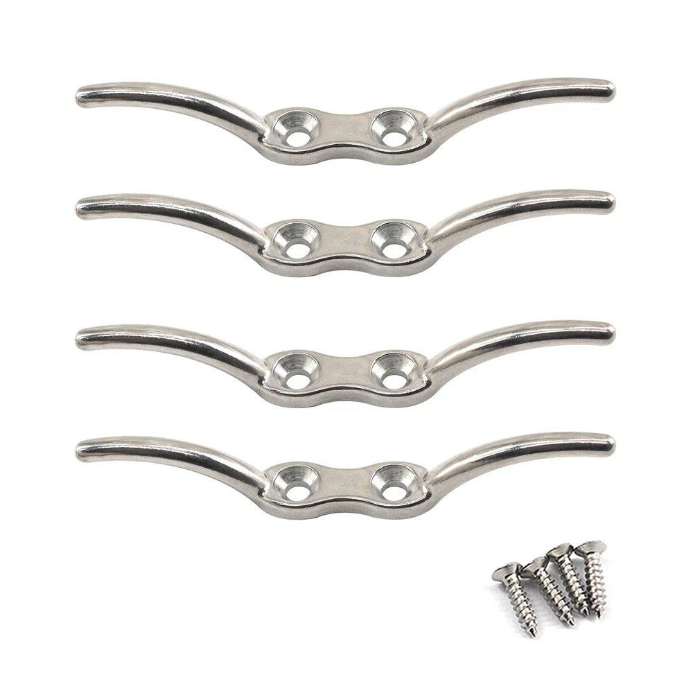 316 Stainless Steel Flagpole Rope Cleat Hook Cord Hook with Screws (Pack of 4)