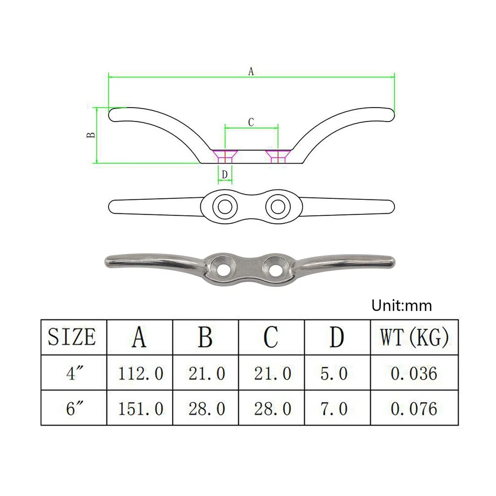 Material:316 Stainless Steel 316 stainless steel works well and ensuring longevity in wet environment. Surface:Smooth polished surface won't hurt your hand. Size:6" Quantity:4 (come with stainless srews)