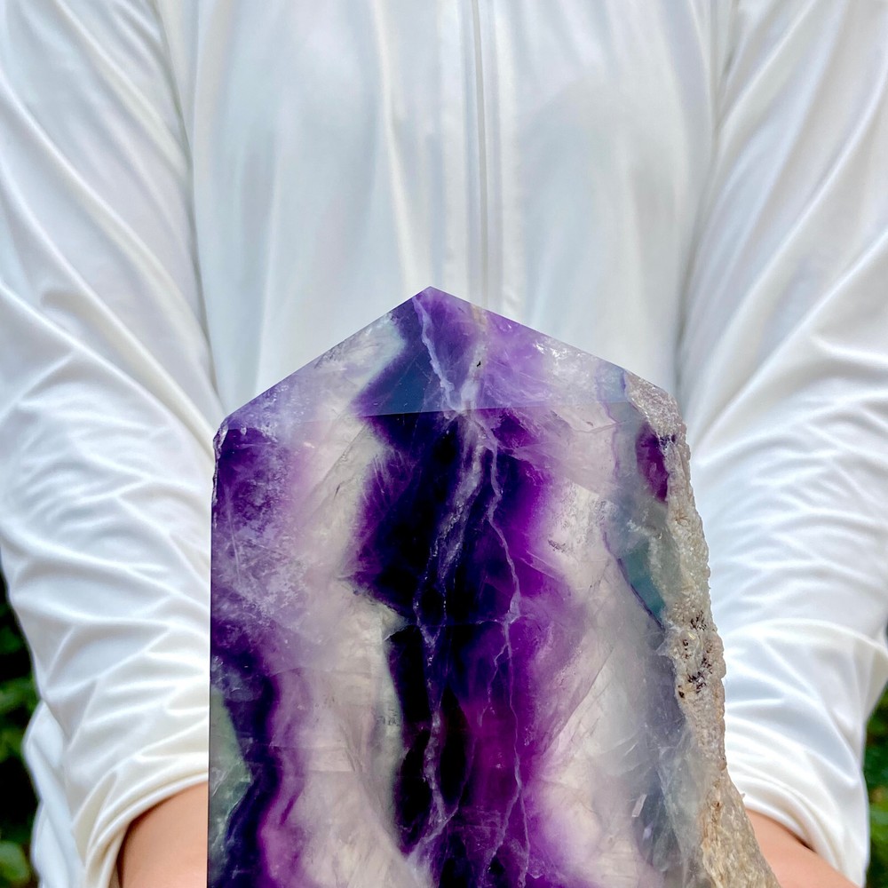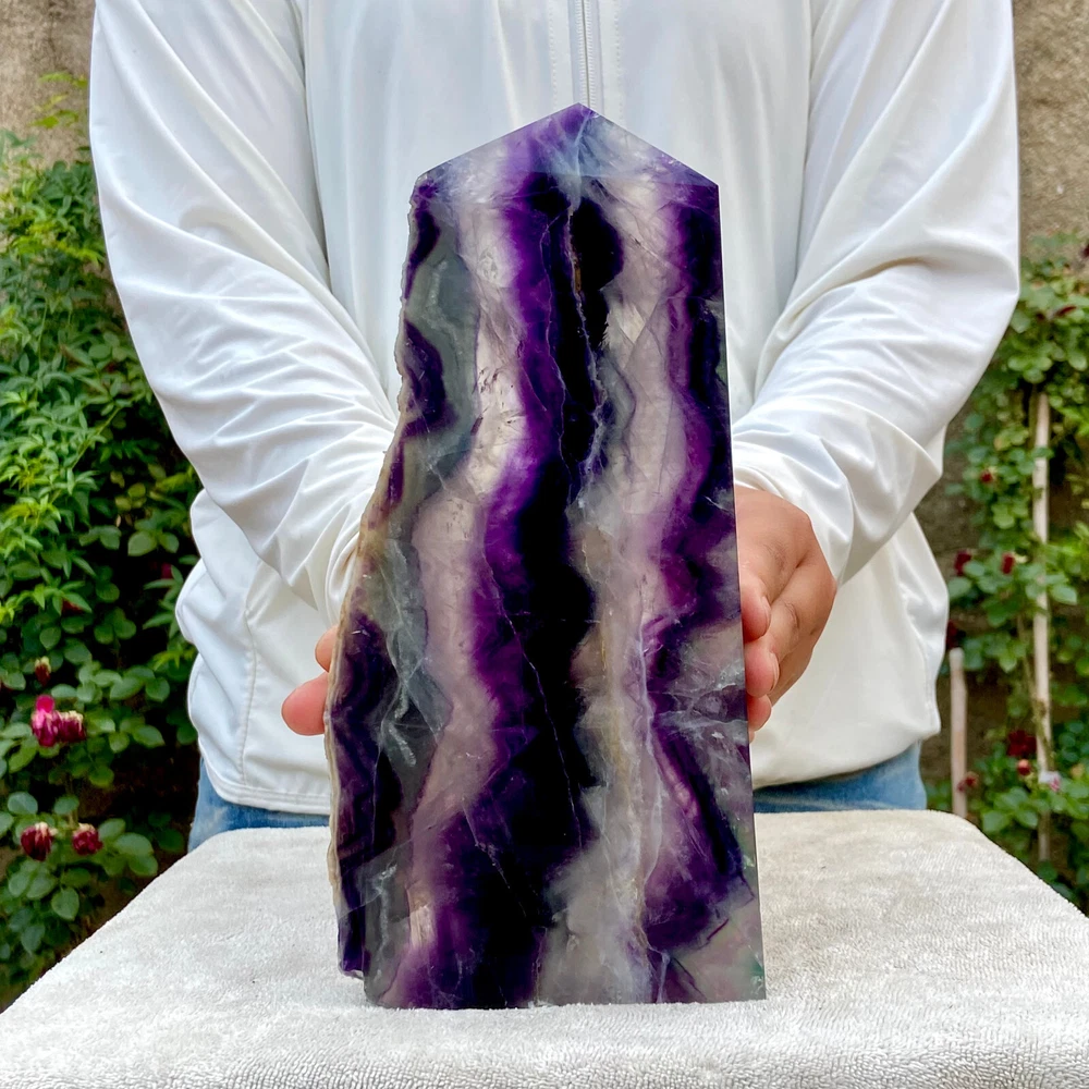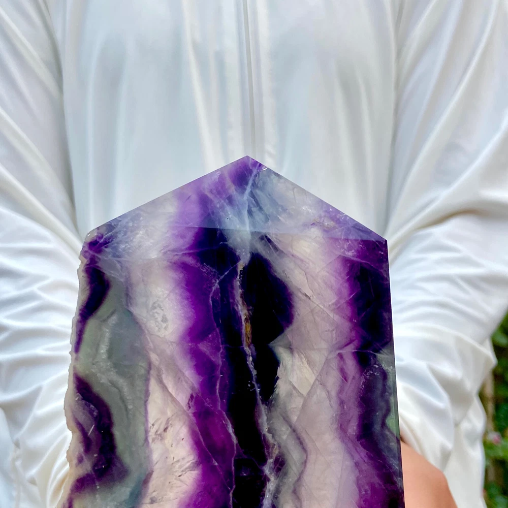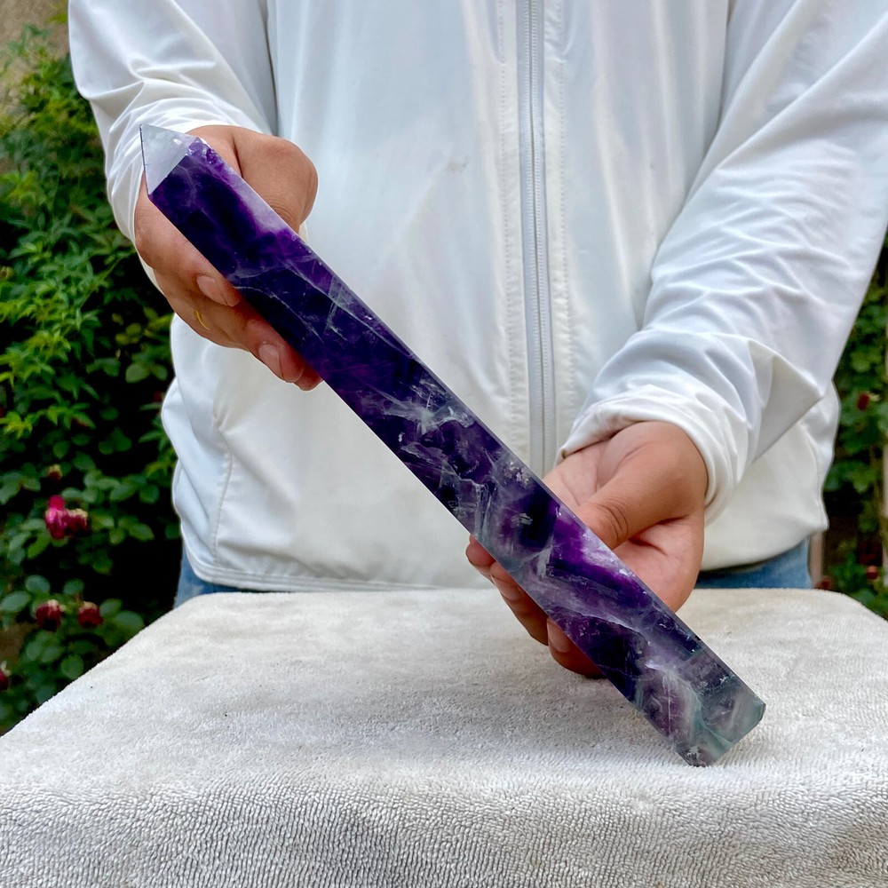 3.1LB Natural Rainbow Fluorite Obelisk Crystal Wand for Healing and Energy