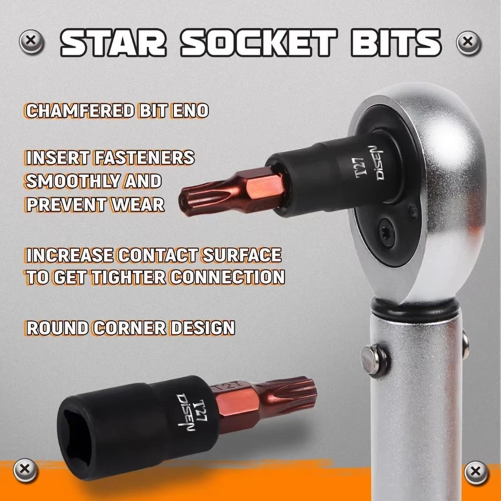 $ 21.134Pcs Drive Male Female Torx Star Bit Socket E-socket Set Handheld Tool Case US