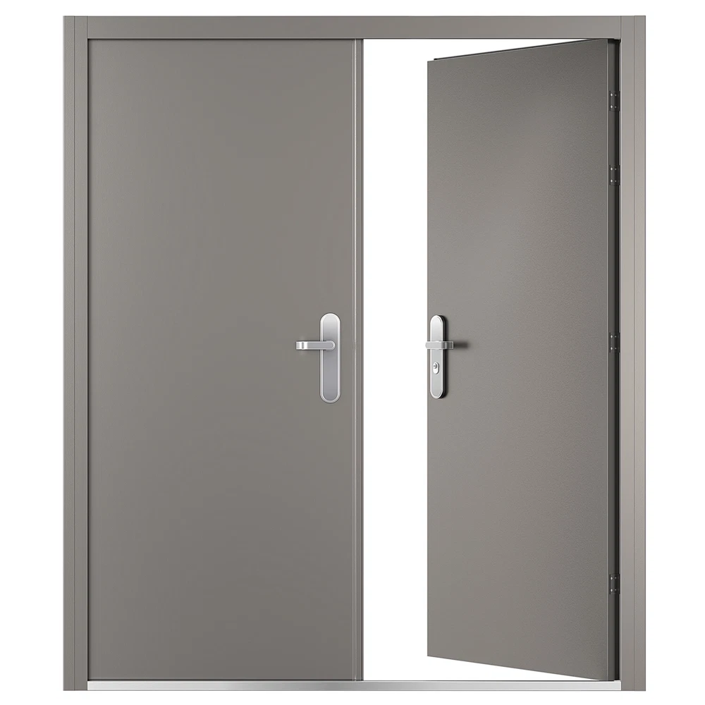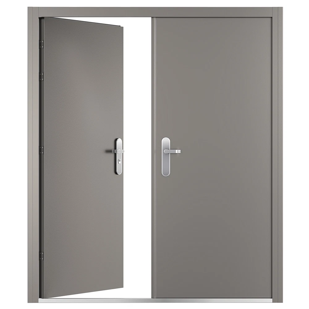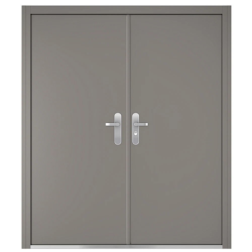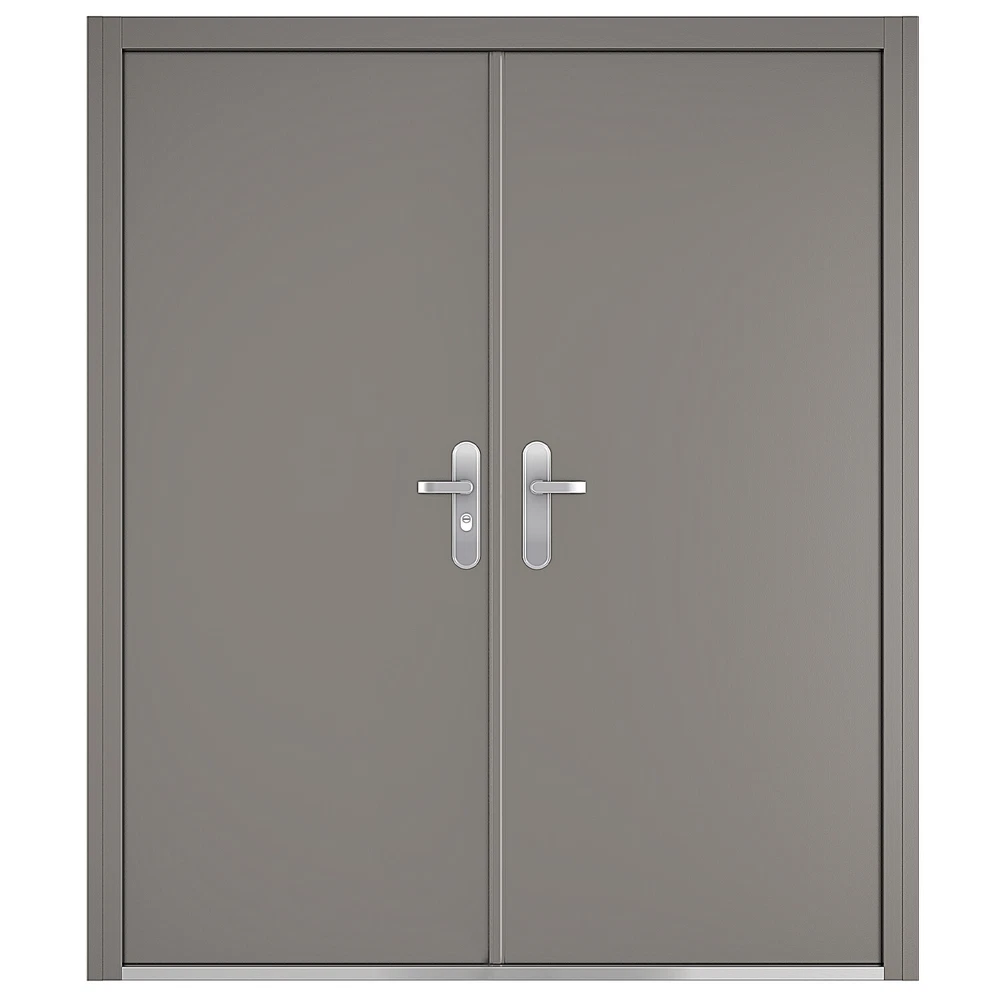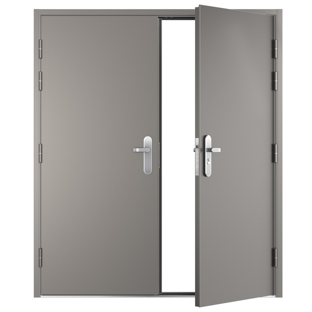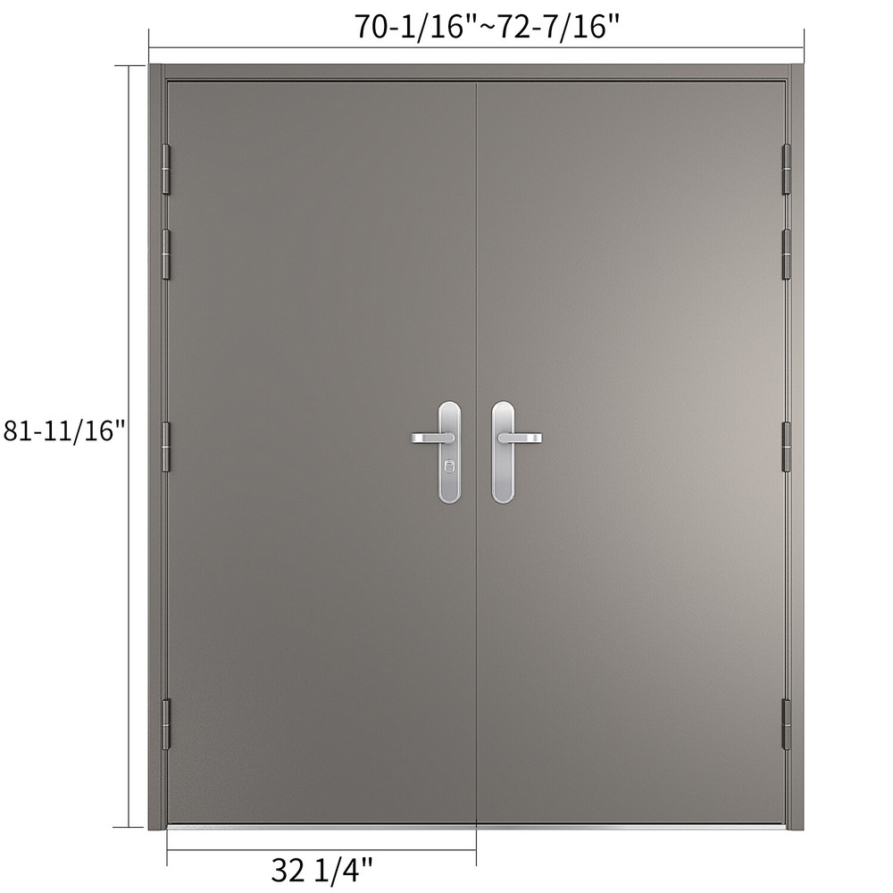 32 1/4" Double Door Slab, Door (with Steel Frame) measured: Height = 81-11/16", Width = 70-1/16"~72-7/16"(adjustable) Comes with frame, stainless steel handles, hinges, and lock, 9 to 12 point locking system, Anti-jemmy lip round the frame 1/16″ frame with inbuilt steel strengthening, 2″ thick door leaf filled with fibre glass / mineral wool Reinforced panel for friction stay or door closer, Easily removable threshold, 4 heavy duty lift off hinges, Full weather seal