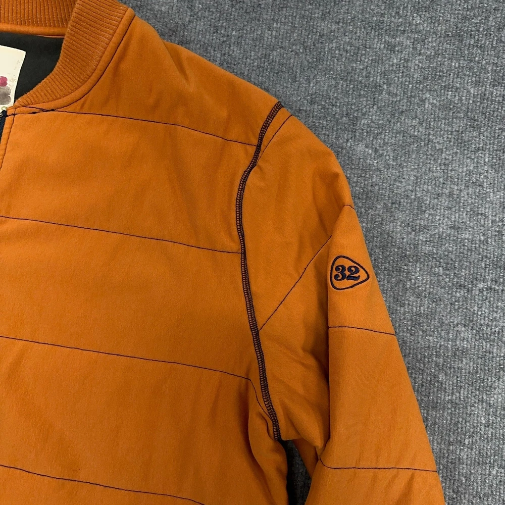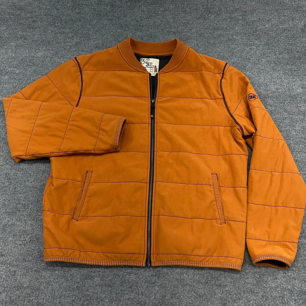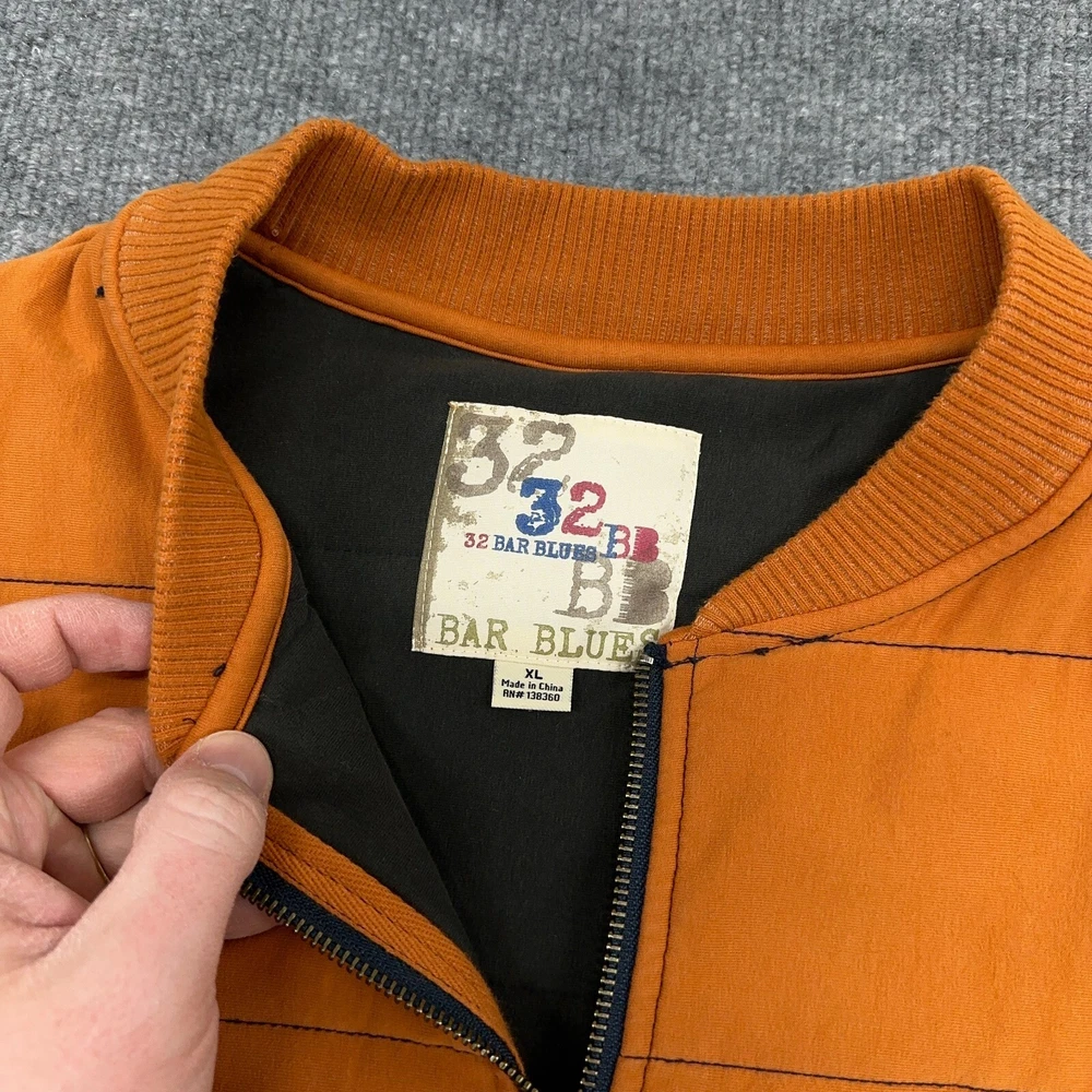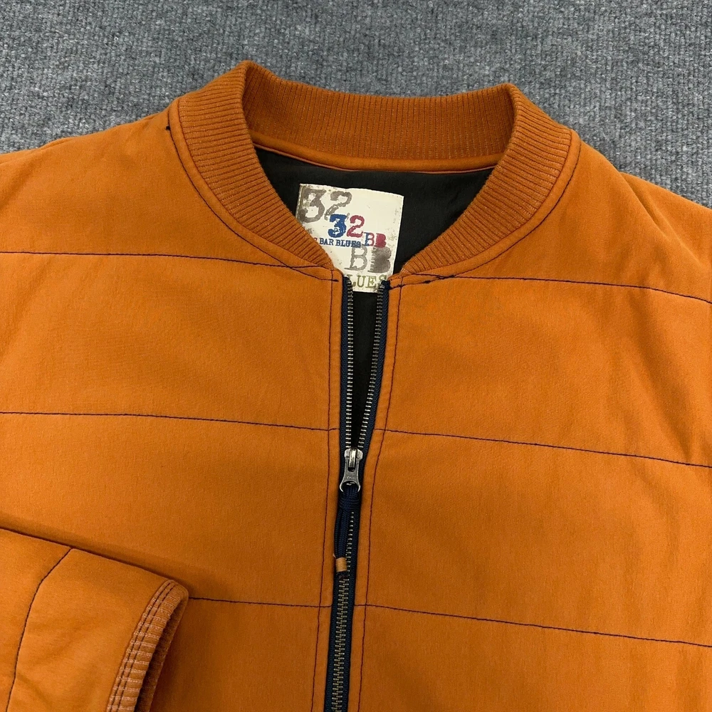 32 Bar Blues Jacket Mens XL Orange Quilted Bomber Cotton Stretch Full Zip In good condition. Please see photos for measurements.
