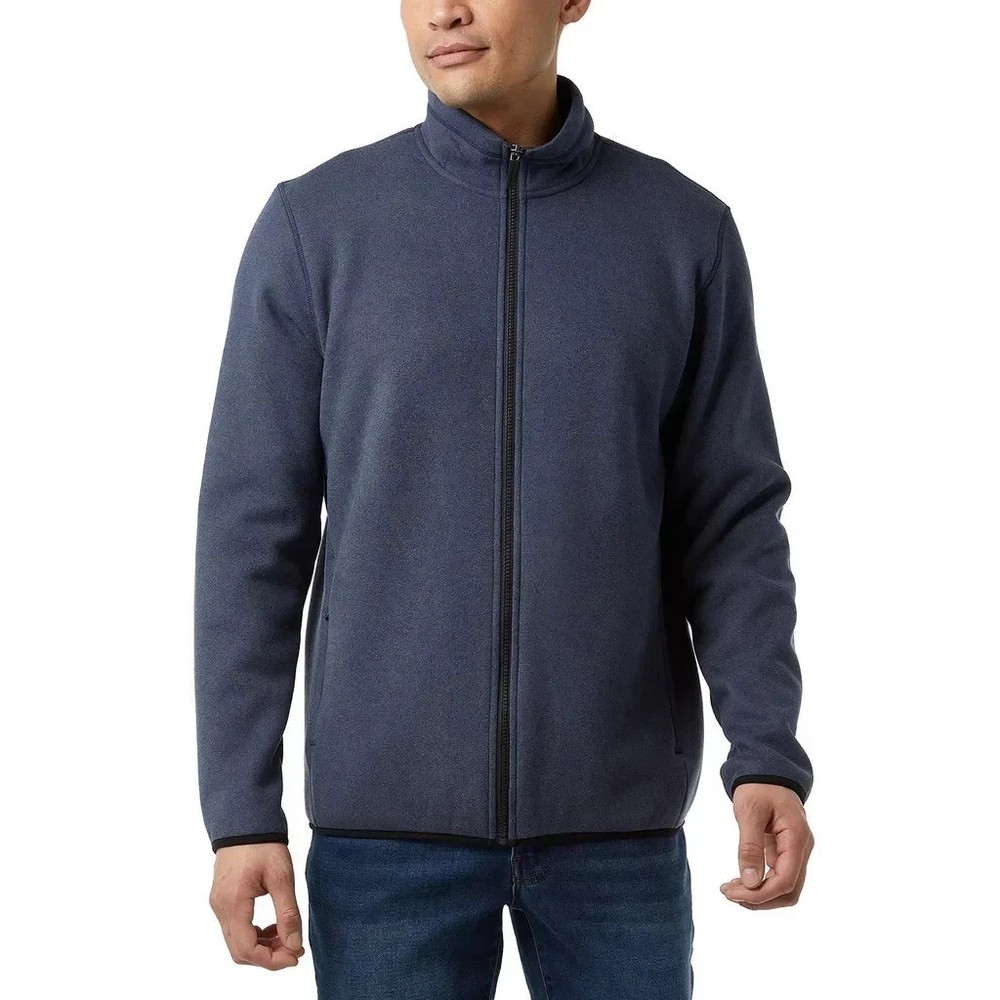 32 Degrees Heat Men's Full Zip Fleece Sherpa Mock Neck Jacket Size: Large Color: Blue Content: Shell: 93% Polyester / 7% Spandex Backing: 100% Polyester Pocket Bag: 100% Polyester