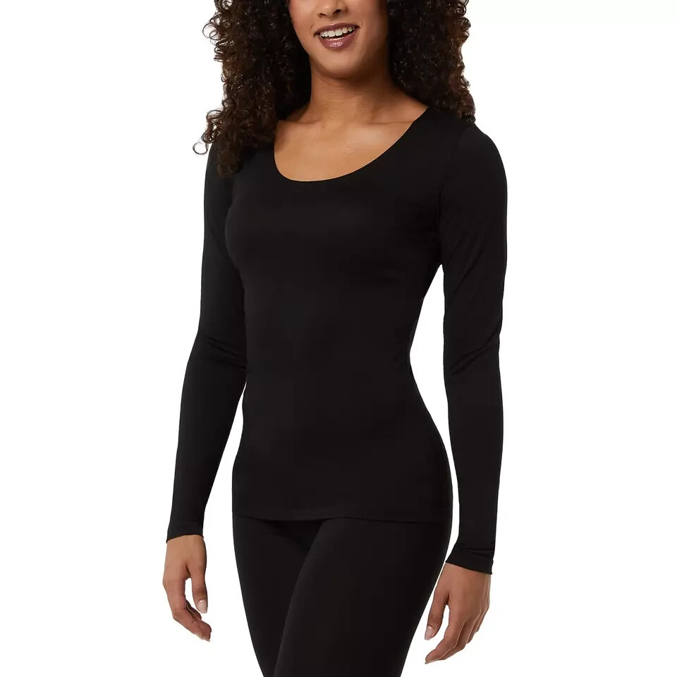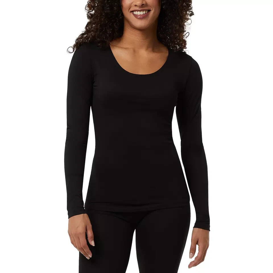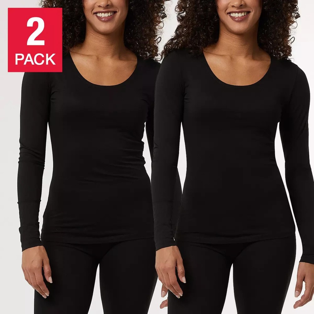 32 Degrees Heat Women's 2-Pack Long Sleeve Scoop Neck Tee Size: Large Color: Black / Black Content: 40% Polyester / 34% Acrylic / 22% Rayon / 4% Spandex