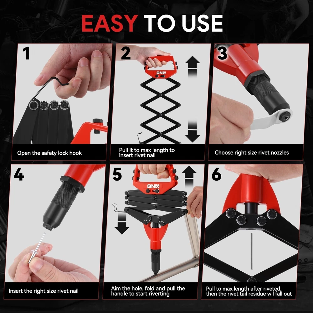 Welcome to Speed Daddy Store Home About Us Feedback Add To Favorites New Arrivals Ending Soon Contact Us 32" Folding Hand Rivet Wrench Tool Kit Set for Riveting Decoration Metal Plate Product Description Rivet Nut Tool Kit is designed to offer a convenient and efficient solution for fastening applications across various industries. This kit contains everything you need to install rivet nuts quickly and securely. Suitable for use in various industries, including automotive, aerospace, manufacturing, construction, and more. It's an ideal choice for professionals and DIY enthusiasts alike. Specifics and Features : Made of High-Strength Metal For Easy Management: We Embed the Rivets Directly into the Rivet Gun. Meets your work requirements: Includes Includes 5 Guide Nozzle(3.2 mm, 4 mm, 4.8 mm, 6 mm, 6.4 mm); 1 X Wrench; 1 X Rivet Gun Design With Four Foldable Connecting Rods, Ergonomic Handle and Security Lock For mounting various types of fasteners: Such as Body Modification, Furniture Decoration, Riveting Projects, Bicycle Accessories Product Dimensions: 12 x 7.5 x 1.8 inches Includes : 32" Folding Hand Rivet set 5 Guide Nozzle 1 x Wrench 1 x Rivet Gun Notes : 100% Brand New Professional Installation is Highly Recommended Installation Instruction is NOT Included Shipping Payment Returns Terms & Conditions Feedback Contact Us DOMESTIC LOWER 48 US STATES: FREE SALES TAX: CA ONLY VERY IMPORTANT: Double check shipping address. We are not responsible for incorrect or undeliverable addresses. Please use Shipping & Payments tab on top of page for shipping details for your location. Shipping to PR, HI, AK and PO Box addresses will be charged the same as shipping to Canada. GU, VI, SAIPAN will be charged the same as international shipping rate. For Canada shipping please select the lowest price. We do not offer expedited shipping. US Territories such as GU, VI, SAIPAN will be charged the same as CANADA shipping rate. Transaction will be held until a full shipping amount received. Some of the packages cannot be delivered to a PO Box. Customer is responsible to ensure PO Box address given is deliverable by the shipping company. Package will be held until a valid physical address is provided. Customer assumes shipping charges incurred in shipping to undeliverable address. International buyers are responsible for all customs duties, taxes, and other applicable fees incurred by the country's customs/border regulations. Please contact customs for more information. We ship 98% of all orders the same or next business day after payment received/cleared. Please understand that once orders are shipped, we cannot control the transit times thereafter. Most orders will ship via USPS First Class/Priority Mail or FedEx/UPS or the best suitable carrier for the specific size of the product. We are not responsible for any changes to address after item has been shipped. Item will be shipped out within 24 hours after payment cleared, except for weekends and holidays. PayPal e-check takes 3-7 business days to be processed. We will not ship until an e-check has been cleared. 30 Days Free Returns, please notify us within 30 days after you've received your order. Please email us or call us to obtain a RMA (Return Merchandise Authorization) number from us, and have the RMA number written on the return package. Items to be returned must be in resalable condition. All returns are for refund ONLY. No exchange accepted. For emissions related items, please check with your local jurisdiction for emission specific requirements before purchasing. All items do not come with installation instruction unless otherwise specified. If item is questionable, please consult your local professional/mechanic before making purchase. Shipping DOMESTIC LOWER 48 US STATES: FREE SALES TAX: CA ONLY VERY IMPORTANT: Double check shipping address. We are not responsible for incorrect or undeliverable addresses. Please use Shipping & Payments tab on top of page for shipping details for your location. Shipping to PR, HI, AK and PO Box addresses will be charged the same as shipping to Canada. GU, VI, SAIPAN will be charged the same as international shipping rate. For Canada shipping please select the lowest price. We do not offer expedited shipping. US Territories such as GU, VI, SAIPAN will be charged the same as CANADA shipping rate. Transaction will be held until a full shipping amount received. Some of the packages cannot be delivered to a PO Box. Customer is responsible to ensure PO Box address given is deliverable by the shipping company. Package will be held until a valid physical address is provided. Customer assumes shipping charges incurred in shipping to undeliverable address. International buyers are responsible for all customs duties, taxes, and other applicable fees incurred by the country's customs/border regulations. Please contact customs for more information. We ship 98% of all orders the same or next business day after payment received/cleared. Please understand that once orders are shipped, we cannot control the transit times thereafter. Most orders will ship via USPS First Class/Priority Mail or FedEx/UPS or the best suitable carrier for the specific size of the product. We are not responsible for any changes to address after item has been shipped. Payment Item will be shipped out within 24 hours after payment cleared, except for weekends and holidays. PayPal e-check takes 3-7 business days to be processed. We will not ship until an e-check has been cleared. Returns 30 Days money back, please notify us within 30 days after you've received your purchased item. All return requests must be submitted through your eBay account. You have to obtain a RMA (Return Merchandise Authorization) number from us, and have the RMA number written on the return package. Buyers pay for return shipping fee. Items to be returned must be in resalable condition. All returns are for refund ONLY. No exchange accepted. Returns for refund are subject to a 20% r