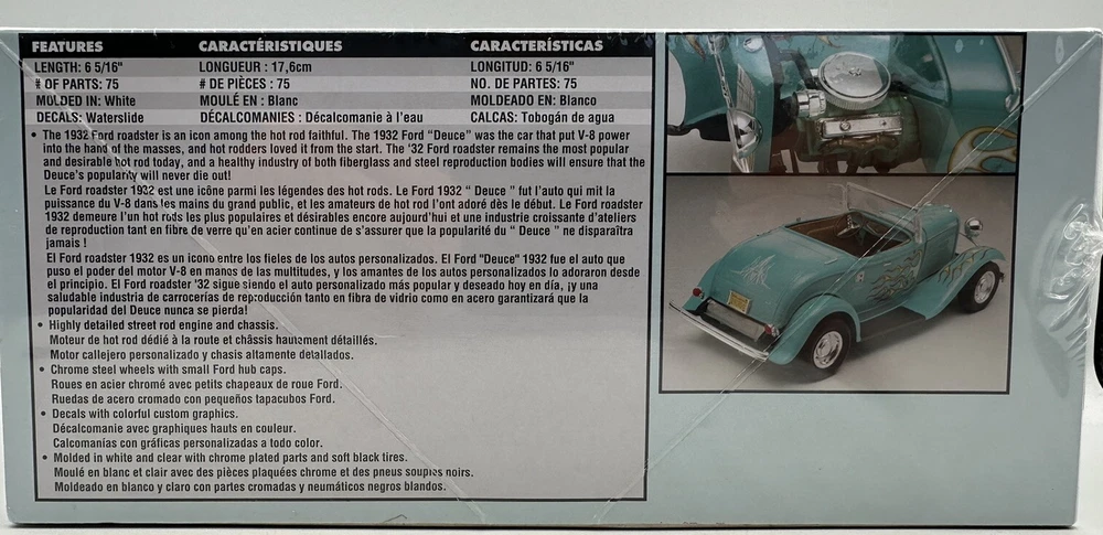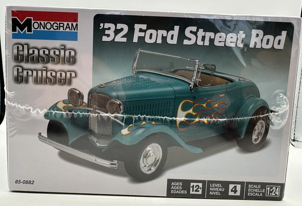 This 1:24 scale Monogram model kit features a classic 1932 Ford Street Rod design. The unassembled kit includes all necessary plastic parts and instructions to create a detailed model of the iconic vehicle. The white color and transportation theme make it a great addition to any collection or display. The kit is brand new and sealed, with a 2022 year of manufacture. It weighs in at 10 ounces and has a length of 6 5/16 inches. Please note that the kit is not painted and is customized for the builder's personal touch. Get your hands on this vintage-inspired kit and create a piece of automotive history.
