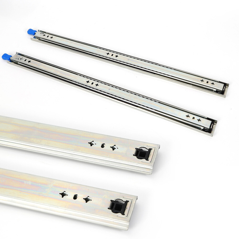 These heavy-duty locking drawer slides are a game-changer! Super sturdy with a 120kg capacity, they glide smoothly and lock securely. The silver finish looks sleek, and the cold-rolled steel construction feels premium. Perfect for tool cabinets, industrial setups, or even RVs—super easy to install and way more durable than standard slides. No wobble, just solid performance every time. Definitely worth the upgrade!