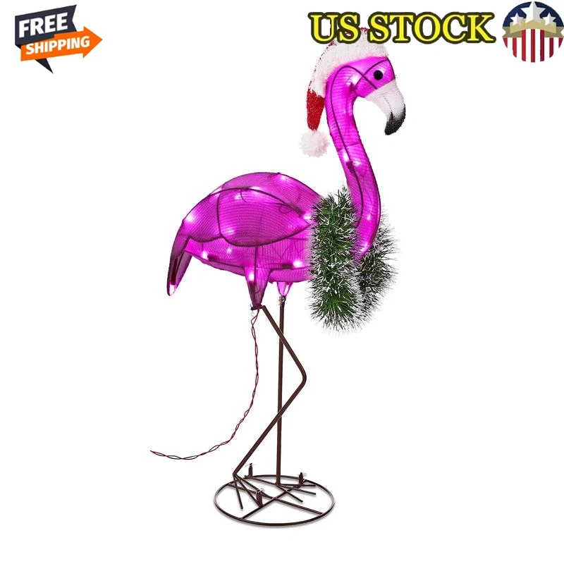32" Light-Up Fluffy Christmas Flamingo W/ 30 LED Lights Xmas Decoration New