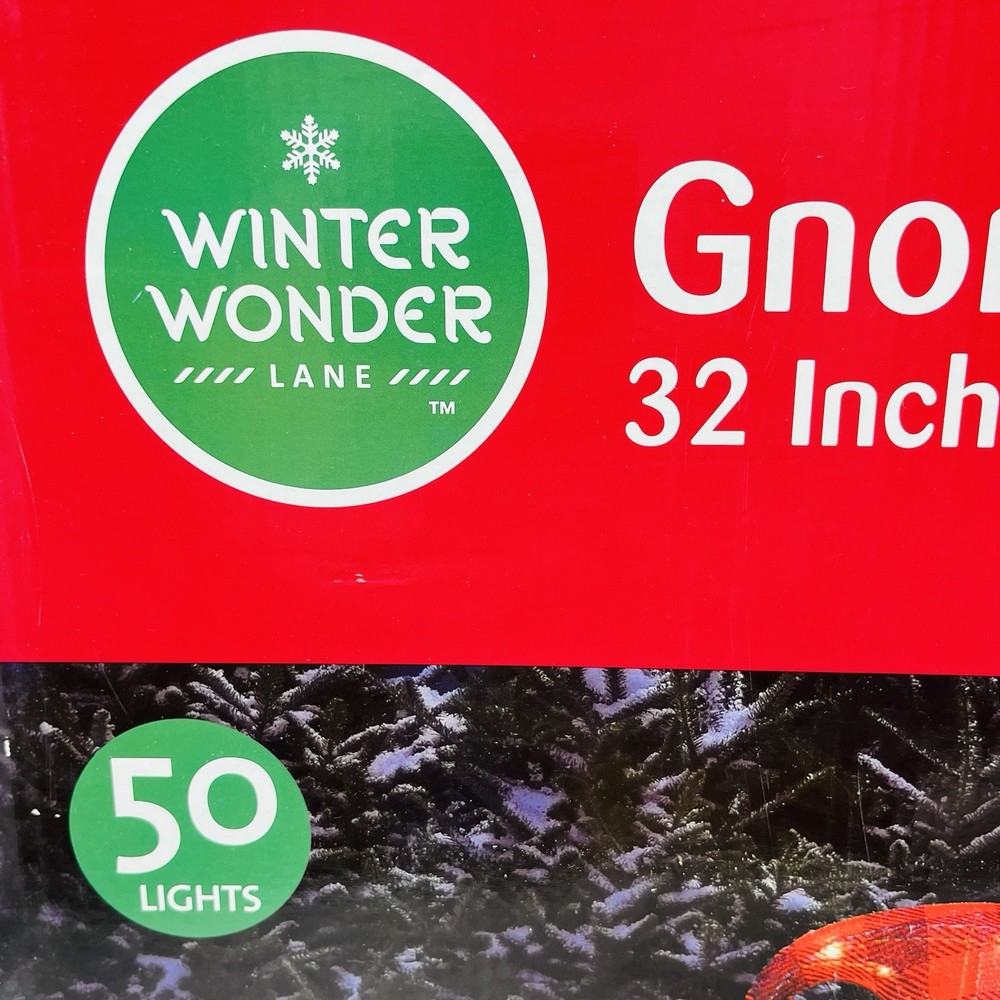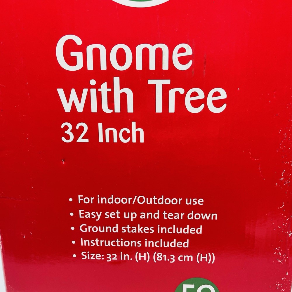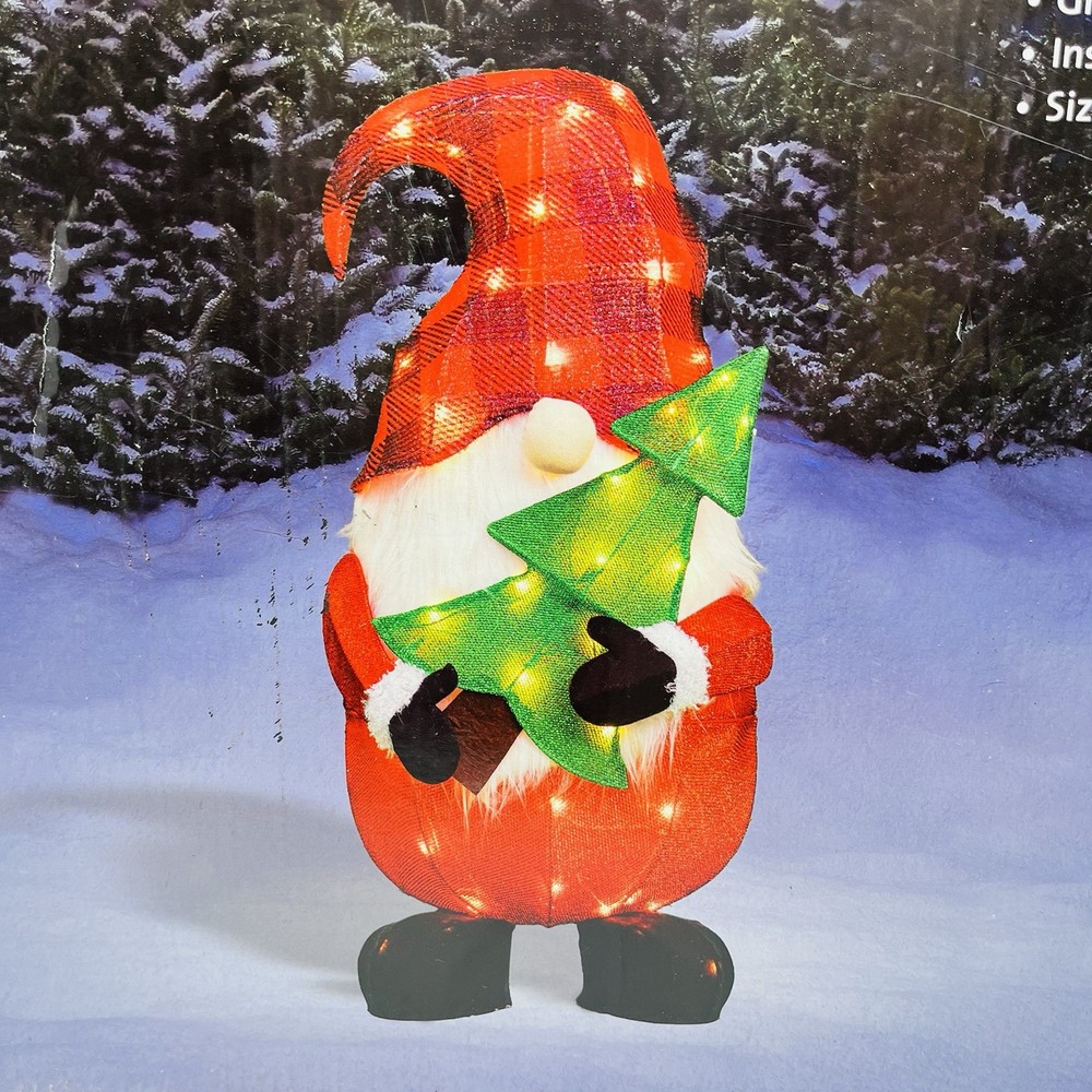 32" Light-Up Santa Gnome w/ Tree Christmas Yard Decor Art w/ 50 LED White Lights