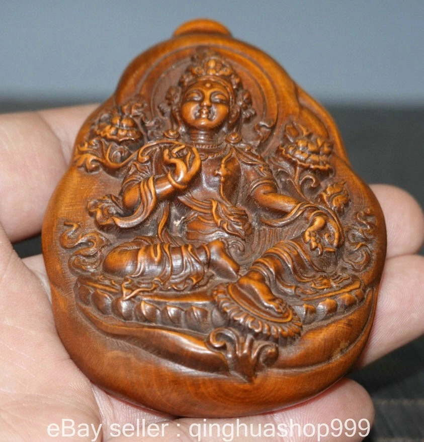 3.2" Old China Buddhism Marked Boxwood Carving 2-sided Green Tara Statue Pendant . Very Rare and high Value for collection ! We are deal business on antique over 30 years now and very happy to showing our collection items on ebay for learning together. In our collection, The difference kinds of Old wood carving Sculpture or Furniture . Natural Jade Carving , Antique Hongshan Culture Statue or Pendant , Shoushan Stone carving or seals. Antique porcelain vase or vessel. Tibet Buddhism Religion Items is our specialty.We experienced, vision, provides the high-quality service for you Please add us to your Favorite seller and enjoy order. Description Note: All the items in my store are genuine and original as ebay photos when you receive so Please bid with confidence and if you have any question please feel free to Email/Message me. Package will be shipped in 24 hours and 30 days return was accepted. 100% payment Guarantee ! If you have any questions, or when you want to submit a dispute case, please send an e-mail first, I will reply within 12 hours, all the problems can be solved, I accept the return money and 100% refund , so that all customers satisfaction is my request. size: Height:3.2 inch Width: 2.4 inch Thickness: 1 inch weight with packaging round 0.2 kg Shipping cost to all over the world in free cost ! Payment Only accept paypal payments. Delivery details shipping to USA : about 7-15 days to arrive. International shipping: about 10-20 days to arrive. Terms of sales A: No, no reason to accept any return. If you need to return it, you must bear the return shipping! We are trying to resolve easily. Please go ahead to contact us if you have any problem. We will resolve asap. B: Please do not leave neutral feedback or negative feedback for any reason, because we will try best to resolve well for your happy and we believe any mistake or misunderstand able to fixed. Thanks . C: honest, trustworthy, peace, to every buyer good shopping experience is our aim, wish for world peace! Combine Discount We recommend the combine shipping , If you won more items once that we will give you a 5 -20% discount off Original price ( Start from second item ) , Discount standard as follow : Buy 2-3 items once we can offer you the 10% discount on Total cost , Buy 4-6 items once we can offer you the 15% discount on Total cost , Buy 7-10 items able to get 20% discount on Total cost. Over 10 items please feel free to email us request for especially price ! Contact us Please pay within 7 days of purchase, otherwise, ebay will automatically open unpaid case. If you have any question, please contact us, we will give you the answer in a timely manner.