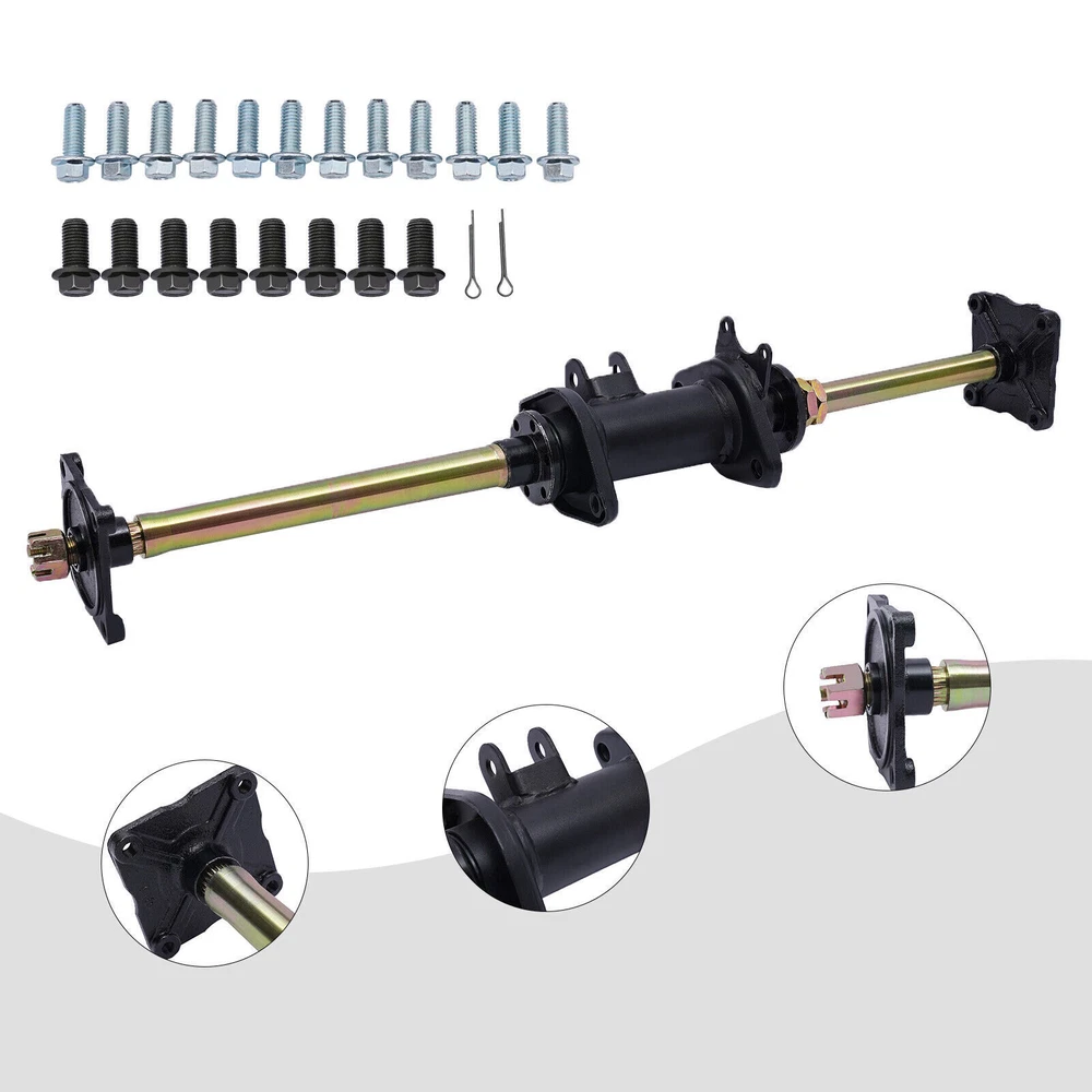 32" Rear Axle Complete Assembly Kit For 110/150/200cc ATV Go Kart Quad Buggy Specifications Applicable Models: For 110/150/200cc ATV Quad Bike Go Kart Condition: New Color: Black Material: Iron, Rubber Surface Treatment: Painting Number of Items: 1 Style: Modern Type: Rear Axle Complete Kit Way of Use: Direct Replacement Placement on Vehicle: Rear Product Fit: Direct Fit Assembly Method: Closed Overall Length: 810mm/32inch Wheel Hub: 4 Holes Gross Weight: 9.8kg/21.61lbs Net Weight: 9.5kg/20.94lbs Package Size: 82*20*13cm/32.28*7.87*5.12inch Key Features Build to Last: High-quality iron, rubber, and painting process make this product durable, so it can better keep practical and beautiful without frequent replacement. Powerful Function: As a part of the rear drive shaft of the vehicle's power transmission, this kit can provide you with smoother riding and also protect your safety. Simple Installation Procedure: The simple structure and complete kit let you install it directly, saving you energy. Effortless Cleaning: The smooth surface allows you to wash it directly with a towel and water. Highlights Brand New, With High Quality Elaborate Design Direct Replacement Long Service Life Good Sealing Performance Protective Package(Pearl Cotton) Professional Adaptability Strict Manufacturing Process Convenient Use Quality Assurance Notes Please double confirm the compatibility before purchasing and you can contact us anytime if you have any questions. We strongly recommend professional installation. Please contact us if you have any questions. Please allow the slight color difference caused by the shooting light and 1-3cm error due to manual measurement, and make sure you do not mind before you place the order. Fits(As a reference) For 110/150/200cc ATV Quad Bike Go Kart Package Included 1*Rear Axle Complete Kit inkfrog terapeak Payment Delivery details Terms of sales About us Contact us Payment We accept ebay payment 。 Fees such as import duties, taxes are not included in the item price or shipping costs. These charges are the buyer's responsibility. Delivery details Shipping: 2-9 working days to: USA Terms of sales We maintain high standards of excellence and strive for hundred percent customer satisfaction. Feedback is very important to us. We hope that you contact us immediately before you give neutral or negative feedback, so that we can address your concerns. It is impossible to address issues if we do not know about them! About us Your satis faction is our ultimate goal. We work hard to earn your trust and future business. Our certified technicians have tested each item before shipping. The unit comes with 1 year limited warranty on all manufacturing defects. a) If you receive a defective item, you may return it or ask for a discount. Please contact us within 14 days after you receive the package. b) What you returned must be intact and in its original packaging as re? u. Customer is responsible for shipping costs of the returned item. c) We will cover the cost of shipping back t with the shipping rate indicated in the registration page. We will send you a new unit or refund the full payment you paid. Thank you. Contact us Business Hour Business Hour: Monday To Friday: 8:30 AM to 5:00 PM (Beijing China time) Due to time zones, our reply to your questions may not be immediately. But within above working time, we will reply your email within 24 hours. If it's non-workdays, please kindly be patient and wait till Monday. Please contact us with ebay message. Please feel free to contact us if you have any questions. Monday To Friday: 8:30 AM to 5:00 PM (Beijing China time) Due to time zones, our reply to your questions may not be immediately. But within above working time, we will reply your email within 24 hours. If it's non-workdays, please kindly be patient and wait till Monday. Please contact us with ebay message. Please feel free to contact us if you have any questions. Herstellergarantie 3 Jahre ❤Highlights❤ ❤Creative Design,Durable Material,Beautiful Appearance❤ ★Features★ ★★★Easy installation,Good Performance★★★ * Feature * *Good Quality Guarantee,Long Service Life* MPN Does Not Apply Brand Unbranded Product Type Parts & Accessories Type Motor UPC Does Not Apply Material Iron, Rubber Style Modern Applicable Models For 110/150/200cc ATV Quad Bike Go Kart