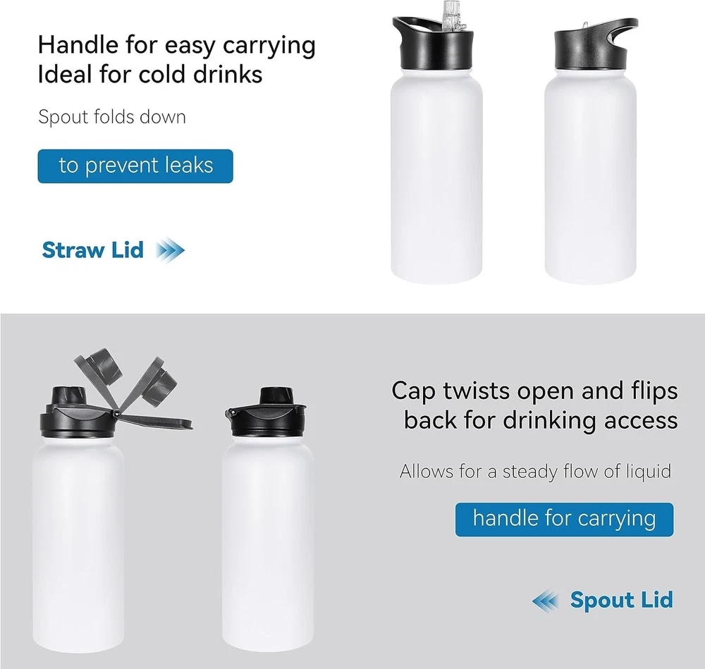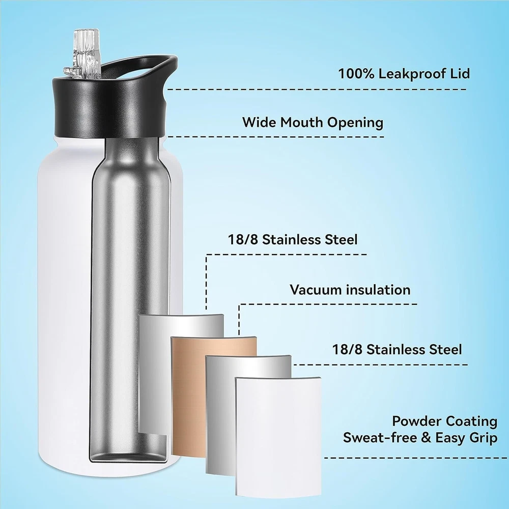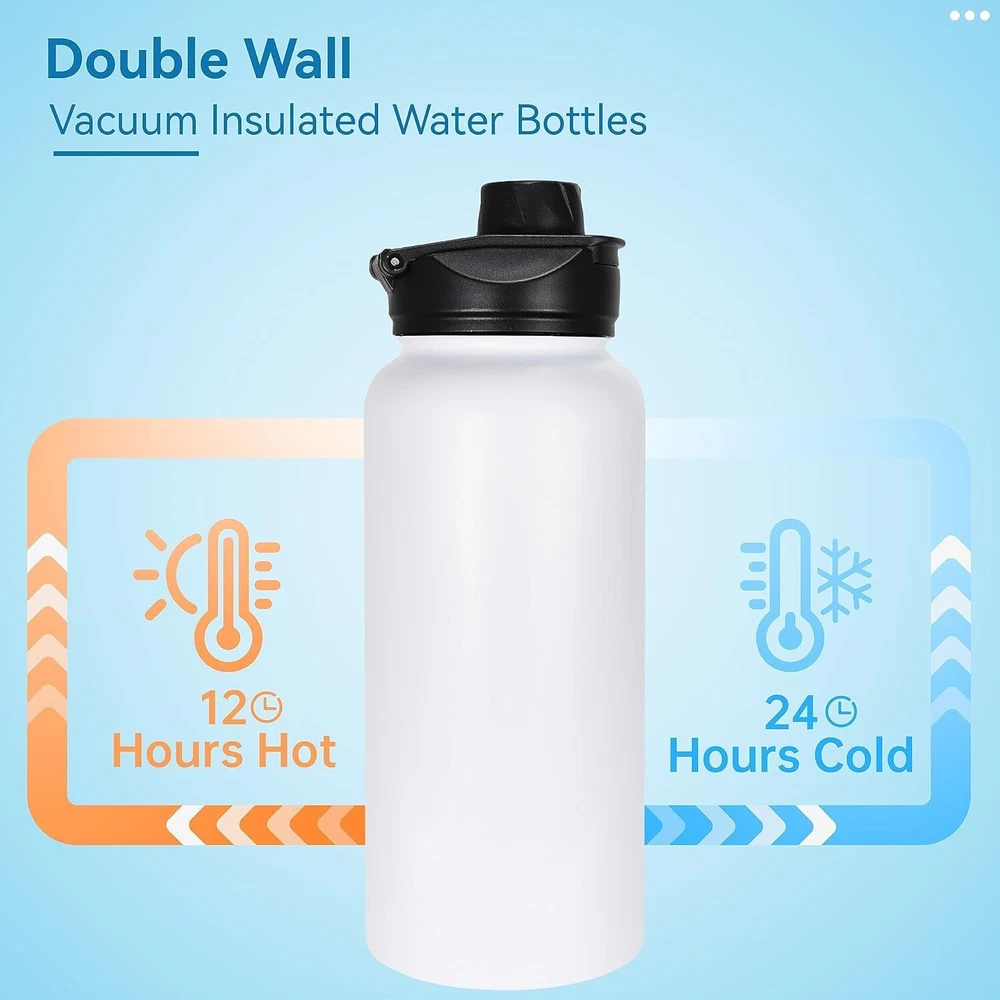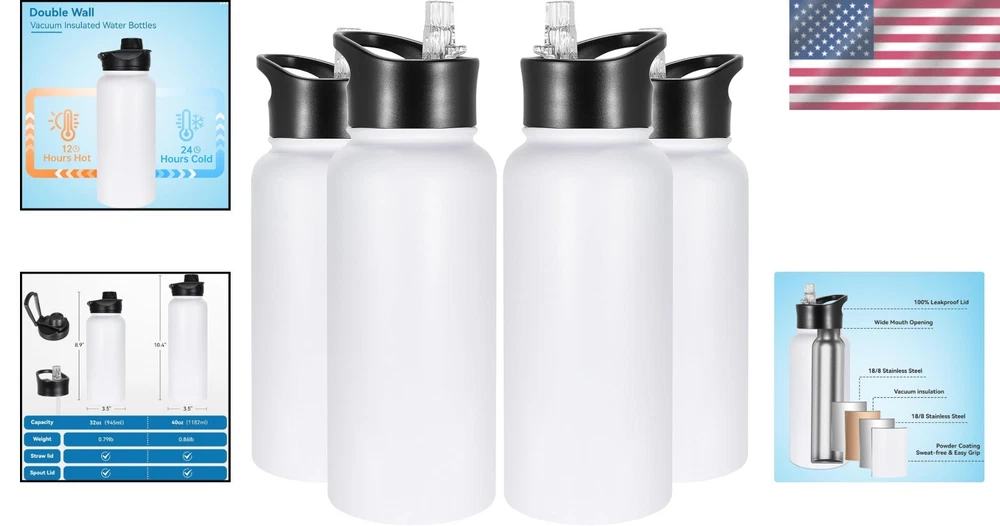 Item Shape: Round Age Range Description: Any Age Group Item Weight: 1.5 lb Unit Count: 32.0 Fl Oz Number Of Items: 4 Reusability: Reusable Color: White Department: Unisex Baby & Toddler, Adults, Teens, Girls, Boys, Kids Keeps Hot For: 12 hrs Material Type: Stainless Steel Personalize: No Bottle Type: Standard Bottle Lid Type: Twist Number of Items in Set: Four-Piece Care Instructions: Hand Wash Only Product Care Instructions: Hand Wash Only Item Dimensions W X H: 3.5"w X 8.9"h gtin13: Does not apply Style Name: White Capacity: 2 pounds Beverage Type: Hot or Cold Theme: Sport Container Type: Bottle Keeps Cold For: 24 hrs Recommended Uses For Product: Travel, School, Hiking, Sports Size: 32oz-4 Pack Features: Leak Proof, Vacuum Insulated, Reusable, Double Walled, Powder Coated Brand: Unbranded Sport Type: Boating, Hiking Material Type Free: Bisphenol A (bpa) Free Finish Types: Powder Coated UPC: Does not apply Material: Stainless Steel, BPA-Free Type: Water Bottle