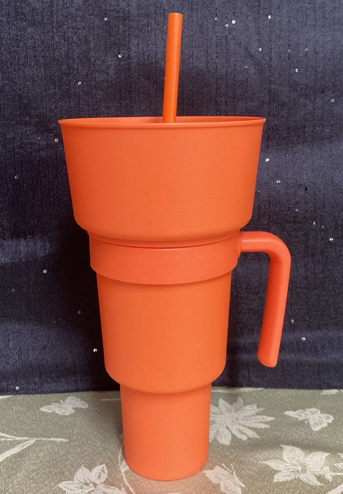 32 oz Insulated Tumbler with Snack Bowl Handle & Reusable Straw