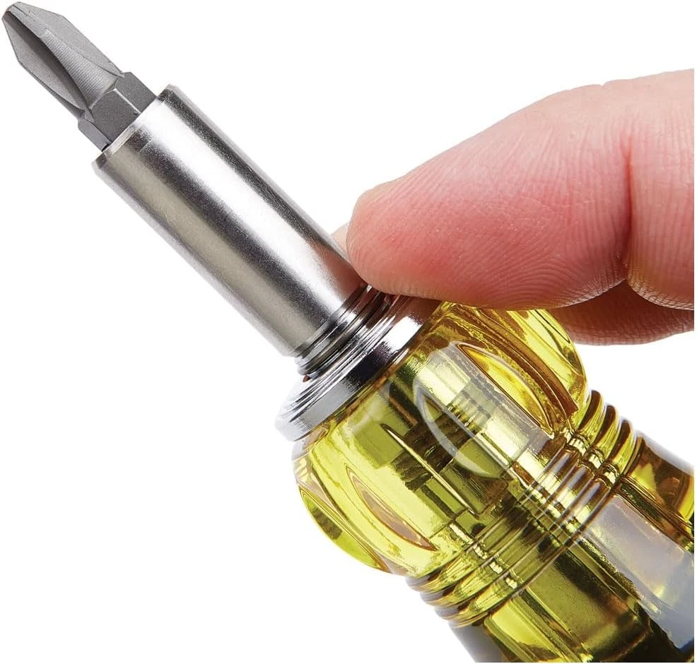 Multi-bit screwdriver includes 13 different screwdriver bits and a 1/4-Inch nut driver Industrial-strength bits that are conveniently housed in the handle Adjust the length of the blade for easier access Impact rated blade can be removed for use as an impact driver attachment Stainless steel bit holder contains powerful Rare-Earth magnet for securing bits and fasteners Cushion-Grip handle for maximum comfort Rare-Earth magnets for securing bits and fasteners Klein Tools Adjustable Length Screwdrivers function both as multi-bit screwdrivers and impact driver attachments. With these screwdrivers, there is no need to run back to your tool bag. Industrial-strength bits are conveniently housed in the handle. Simply adjust the length of the blades to allow for easier access or remove to use with an impact driver. Powerful rare earth magnets secure bits and fasteners while the Cushion-Grip handle provides outstanding comfort and control. For more than 160 years, Klein Tools has manufactured premium-quality, professional-grade hand tools that deliver the performance, durability and precision needed to get the job done right. Our family of engineers, workers and craftsman continue to put six generations of expertise into every tool we create by using only the highest quality materials, superior workmanship, and keeping manufacturing as close to home as we can. Klein isn't just the name of our company, it's also our family name. And since we're an American company that's family-owned and family-run, you know you can count on us to be here tomorrow. Klein Tools doesn't just make great products, we make great products that stand up to the demands of the professionals who use them every day ... Since 1857.