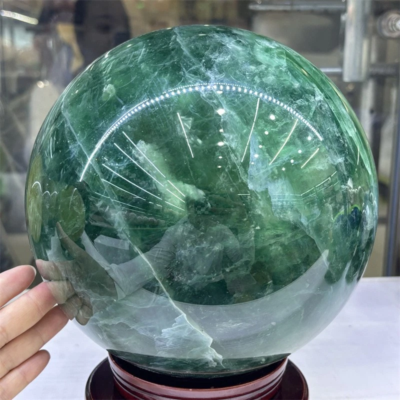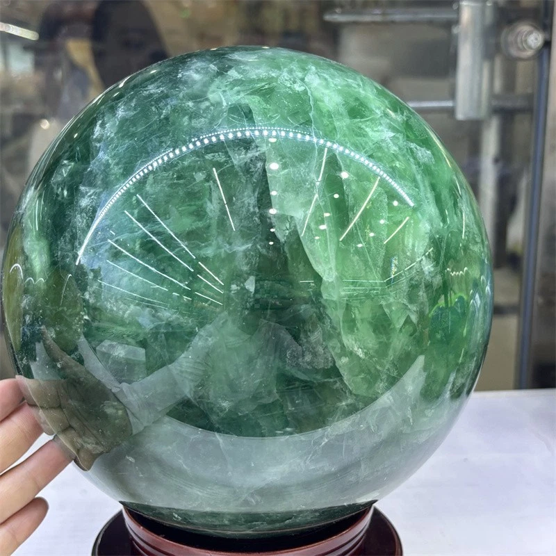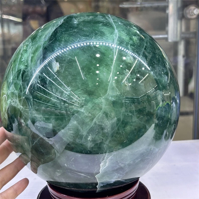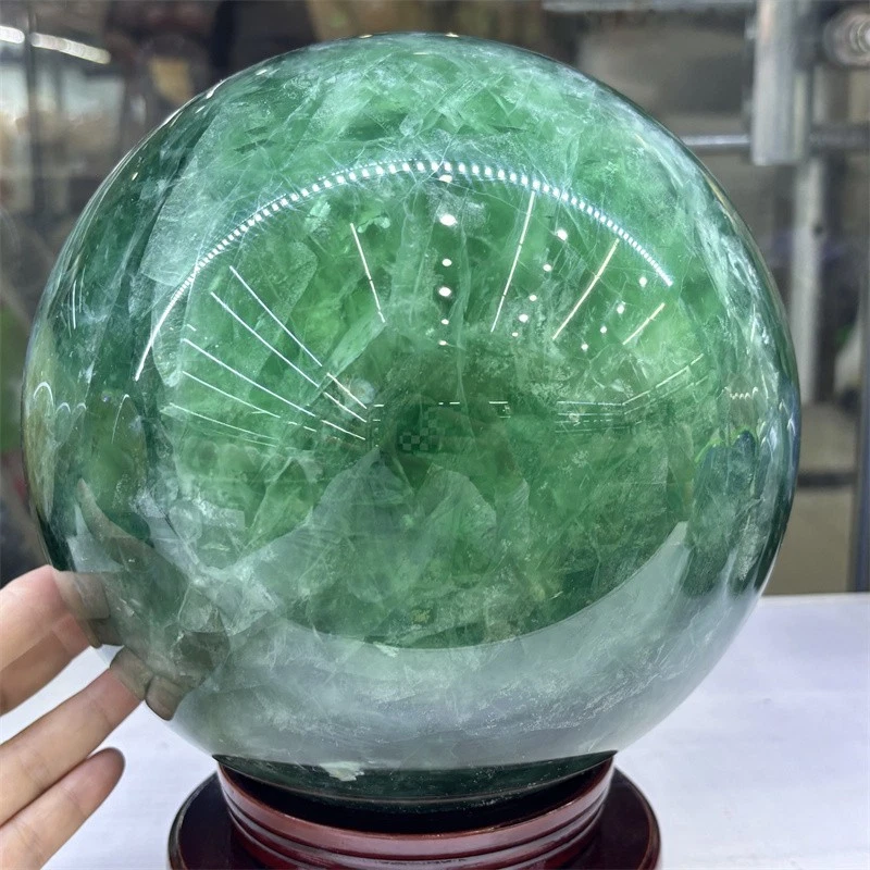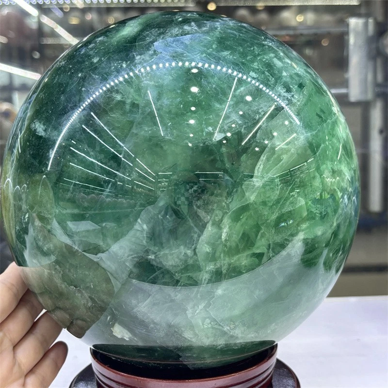 32.3LB Natural Green Fluorite Crystals Ball Quartz Sphere Decoration 200mm+Stand