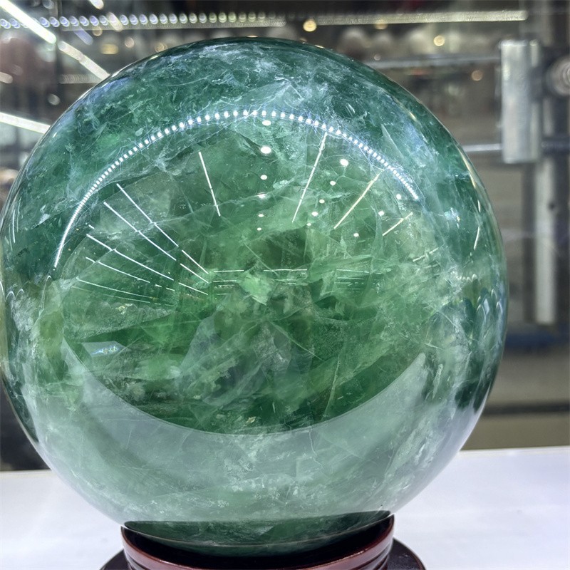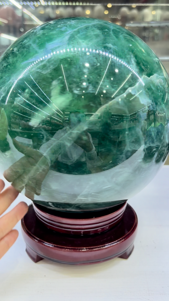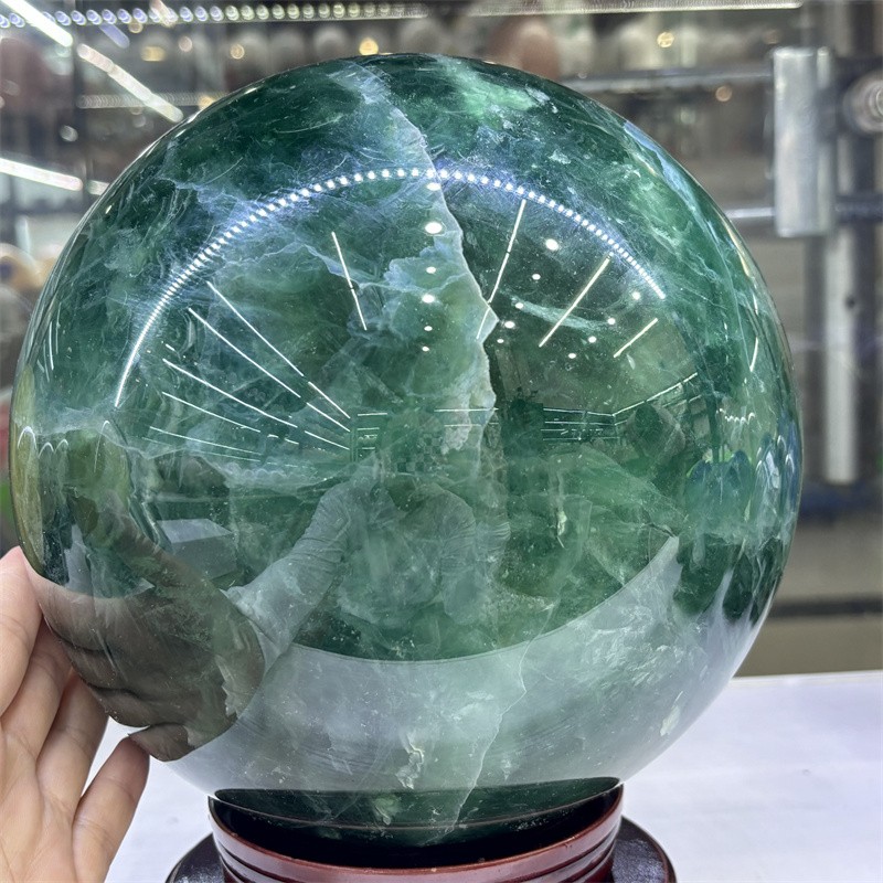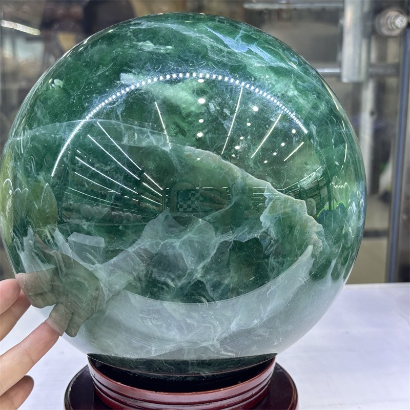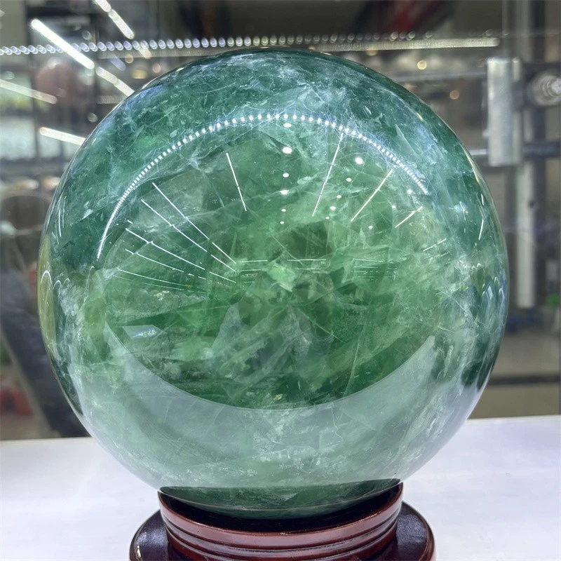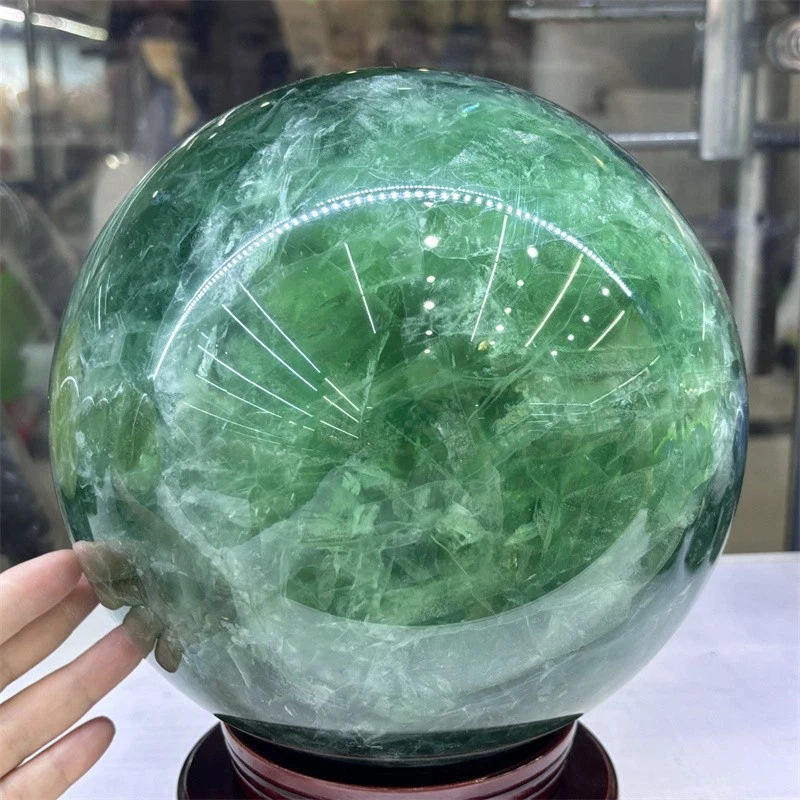 32.3LB Natural Green Fluorite Crystals Ball Quartz Sphere Decoration 200mm+Stand