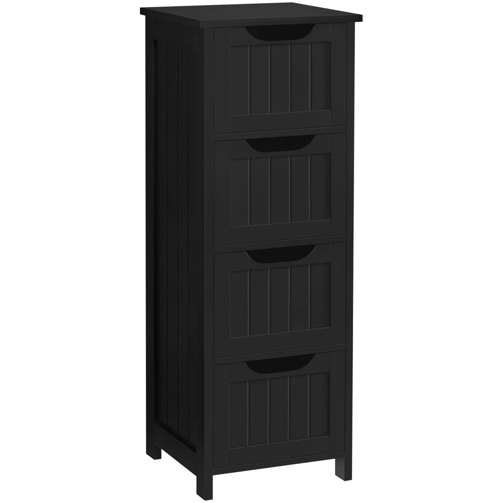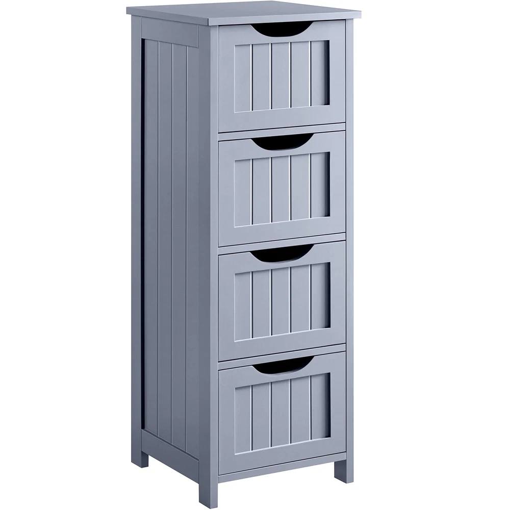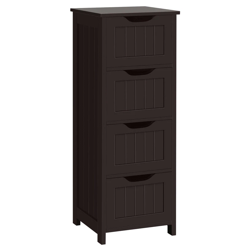 Features: Attractive: Our floor cabinet distinguishes itself from the competition by its outstanding work on details. Overlaid drawer face and innovative drawer pull are extra design elements to make your space more comfortable. Simple yet elegant style brings out the ideal taste of life Spacious: Vanity square tabletop of 30cm/12” L/W large for your table lamps, books/magazines, reading glasses/cups, etc. Each deep drawer offers ample out-of-sight space with inner dimensions of 22.3cm/8.8” L, 24.5cm/9.6” W, 10cm/3.9” H Cut-out Drawer Pull: The drawer is designed with easy-pull cutout treatment, giving you a comfortable holding feeling and a streamlined look Selected Materials: The freestanding cabinet with drawers is built of good P2 MDF with fine wooden finish. All the materials and fittings are subject to rigorous tests, so safe for your long-term use. Just so you know that we care about your health more than you do Easy Assembly: Assembly will be quick. To make the work easier for you, we’ve included illustrated instructions and necessary tools in the package before it arrives at your door. You’ll have the cabinet ready for use before you even know it Specifications: Color - White/Black/Espresso/Grey Recommended Uses For Product - Towels Product Dimensions - 12"D x 12"W x 32.5"H Special Feature - Removable Shelf Material - Wood Style - Modern Number of Drawers - 4 Shape - Rectangular Bathroom Floor Cabinet, Wooden Side Storage Organizer Free-Standing Cabinet with 4 Drawers This spacious storage cabinet provides you with an extra storage solution for your hygiene items, toiletries and medications. You can take a full advantage of 4 deep drawers and the tabletop. Constructed of quality MDF, the heavy-duty cabinet holds a maximum of load capacity up to 57.3lb. Also, the overlaid front face along with the sleek/clean drawer pulls makes it a great fit for any modern home décor. Don't miss it, keep your bathroom perfectly organized! Specification: Dimension (LxWxH): 11.8x11.8x32.3” Load capacity (max.): Tabletop: 19.8lb; Each drawer: 7.7lb N. W.: 20.3lb G. W.: 22.9lb Material: P2-compliant MDF Easy-to-read user's guide/assembly manual attached More Details: 4 spacious drawers make it easy to sort out different items Sleek and clean drawer faces overlaid with simple lines Quality water-resistant surface treatment for easy cleaning Anti-toppling fittings are designed to care about your safety Built-in fittings protect drawers from accidentally falling off the slides P2 MDF boards for your safe and long-term use Ideal for Bathroom, Living Room and Entryway as Storage Cabinet, Side Table or Console Table
