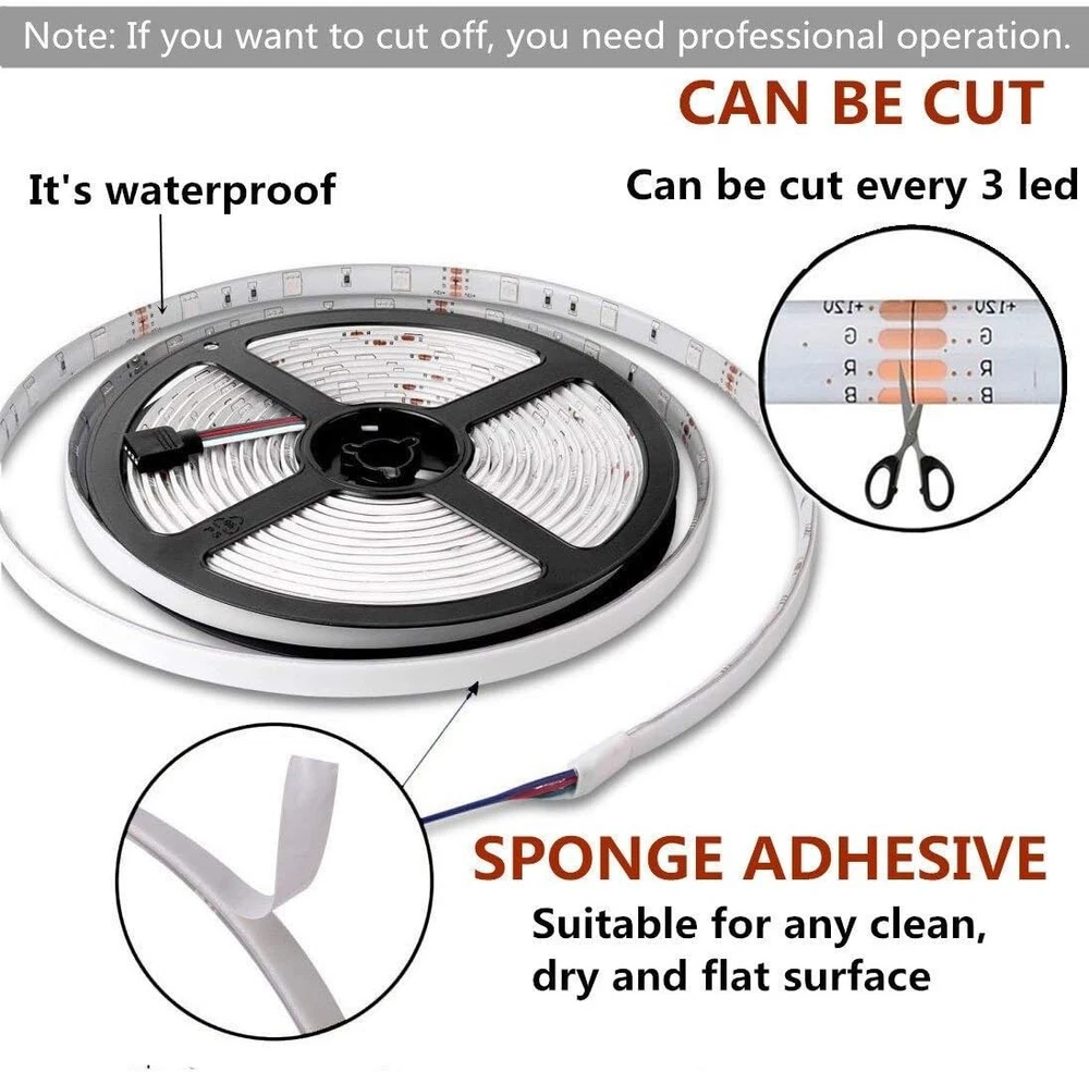 32.8ft RGB LED Strip Lights: Waterproof, Dimmable & Bluetooth Remote Control