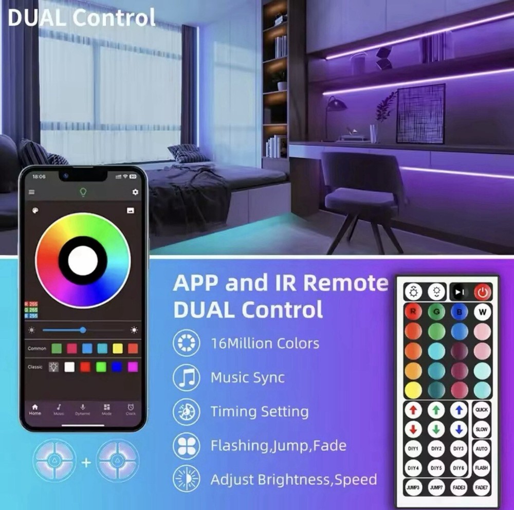 3.28ft-100ft Smart LED Strip Lights With 44keys Remote Control,Connectable App