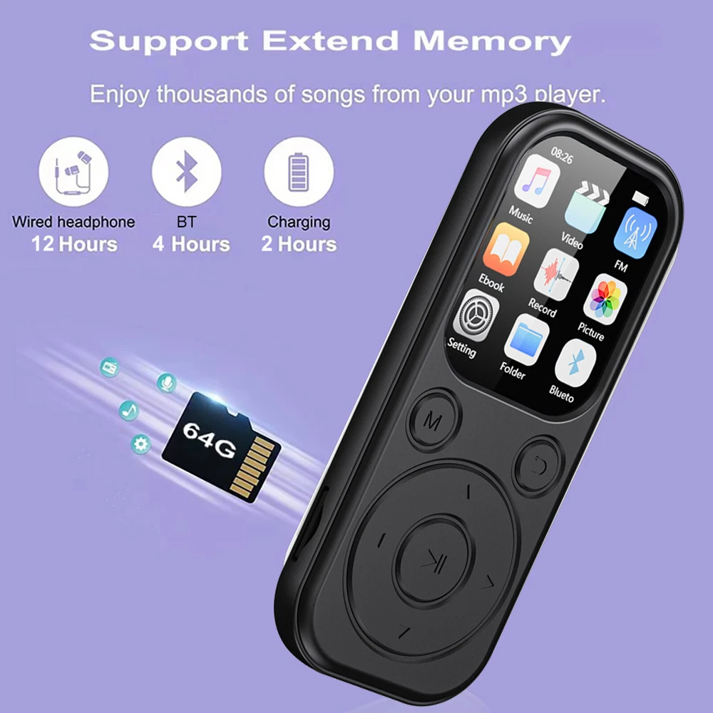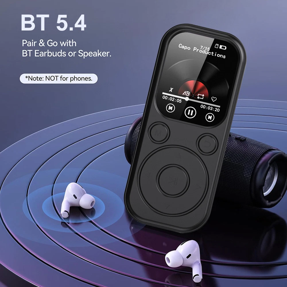 Design/Finish: Hi-Fi Lossless Sound Type: MP3 Player Screen Size: 1.8-Inch Display Material: ABS Model: Does not apply gtin13: Does not apply Connectivity: Bluetooth Features: Bluetooth Resolution: 240*288 Wireless Technology: Bluetooth Charging time: 2 hours Brand: Unbranded Operation Mode: button Battery Capacity: 500mah EAN: Does not apply Picture format: JPG Bluetooth Chip: 5.4 Audio Outputs: Headphone Jack Screen material: IPS UPC: Does not apply