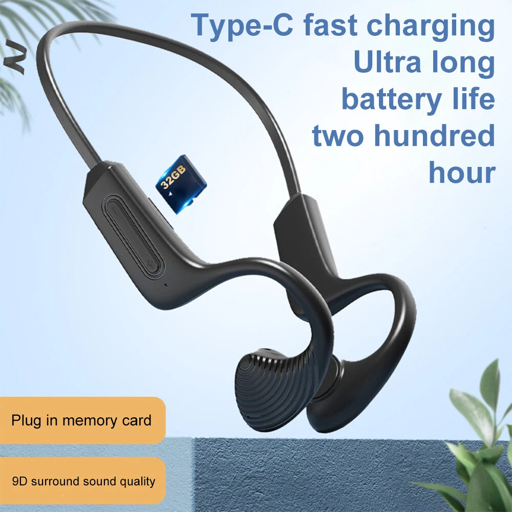 Features: 1. Comfortable and painless to wear for a long time: The earphones have undergone tens of thousands of ergonomic simulation tests, carefully polishing every detail to make the wearing experience full of "air feeling". 2. IPX5 waterproof and sweat proof: not afraid of wind and rain, IPX5 waterproof level, can swim lightly, waterproof and sweat proof, not afraid of rainwater washing and sweating profusely. 3. Comfortable and portable: The lightweight body design eliminates the inner ear type front cavity structure, and the earphones support TF cards, which can be used without connecting a phone or other device. 4. Material tightly adheres to the skin: even if twisted or bent, it will not deform and will continue to fold. 5. Zero latency transmission: Game audio and video synchronization, compatible with various mobile games, achieving high connection speed while also having accurate positioning that can make people feel better. The HIFI sound quality is clear and natural, and the sound quality is more penetrating. 6. Strong Bluetooth compatibility: Any phone, tablet, or computer with Bluetooth can connect and use it through Bluetooth. 7. Restoring HIFI sound effects: Stereoscopic surround sound, presenting pleasant sound quality, can double the vibration of the scene, allowing you to experience every detail in the music. Specifications: Color: Black Bluetooth version: V5.3 Maximum TF card support: 32GB Usage: Neck hanging type Audio channel: Bilateral stereo Speaker: F16 genuine copper ring Material: ABS Battery capacity: 200mA Music playback time: 18H Talk time: 18H Charging compartment input: 5V/500mA (OVP voltage protection) Charging time: 2 hours Charging port of charging compartment: Type-C Usage method: On/Off: Press and hold the pressure button for 3 seconds to turn on, press and hold the pressure button for 5 seconds to turn off Volume reduction: Click the reduce button Volume increase: Click the up button Next song: Long press the volume up button to switch to the next song Long press and hold the down key on the previous song to switch to the previous song Package List: Bone conduction headphones * 1 Type-C cable * 1 32GB card * 1 On Jan 8, 2025 at 01:52:16 PST, seller added the following information:
