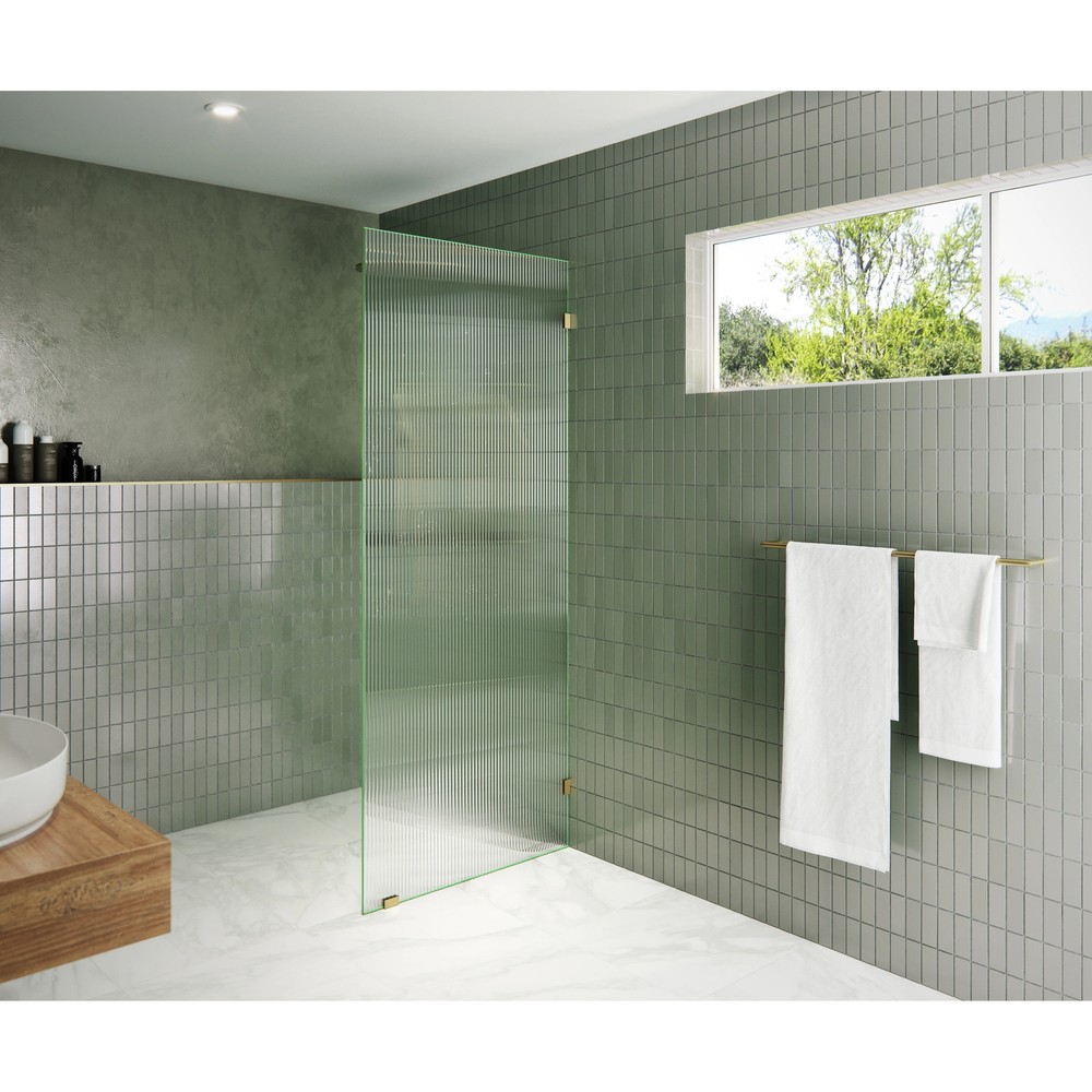 A beautifully crafted design piece with a stylish, elegant feel, the Gaia is a fluted glass, fixed shower panel. Taller than most competitor shower panels, our frameless 3/8 tempered glass panels come in a standard 78 height. Glass is treated with EnduroShield coating, which aids in repelling water and soap residue. In addition, our superior quality solid brass hardware is available in a variety of color finishes to suit any bathroom. With our extensive range of fixed frameless glass panel sizes, the Gaia by Glass Warehouse is an enclosure designed to diffuse the light in your bathroom, maintaining privacy as you shower while maximizing the natural light. Available in widths from 30 to 40 in 2 increments Taller standard height of 78 Choose from several superior hardware finishes Free Shipping Over $49.99* Details Glass Warehouse 32" x 78" Frameless Shower Door - Single Fixed Panel Fluted Product Description: A beautifully crafted design piece with a stylish, elegant feel, the Gaia is a fluted glass, fixed shower panel. Taller than most competitor shower panels, our frameless 3/8 tempered glass panels come in a standard 78 height. Glass is treated with EnduroShield coating, which aids in repelling water and soap residue. In addition, our superior quality solid brass hardware is available in a variety of color finishes to suit any bathroom. With our extensive range of fixed frameless glass panel sizes, the Gaia by Glass Warehouse is an enclosure designed to diffuse the light in your bathroom, maintaining privacy as you shower while maximizing the natural light. Available in widths from 30 to 40 in 2 increments Taller standard height of 78 Choose from several superior hardware finishes Premium 3/8 (10mm) ANSI certified tempered safety glass Glass treated with EnduroShield®, the revolutionary, non-stick treatment that makes cleaning shower glass easy, repelling soap scum, grime and dirt, and reducing your cleaning time by up to 90% Easy to install