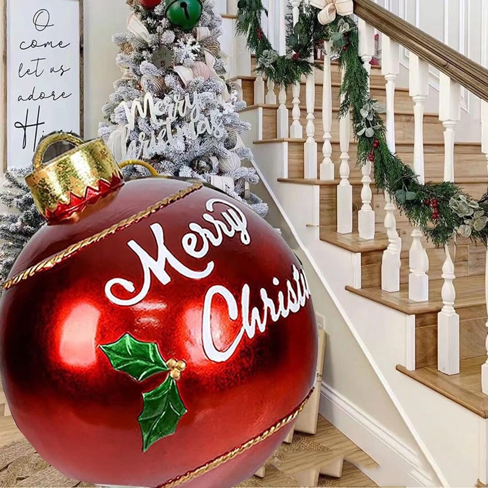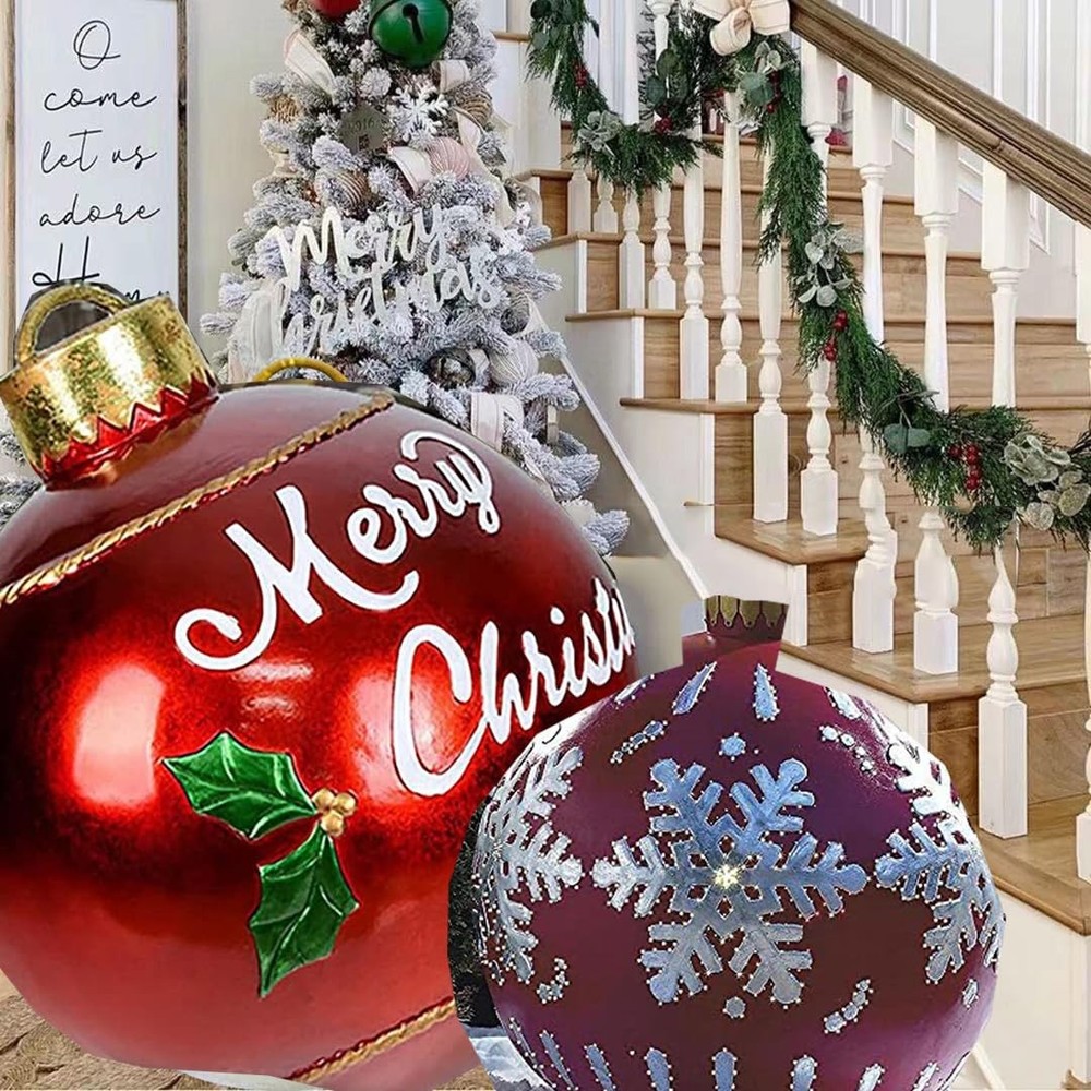 Large Size: you will receive 1 PVC inflatable ornaments in different styles, these outdoor PVC Christmas decoration balls measure about 80 cm/ 32 inches before they are inflated, about 60 cm/ 24 inches after inflated, large enough to attract people's attention from a long distance, making your places full of Christmas breath Holiday LED Lights Display: Adorned with vibrant LED lights, our inflatable santa claus outdoor shines brilliantly day and night. The carefully placed lights create a mesmerizing spectacle, enhancing the festive ambiance and ensuring that Santa remains visible even in winter evenings. Standing tall at 12ft, he's sure to impress and make a statement in your home, yard, garden, office, or hall plaza. Full Accessories for Outdoor Use: Comes with 6 ground stakes and 2 tethers to ensure firm stability in windy conditions. Built-in 2 plastic bags can be filled with water or sand and place at the bottom with a zipper of the christmas decorations for adding weight to make it more secure and stable. Finally, Don't forget to zip up and wait until it's inflated. No need to worry about the christmas blow up yard decorations flying away with the wind! Durable and Self-inflates In Minutes: Our christmas inflatable outdoor decoration are made of high-quality 210T durable thickened polyester PVC waterproof materials with excellent stitching that ensures durability and prevents tearing, whitch make it can withstand various weather conditions and ensure years of usage. In addition, we provide a powerful blower and UL certified adapter to continuously inflate christmas lawn Perfect Gift for Maximum Festivity: Our 12 ft santa inflatable christmas blow up is packed in a beautiful gift box, whitch is a very surprise christmas gift for Children. It's sure to be a hit with your family, friends, and neighbors, and is bound to become a staple in your xmas inflatables for years to come. Now, it's time to create a cheerful and welcoming environment for your family and friends!