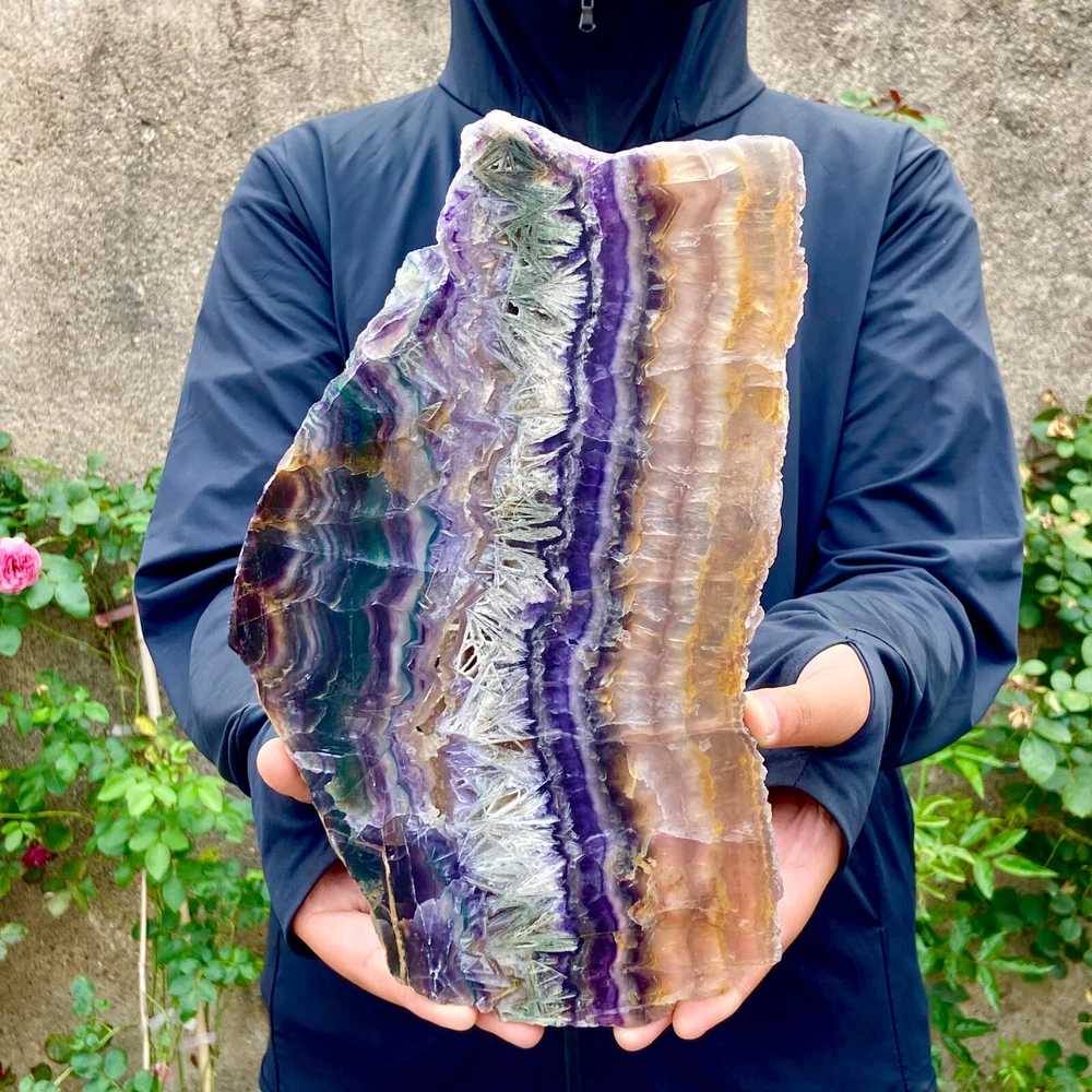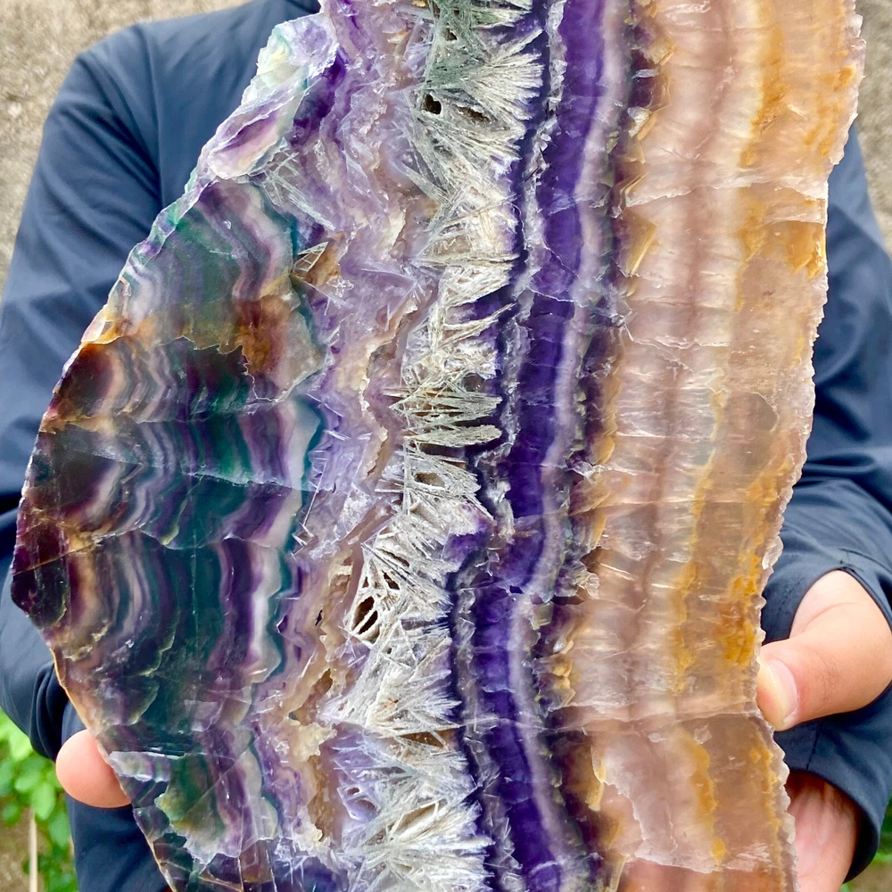 10.4LB Natural banding zebra calcite polished slab crystal reiki healing