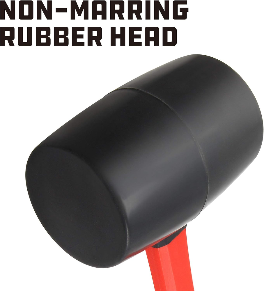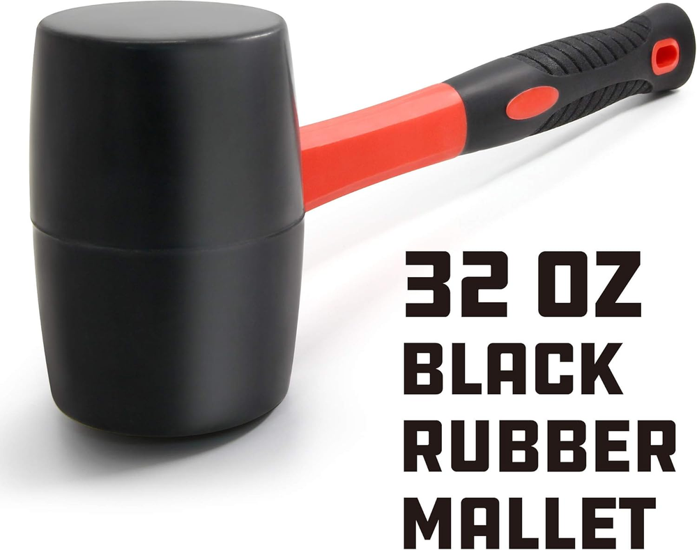 32Oz Rubber Mallet with Fiberglass Handle and Non-Slip Non-Marring Grip
