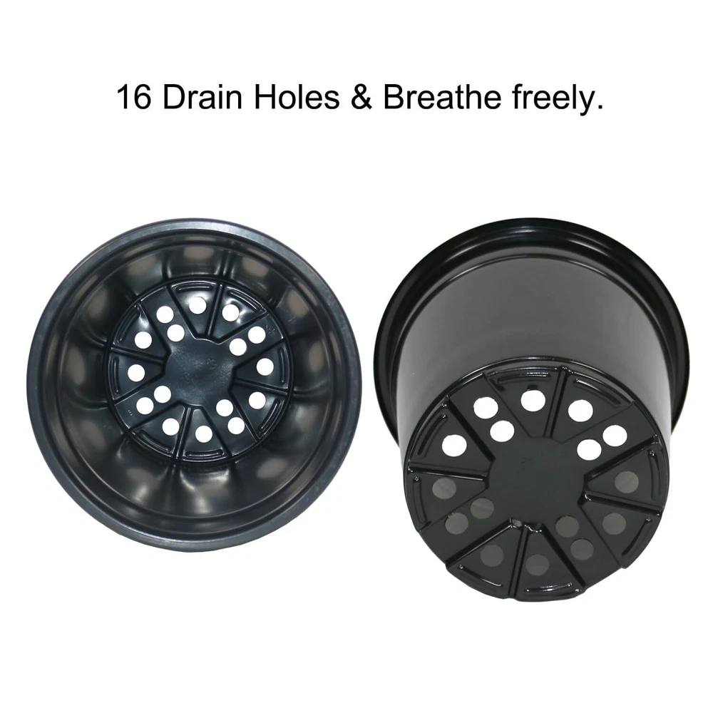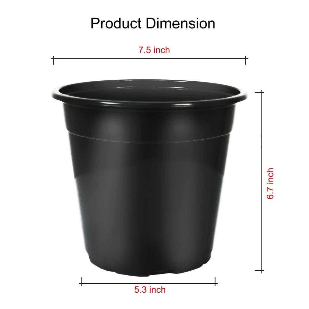 Package Includes: 32 Pcs nursery pots, Nursery Pot dimensions: Height 6.7”, opening diameter 7.5”, bottom diameter 5.3”, 1 x Watering Bottle 500 ml, 10 Pcs plant labels included , you can mark the plants’ name easily,attention : plants not included Material: Our nursery pots is made of recyclable PP plastic, which is lightweight, reusable and restored after being compressed with no broken, they are perfect for indoor outdoor plants, flowers, succulents, seedlings, cuttings and seedlings Great Design: 16 Pcs holes at the bottom can help soil drained and ventilated, ensure proper drainage, strong breathability. while allow plants to breathe freely, and the top raised rim make they are easy to handle and to stack Save Space: These nursery pots are made of thin, Flexible Plastic, they can be easily stacked together for easier storage Widely Used: These pots are ideal for plants cuttings, seedling, plant starting, transplanting and for indoor outdoor plants, you can use them in your yard, garden, porch, greenhouse office, hotel,shopping mall, greenery, patio and more