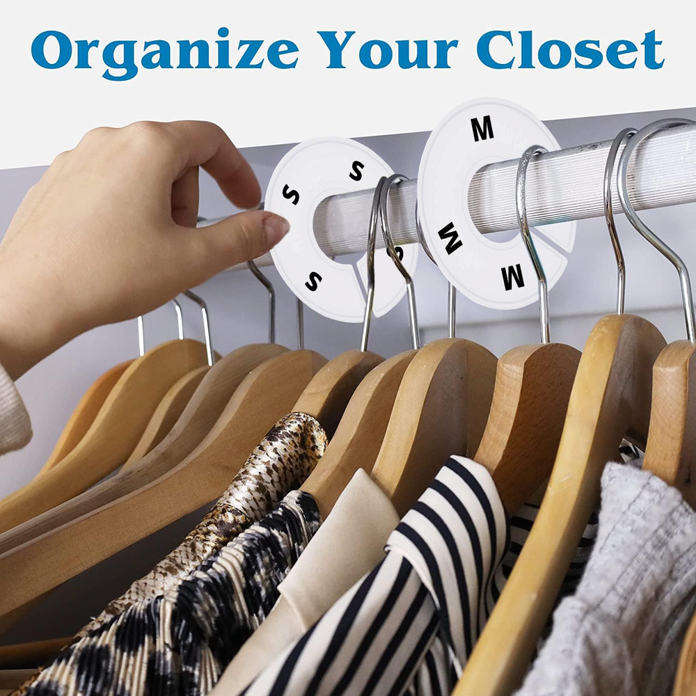 30 closet size dividers for organizing clothes from baby to adult; ideal for home and retail Blank white closet hanger dividers for easy personalization; simplifies finding and sorting items Clothing dividers made from sturdy plastic with slight flex for easy installation; resistant to snapping or breaking Fully customizable design allows for a personalized closet organization system; marker not included Each clothing rack divider has a 1.35” wide opening; ensure compatibility with your closet rod before purchasing Product Description