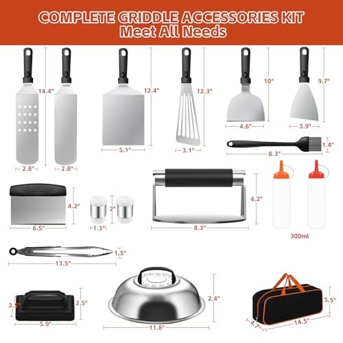 $ 24.1215Pcs Stainless Steel Flat Top Grill Tool Set for Blackstone & Camping BBQ