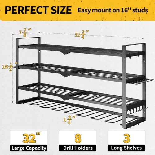 Menu 1. We require immediate payment. 2. We currently accept payment via eBay managed payments only. 3. Once payment is cleared, we will dispatch your shipment within 1-3 business days. Please refer to the "Shipping" tab for more information regarding shipping speed to your destination. Power Tool Organizer, Drill Holder Wall Mount, 4 Layers Tool Storage, Heavy Duty Garage 8 Drill Storage Shelf with Hammer/Screwdriver/Hooks Rack, Extra Large Capacity Product description BIG TOOL ORGANIZERS: power tool organizer is a 4 layer 8 drills holder designed for all power tools and cordless drills. With the huge capacity of load, your tools will be organized and easy to find. STRONG & DURABLE : This tool holder made with 100% Iron that provides exceptional stability for your drills organizer. The garage tool box organization can be mounted on concrete, drywall, or pegboard as perfect tool rack organizers in your workshop. LARGE CAPACITY: The power drill organizer and tool storage wall mount can be expected a decade of heavy-duty bearing (maximum load capacity: 180lbs) .T are totally 4 layers for all the accessories,really big place. EASY SETUP: tool storage rack is very easy to set up, you will find no difficulty in the processing on our garage tool holder when you get it.Total 8 keyhole slots can make the rack mount in the wall rock-solid. Welcome to , a brand created by a group of engineers dedicated to designing space, storage, and home living philosophy. We value the various storage spaces in our homes, large and small, in all shapes and sizes, just as we do with our customers. We also attach equal importance to any problems in using the product. So, feel free to contact us, even if it is just an extra in a mechanism. PLEASE MESSAGE US IF YOU HAVE ANY OTHER QUESTIONS, AND MANY THANKS FOR READING ALL OF THIS. Copyright ©#. All Rights Reserved.