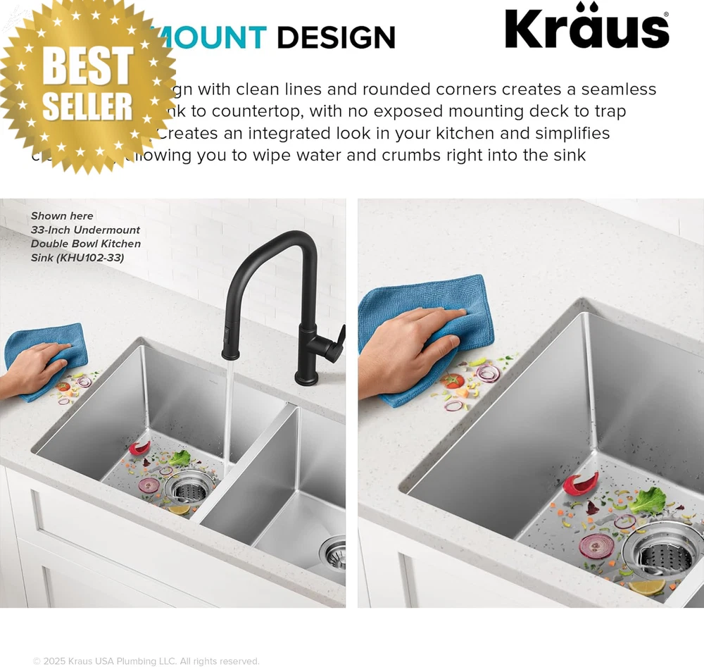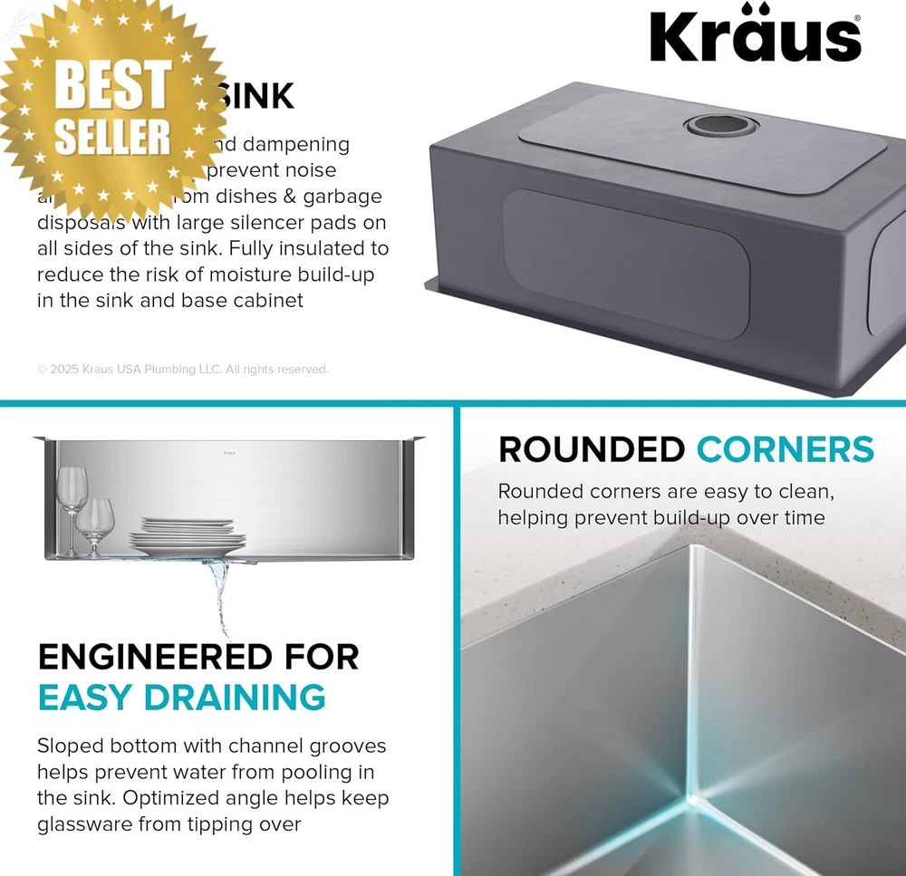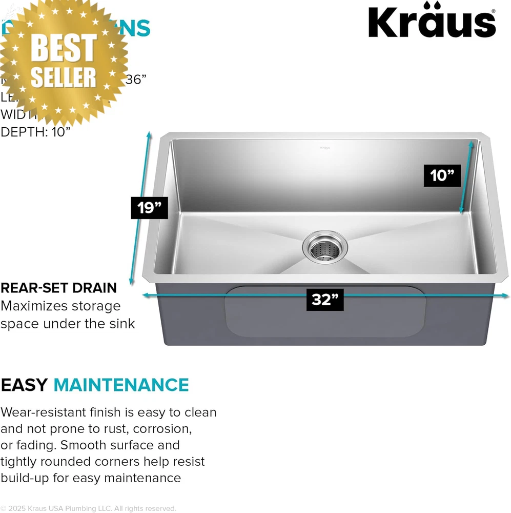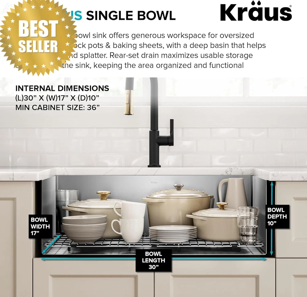Fa lconbay_US 32in Undermount Kitchen Sink 16 Gauge Stainless Steel Single Bowl KHU100-32 FEATURES π§Ό KHU100-32 Standart PRO 32-Inch Undermount Stainless Steel Kitchen Sink β 16-Gauge Single Bowl | Heavy-Duty TRU16 T-304 Steel + Complete Installation Kit πͺΆ Product Description Bring durability and modern simplicity to your kitchen with the Standart PRO 32-Inch Undermount Single Bowl Sink , crafted from tough TRU16 16-gauge T-304 stainless steel for superior strength and everyday resilience. With a universal fit and gently rounded corners, this sink makes cleanup effortless and resists buildup from grime or food π½οΈπ§ Engineered for long-term performance, its satin finish resists scratches and corrosion while maintaining a sleek, commercial-grade appearance. The deep bowl, sloped bottom, and channel grooves promote fast drainage, and undermount installation gives your counters a seamless, debris-free edge. π Specifications β’ External Dimensions : 32" L Γ 19" W Γ 10 1/2" D β’ Bowl Dimensions : 30" L Γ 17" W Γ 10" D β’ Minimum Cabinet Size : 36" β’ Material : TRU16 T-304 Stainless Steel (16-Gauge) β’ Finish : Satin (Scratch-Resistant, Commercial Grade) β’ Installation Type : Undermount β’ Certifications : UPC, CUPC, CSA, IAPMO, ANSI, SCC π§ Key Features β Heavy-Duty 16-Gauge Steel β Built with TRU16 T-304 stainless for unmatched durability β Undermount Design β Seamless integration with your countertop for easy wipe-clean use β Wear-Resistant Satin Finish β Tough against daily wear, stains, and rust β Tightly Rounded Corners β Prevents grime buildup and simplifies maintenance β Optimized Drainage β Sloped bottom with engineered grooves keeps water flowing β Fully Certified β Meets strict North American quality and safety standards π Why Youβll Love It βοΈ Universal style fits traditional or modern kitchens βοΈ Deep 10β bowl perfect for oversized cookware and trays βοΈ Commercial-grade satin finish adds a clean, elegant look βοΈ Reliable corrosion and dent resistance for daily use βοΈ Certified quality + backed by a limited lifetime warranty π¦ Whatβs in the Box? β’ 1 Γ KHU100-32 Stainless Steel Sink β’ 1 Γ Protective Bottom Grid β’ 1 Γ Drain Assembly with Removable Strainer β’ 1 Γ Mounting Hardware β’ 1 Γ Cutout Template β’ 1 Γ Kraus Branded Kitchen Towel π‘ Tips for Use Rinse with mild soap and water for a streak-free shine Use the included grid to protect the basin from scratching Wipe dry regularly to maintain the satin finish π¦ Fastest Shipping Guaranteed Unlike other stores that offer cheaper products but come with delivery delays of up to 30 days, we take pride in offering fast and reliable shipping. Based in the American, we guarantee that your order will be delivered within 3β8 days, with no unexpected delays (unless under rare circumstances). When you shop with us, youβre choosing speed and satisfaction. π¦π β FAQs Q1: What size cabinet is required? π A minimum 36-inch base cabinet is required for proper installation. Q2: Is the finish easy to clean and maintain? π Yes β the satin finish resists corrosion and cleans easily with a soft cloth. Q3: Does the sink come with a warranty? π Yes β it includes a limited lifetime warranty for peace of mind. Q4: Are certifications included? π Absolutely β this sink is certified by UPC, CSA, ANSI, and more. Q5: Is everything I need included in the box? π Yes β it includes mounting hardware, grid, drain assembly, towel, and a cutout template. Style Single Bowl Material Type Stainless Steel Item Type Name 16 Gauge Undermount Single Bowl Stainless Steel Kitchen Sink Finish Types Stainless Steel Unit Count 1.0 Count Product Dimensions 19"D x 32"W x 10"H Material Stainless Steel Manufacturer Part Number KHU100-32 Model Number KHU100-32 Installation Type Undermount Drain Type Grid Manufacturer Warranty Description Limited Lifetime Item Weight 26.4 Pounds Color Stainless Steel Item Dimensions D x W x H 19"D x 32"W x 10"H Global Trade Identification Number 00812679018930 Shape Rectangular Included Components 1 Product Care Instructions Wipe with Dry Cloth Size 32 Inch 32.0 "h x 19.0 "h x 10.0 "h. Weight: 26.4 lb PAYMENT We accept all payments via Ebay using Credit Cards , Affrim, PAYPAL , Apple Pay and many others SHIPPING We are always working hard to ensure your package arrives as soon as possible. Please understand that some factors like weather, high postal traffic, and the performance of shipping companies are outside of our control. DELIVERY & RETURN POLICY We offer a 30-Day Return Policy on items in which you are not completely satisfied with. You have the option of a full-refund.