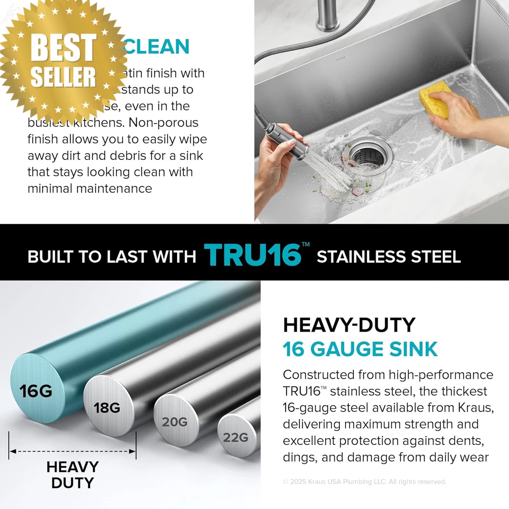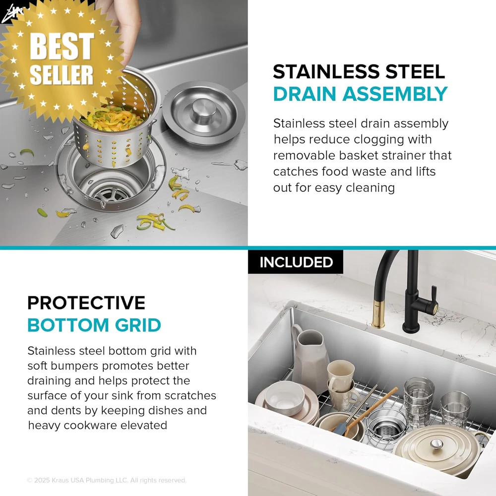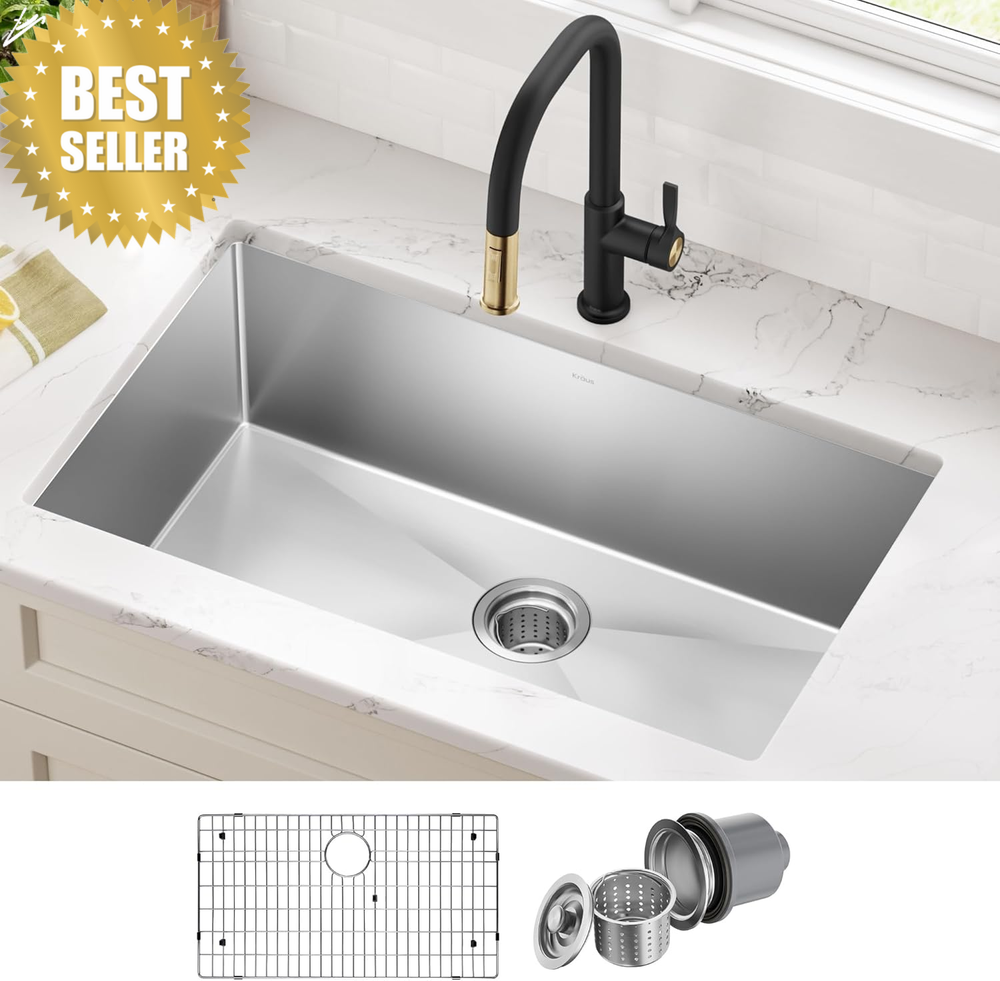 Fa lconbay_US 32in Undermount Kitchen Sink 16 Gauge Stainless Steel Single Bowl KHU100-32 FEATURES π§Ό KHU100-32 Standart PRO 32-Inch Undermount Stainless Steel Kitchen Sink β 16-Gauge Single Bowl | Heavy-Duty TRU16 T-304 Steel + Complete Installation Kit πͺΆ Product Description Bring durability and modern simplicity to your kitchen with the Standart PRO 32-Inch Undermount Single Bowl Sink , crafted from tough TRU16 16-gauge T-304 stainless steel for superior strength and everyday resilience. With a universal fit and gently rounded corners, this sink makes cleanup effortless and resists buildup from grime or food π½οΈπ§ Engineered for long-term performance, its satin finish resists scratches and corrosion while maintaining a sleek, commercial-grade appearance. The deep bowl, sloped bottom, and channel grooves promote fast drainage, and undermount installation gives your counters a seamless, debris-free edge. π Specifications β’ External Dimensions : 32" L Γ 19" W Γ 10 1/2" D β’ Bowl Dimensions : 30" L Γ 17" W Γ 10" D β’ Minimum Cabinet Size : 36" β’ Material : TRU16 T-304 Stainless Steel (16-Gauge) β’ Finish : Satin (Scratch-Resistant, Commercial Grade) β’ Installation Type : Undermount β’ Certifications : UPC, CUPC, CSA, IAPMO, ANSI, SCC π§ Key Features β Heavy-Duty 16-Gauge Steel β Built with TRU16 T-304 stainless for unmatched durability β Undermount Design β Seamless integration with your countertop for easy wipe-clean use β Wear-Resistant Satin Finish β Tough against daily wear, stains, and rust β Tightly Rounded Corners β Prevents grime buildup and simplifies maintenance β Optimized Drainage β Sloped bottom with engineered grooves keeps water flowing β Fully Certified β Meets strict North American quality and safety standards π Why Youβll Love It βοΈ Universal style fits traditional or modern kitchens βοΈ Deep 10β bowl perfect for oversized cookware and trays βοΈ Commercial-grade satin finish adds a clean, elegant look βοΈ Reliable corrosion and dent resistance for daily use βοΈ Certified quality + backed by a limited lifetime warranty π¦ Whatβs in the Box? β’ 1 Γ KHU100-32 Stainless Steel Sink β’ 1 Γ Protective Bottom Grid β’ 1 Γ Drain Assembly with Removable Strainer β’ 1 Γ Mounting Hardware β’ 1 Γ Cutout Template β’ 1 Γ Kraus Branded Kitchen Towel π‘ Tips for Use Rinse with mild soap and water for a streak-free shine Use the included grid to protect the basin from scratching Wipe dry regularly to maintain the satin finish π¦ Fastest Shipping Guaranteed Unlike other stores that offer cheaper products but come with delivery delays of up to 30 days, we take pride in offering fast and reliable shipping. Based in the American, we guarantee that your order will be delivered within 3β8 days, with no unexpected delays (unless under rare circumstances). When you shop with us, youβre choosing speed and satisfaction. π¦π β FAQs Q1: What size cabinet is required? π A minimum 36-inch base cabinet is required for proper installation. Q2: Is the finish easy to clean and maintain? π Yes β the satin finish resists corrosion and cleans easily with a soft cloth. Q3: Does the sink come with a warranty? π Yes β it includes a limited lifetime warranty for peace of mind. Q4: Are certifications included? π Absolutely β this sink is certified by UPC, CSA, ANSI, and more. Q5: Is everything I need included in the box? π Yes β it includes mounting hardware, grid, drain assembly, towel, and a cutout template. Style Single Bowl Material Type Stainless Steel Item Type Name 16 Gauge Undermount Single Bowl Stainless Steel Kitchen Sink Finish Types Stainless Steel Unit Count 1.0 Count Product Dimensions 19"D x 32"W x 10"H Material Stainless Steel Manufacturer Part Number KHU100-32 Model Number KHU100-32 Installation Type Undermount Drain Type Grid Manufacturer Warranty Description Limited Lifetime Item Weight 26.4 Pounds Color Stainless Steel Item Dimensions D x W x H 19"D x 32"W x 10"H Global Trade Identification Number 00812679018930 Shape Rectangular Included Components 1 Product Care Instructions Wipe with Dry Cloth Size 32 Inch 32.0 "h x 19.0 "h x 10.0 "h. Weight: 26.4 lb PAYMENT We accept all payments via Ebay using Credit Cards , Affrim, PAYPAL , Apple Pay and many others SHIPPING We are always working hard to ensure your package arrives as soon as possible. Please understand that some factors like weather, high postal traffic, and the performance of shipping companies are outside of our control. DELIVERY & RETURN POLICY We offer a 30-Day Return Policy on items in which you are not completely satisfied with. You have the option of a full-refund.