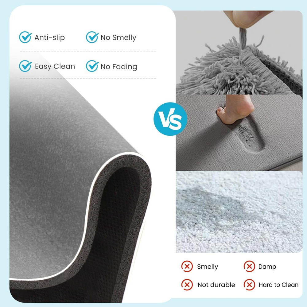 Bath Mat Rug 32"x17.8" Bathroom Mat Non Slip Bath Mat Quick Dry Super Absorbent Bathmat Bath Rug Bathroom Rug Easy to Clean Rectangle Grey 【Absorbent & Quick Drying】:The bath mat for bathroom is made of diatomite materials,which is easier to dry than normal plush mat. They can absorb as much water as possible from your wet feet immediately when you come out from bathtub or shower. This super absorbent bath mat will keep your space clean and safe. If you want to dry it quickly, just hang to air dry for one night. 【SOFT & COMFORTABLE】:The diatomite shower mat for bathroom contains a cushioning sponge layer for added comfort.,When you get out of the bathtub or shower, your feet will feel very soft on the surface. You won't feel cold or hard anytime. Enjoy a dry and comfortable experience after your shower. 【NON-SLIP BACKING Design】:The bathroom mat is designed with a rubber backing, it have a strong adsorption to the ground preventing slips and skids on wet surfaces. You can step out of the shower or bathtub with confidence 【Wide Use & Warmer】: This thin bathroom mat is suitable for wherever is easy to get wet, such as shower or bathtubs.Used for door mat, laundry room mat, kitchen mat, pet feeding mat, plant placement mat, desk mat, sink mat, living room mat,RV mat etc, You won’t feel cold in winter and won’t feel hot in summer when step on it. It's more than a mat for bathroom. 【Easy Clean & Durability】:The washable bathroom mat’s surface is designed to be smooth,unlike the plush bathmat. Never worry about cleaning hair and dust anymore.Just clean it with a damp cloth or rinse with a shower nozzle,even without the need of machine & hand washing. The rubber bath rug for bath room is used longger without problems caused by fibers, like fading, shedding, wearing. 【Best After-sales Service】: If you have any problem, please contact on us straightly. We will give you a satisfactory answer. SHIPPING Domestic Buyers - We have confidence in our products, but if you are not fully satisfied please contact us within 30 days of purchase and you will get full refund. - We ship within 3 business days of payment, usually sooner - We offer FREE shipping on all orders! - We only ship to the lower 48 states, no APO/FPO addresses or PO Boxes allowed International buyers – please note: Import duties, taxes, and charges aren't included in the item price or postage cost. These charges are the buyer's responsibility. - Please check with your country's customs office to determine what these additional costs will be prior to bidding or buying. * Order Cancellation Policy ** You can return a product for up to 30 days from the date you purchased it. 1. The seller reserves the right to cancel the special case only due to eBay cancellation fee. 2. The decision of seller is the final. 3. The seller will respond to the cancellation request within 2 business days. Please wait for the result of cancellation. 4. In case the cancellation is not completed by some reasons, the buyer can follow the options below to get the refund. 4.1 The buyer can reject the item when it arrives. 4.2 The buyer can send the item back to the seller within 30 days If the buyer receives item (USA Shipment ONLY). The seller will provide the FREE return label to the buyer when the buyer opens " Return Item" case on eBay by using the reason as "Change my mind" ONLY. 5. When buyer has placed the order. The order will be processed and completed by automatic warehouse system within 5 minutes. In case that buyer sends the cancellation request after 5 minutes of placing the order, the request will be rejected. **Sending direct message to cancel the order is not allowed for every case.* Return Policy For the return case - If buyer would like to return the items for refund or replacement, please CONTACT SELLER to receive the free return label from seller. The refund or replacement will be processed with the tracking number of return label which is provided by seller only. The other ways of return which are not approved by seller will not be processed for the refund or replacement.