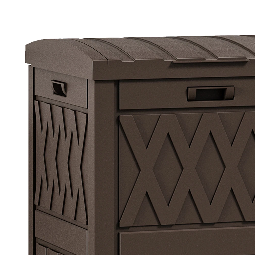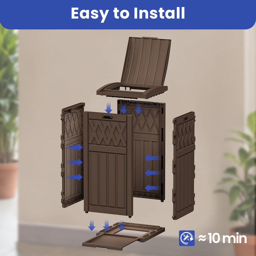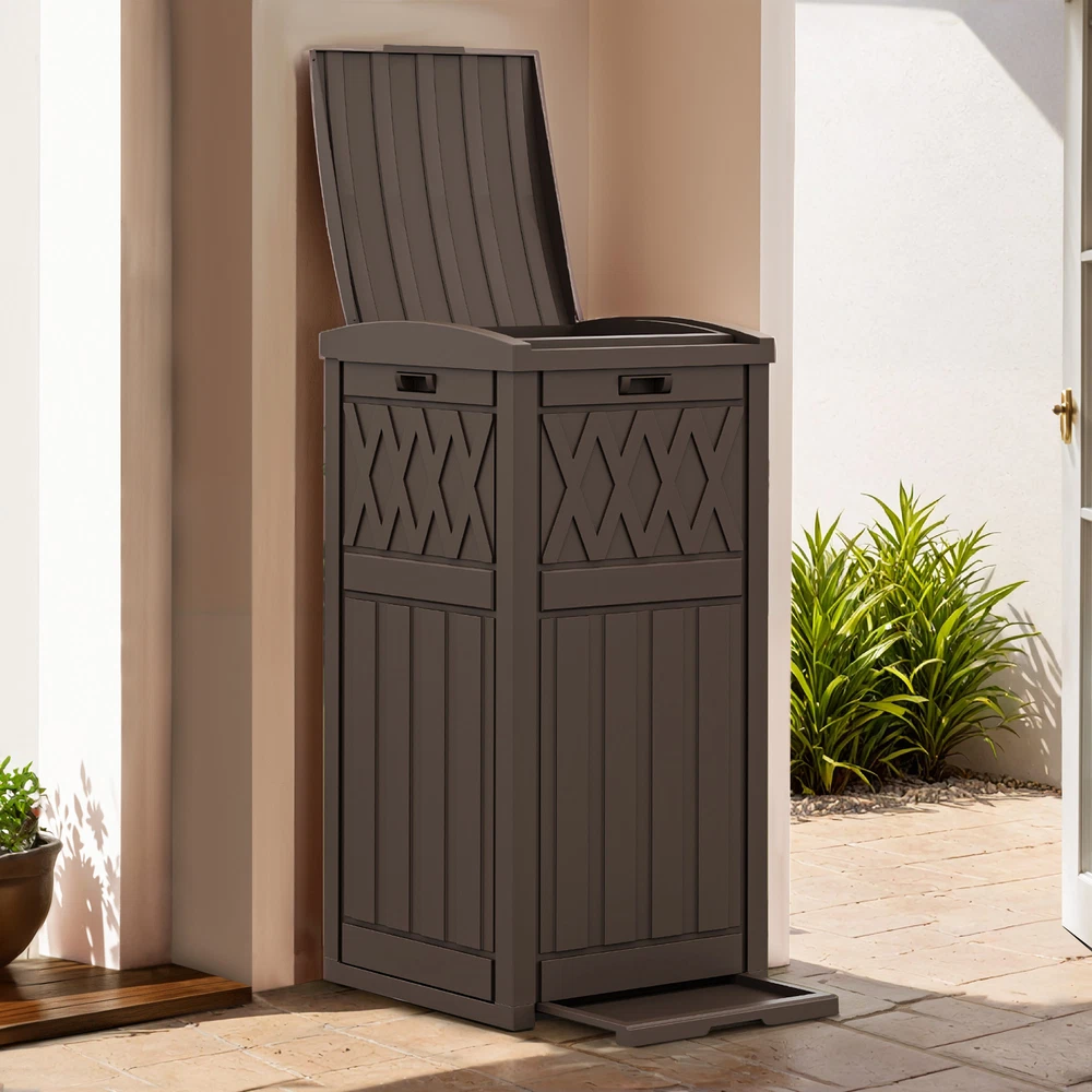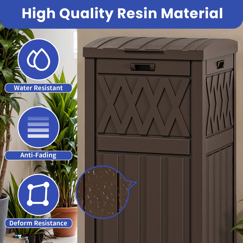 33 Gallon Outdoor Trash Bin Storage Can Garbage Kitchen Waste Lock Odorless Tray Product Description NOTE: Professional Installation would be Highly Recommended. Description: 1. Color : Brown 2. Features : Anti Fading, Lockable Lid, Removable, Water/Weatherproof 3. Material : Polypropylene and Resin 4. Room : Garage, Kitchen, Laundry Room, Patio, etc 5. Suitable For : Food Waste, General, Indoor/Outdoor, Paper, and Plastic Features: Spacious and Functional Design With dimensions of 16"L x 15.9"W x 33.7"H and a weight capacity of 53 lbs , our bin accommodates all your waste needs without frequent emptying. Our single compartment design ensures easy sorting and disposal. It’s a practical addition for both small and large households. Weatherproof and Fade-proof for Outdoor Versatility Built with premium waterproof materials . Our bin stands up to harsh weather and proofs fading for long-lasting beauty in any environment. Whether placed outdoors or indoors, it maintains functionality and aesthetic appeal for years to come. Enjoy reliable performance without compromising on style. Secure and Practical Lockable Lid Our lockable lid feature keeps contents safe and secure. Protecting your trash from curious pets or wildlife. While the padlock is not included , we provide an option to add extra security for peace of mind. Ideal for managing food waste, paper, or plastics in shared spaces. Easy Maintenance and Portability Lightweight at just 16 lbs . Our bin is easy to move wherever needed, while our removable components simplify cleaning. Our included assembling hardware and instruction manual makes setup quick and hassle-free. Enjoy effortless waste management with minimal upkeep. Dimensions: 1. Maximum Weight Capacity : 53 lbs 2. Overall Dimensions : 16"L x 15.9"W x 33.7"H 3. Weight : 16 lbs Package Included: 1. 1x Outdoor Trash Bin 2. Assembling Hardware Kits 3. Instruction Manual Book *) EXCLUDING PADLOCKS Shipping 1. Normally the item will be dispatched within 1 business day if payment is cleared before 12pm PST. 2. Please verify the correct shipping address in your PayPal account before making the payment. We only dispatch the item to the address that is sent to us at the time of checkout. 3. We don't ship to Hawaii, Alaska, Puerto Rico, APO/FPO/PO Boxes. 4. We don't provide local pick-up service. 5. Normally we will use USPS, UPS, FedEx & LTL to dispatch items. Payment 1. We accept PayPal and credit card. 2. We will ship to the confirmed Paypal shipping address that is provided with the payment only. Return 1. 30 days Money Back Guarantee. 2. Please contact our customer service to receive a RMA form first if want to return the item. 3. All returned items MUST in new condition with the original package. Contact If has any problem, please contact us by sending an ebay message. Our customer service will resolve the problem as soon as possible. On Dec 3, 2024 at 21:11:48 PST, seller added the following information: