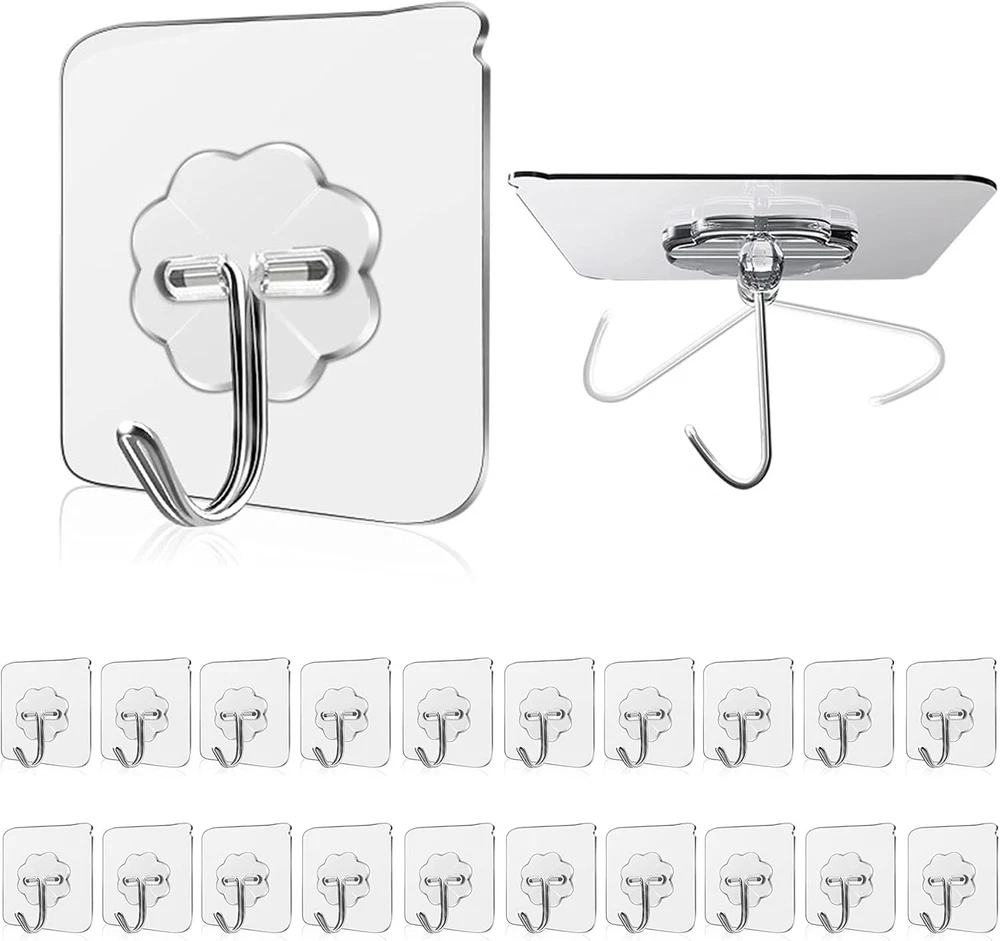 ✅VALUE ADHESIVE HOOKS - Set of 10 self adhesive kitchen wall hooks are widely applied in the kitchen, bathroom, bedroom, living room, entrance, and other places which help to improve your lifestyle, meeting your needs. ✅UTILITY HOOKS - The adhesive hooks are made of stainless steel and PC which features anti-rust and anti-corrosion, these utility hooks are super durable for wet environments, great for long-term use. ✅HEAVY DUTY WALL HOOKS - Fine workmanship, these utility adhesive hooks are with strong sticky backing to provide a large loading capacity of 33lbs/15 kg, it’s not easy to fall off & great for hanging heavy items.Please do not hang fragile items such as mirrors. ✅ EASY & QUICK INSTALLATION - No drilling and no nails required,Self adhesive wall hooks only take few seconds to finish the installation, you can easily attach the utility wall hooks to any smooth surface like glass, metal, wooden door, ceramic tile, stainless steel and more.But it is not suitable for painting walls and wallpaper. ✅BUY WITH CONFIDENCE - These self adhesive hooks are great for hanging tableware, cookware, keys, coat, hat, towels, hanging photo frames, small plants, and more items. All these adhesive wall hooks are well made, feel free to contact us 24 h-support services if there is an issue with our utility hooks. Product Description 10 PCS Adhesive Wall Hooks No more mess in your kitchen, bedroom, or any corner in the house! 10 pieces of adhesive wall hooks help to get everything organized which not only brings you a neat and clean environment but also allows you quick access to the item you want. Made of 304 stainless steel and PC, these wall hooks are anti-rust which is super durable for long time use, while the strong adhesive backing offers an excellent performance in loading capacity of 33lb/15 kg to hang the heavy items. Hanging your tableware, flatware, gardening tools, car repair tools, keys, clothes, towels, and more, these super adhesive wall hooks help to bring more convenience to easy your home lifestyle. FOR KITCHEN The adhesive hooks help to hang your kitchenware and cutlery easily, with quick access. FOR BATHROOM Hanging your towels, shower brush, hair drying towel, and other bathroom accessories. FOR LIVING ROOM Bringing more convenience, great for hanging keys, handbags, shopping bags and more. FOR BEDROOM Expand your wardrobe, great for hanging clothes, hats, coat, scarf, no more mess. Reasons for choosing our wall hook Sticking directly, the seamless, powerful load-bearing capacity of 33lb/15kg for holding most heavy items. The adhesive hooks can be stick on the door, bathroom, bedroom, dining room, anywhere you need them. Super adhesive, holding power, the hook of round corner design convenient for cleaning. No screws or nails are used to prevent damaging the walls, just tear and stick, quick & easy to install. How to delete: Heat it with a hair dryer, then slowly remove it from the side without leaving a trace.