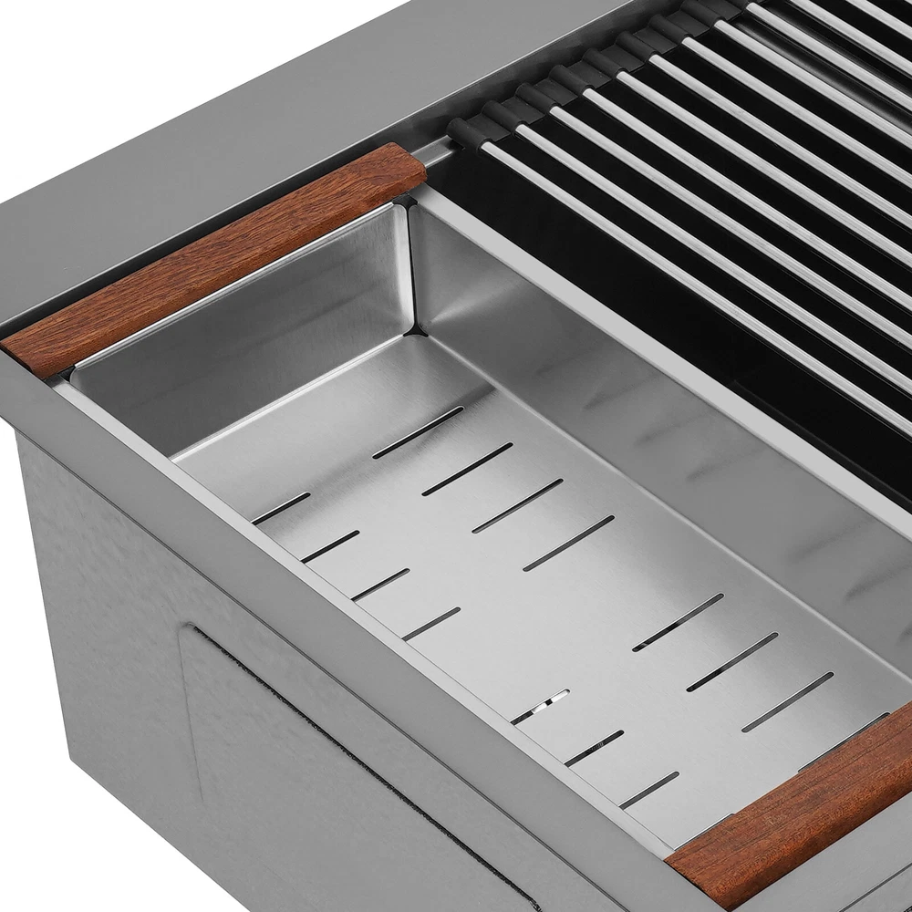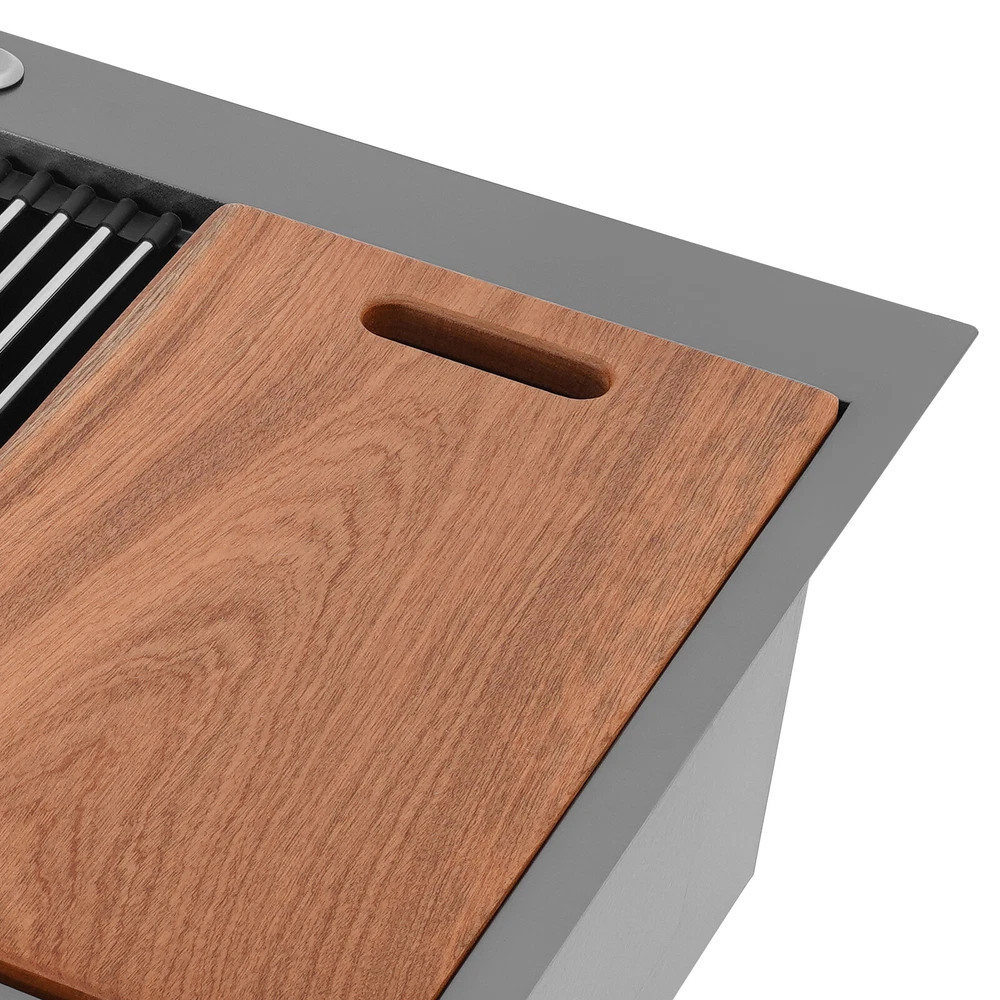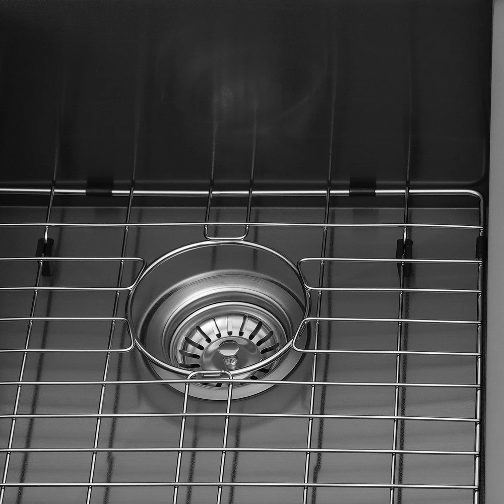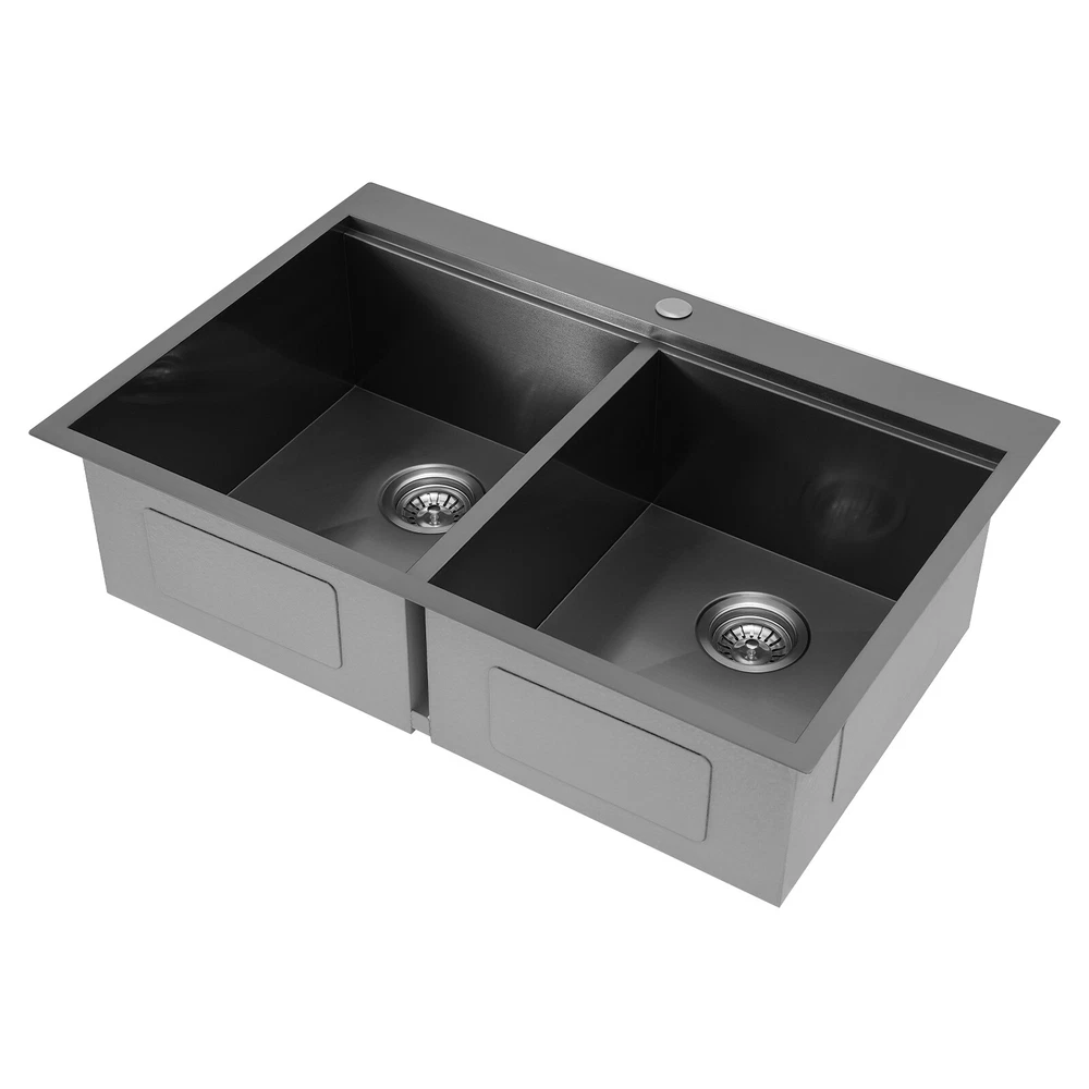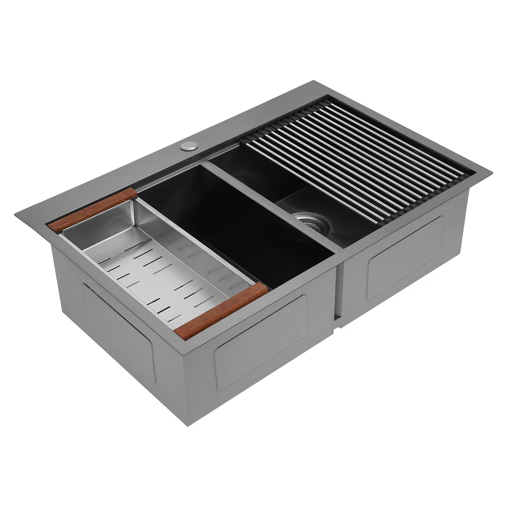 Specification Style: Modern Color: Grey Shape: Rectangular Material: 304 Stainless Steel, 201 Stainless Steel, Rubber Surface Treatment: Brushed and PVD Installation Type: Topmount, Flushmount Number of Bowls: 2 Gross Weight: 25kg/55.12lbs Net Weight: 23.75kg/52.36lbs Product Size: 83.8*55.88*22.86cm/33*22*9 in Each Bowl Size: 45.72*38.1*22.86cm/18*15*9in Package Size: 87*58*28cm/34.25*22.83*11.02in Package Included 1* Double-Bowl Kitchen Sink 1* Cutting Board 1* Roll-up Rack 1* Drain Basket 2* Bottom Grids Other Accessories for Assembly 33*22*9" Double-Bowl Kitchen Sink Stainless Steel Kitchen Sink w/Cutting Board Specification Style: Modern Color: Grey Shape: Rectangular Material: 304 Stainless Steel, 201 Stainless Steel, Rubber Surface Treatment: Brushed and PVD Installation Type: Topmount, Flushmount Number of Bowls: 2 Gross Weight: 25kg/55.12lbs Net Weight: 23.75kg/52.36lbs Product Size: 83.8*55.88*22.86cm/ 33*22*9 in Each Bowl Size: 45.72*38.1*22.86cm/18*15*9in Package Size: 87*58*28cm/34.25*22.83*11.02in Package Included 1* Double-Bowl Kitchen Sink 1* Cutting Board 1* Roll-up Rack 1* Drain Basket 2* Bottom Grids Other Accessories for Assembly Application This product can be widely used at homes, restaurants, bars, hotels, cafes, milk tea shops, school canteens, dessert shops, cafeterias, garages, clean rooms, and any other commercial places for manual cleaning of food, fruits, vegetables, dishes, etc. Description What if there is not enough space in the kitchen sink? What do you do if the sink is always clogged and can't be cleaned all the time? Then I suggest taking a look at our double-bowl kitchen sink with excellent material and easy cleaning features, which can easily solve the above problems and help you to create a more tidy kitchen. Key Features Last and Durable: Made of 304 stainless steel, and 201 stainless steel with brushed and PVD processes, it is rustproof , and can resist corrosion, impact, and deformation, so it can remain beautiful and practical for a long time. Thoughtful Design: The X-shaped water guiding line can guide water flow and form vortices to achieve rapid drainage. The anti-condensation coating effectively prevents excessive temperature differences and protects the cabinet from moisture. I t is equipped with sound insulating pads, which can effectively reduce the noise generated by the faucet water release and the collision of dishes, creating a quiet kitchen environment. Kitchen Assistant: Our product comes with a cutting board for easy vegetable cutting. In addition, the roll-up rack can help drain your dishes, the drain basket is beneficial for draining vegetables and fruits, and two bottom grids can effectively protect the sink base. Large Capacity: A large and deep (9-inch) sink with two bowls can hold a large amount of dishes, making you more comfortable and efficient when washing. It is a great helper for you to clean dishes or prepare food. Easy to Clean: The smooth surface, simple construction, and R0 round corner design that does not easily harbor dirt make the sink easy to rinse with clean water. Complete Accessories: It comes with a sink, a cutting board, a roll-up rack, a drain basket, two bottom grids, etc. to meet your various needs at once and also save you money. Quality Service: We stand behind all our guests and look forward to assisting you with your purchase. It is our pleasure to answer your confusion and questions. The end of the story between us is definitely not "we sell and you buy" Details Filter Basket: The filter basket intercepts food residue for easy handling and prevents your pipeline from clogging. Tier Track: It allows you to easily place and move the cutting board, roll-up rack, and drain basket, converting your sink to a workstation and providing you with more space. Notes Please check the size carefully before ordering. Please note that this product does not include a faucet. Please do not scratch its surface with sharp objects to obtain a longer service life. If you want to get a better installation effect, we suggest you ask professional workers to install it. Please allow the slight color difference caused by the shooting light and 1-3cm error due to manual measurement, and make sure you do not mind before ordering. Payment Delivery details Terms of sales About us Contact us Payment We accept ebay payment 。 Fees such as import duties, taxes are not included in the item price or shipping costs. These charges are the buyer's responsibility. Delivery details Shipping: 2-9 working days to: USA Terms of sales We maintain high standards of excellence and strive for hundred percent customer satisfaction. Feedback is very important to us. We hope that you contact us immediately before you give neutral or negative feedback, so that we can address your concerns. It is impossible to address issues if we do not know about them! About us Your satis faction is our ultimate goal. We work hard to earn your trust and future business. Our certified technicians have tested each item before shipping. The unit comes with 1 year limited warranty on all manufacturing defects. a) If you receive a defective item, you may return it or ask for a discount. Please contact us within 14 days after you receive the package. b) What you returned must be intact and in its original packaging as re? u. Customer is responsible for shipping costs of the returned item. c) We will cover the cost of shipping back t with the shipping rate indicated in the registration page. We will send you a new unit or refund the full payment you paid. Thank you. Contact us Business Hour Business Hour: Monday To Friday: 8:30 AM to 5:00 PM (Beijing China time) Due to time zones, our reply to your questions may not be immediately. But within above working time, we will reply your email within 24 hours. If it's non-workdays, please kindly be patient and wait till Monday. Please contact us with ebay message. Please feel free to contact us if you have any questions. Monday