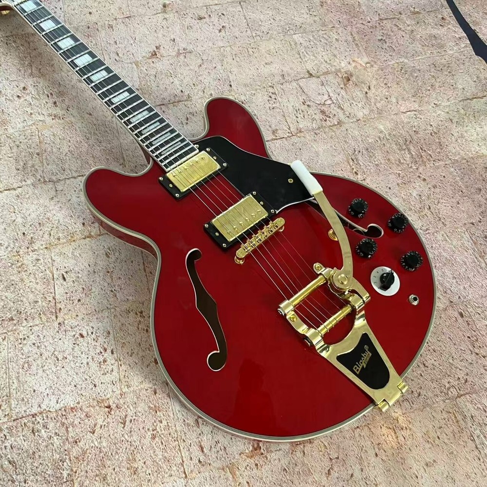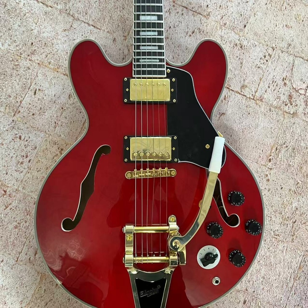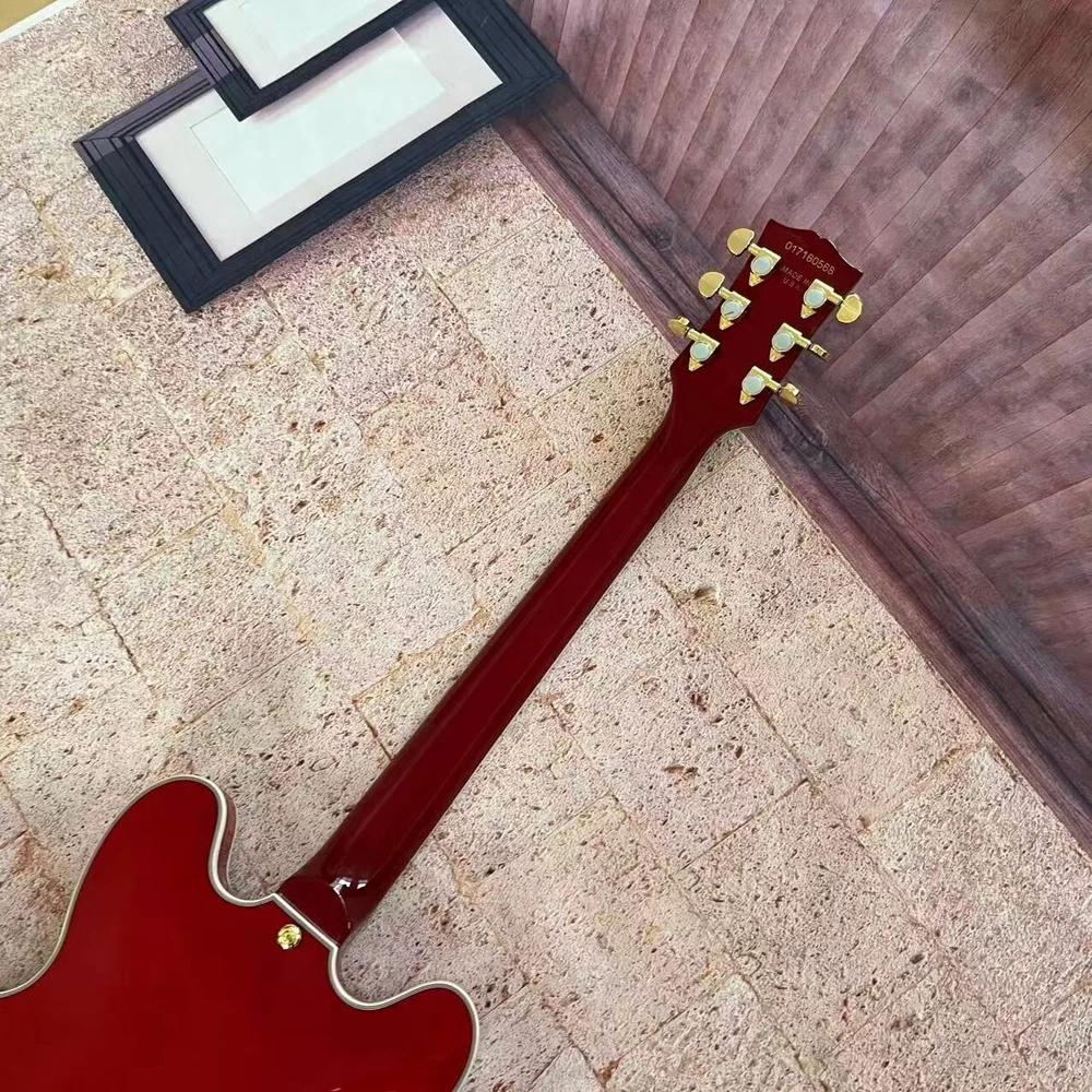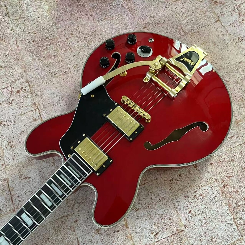 US Stock Jazz 335 Red Semi-Hollow Electric Guitar with White Binding Fast Delivery