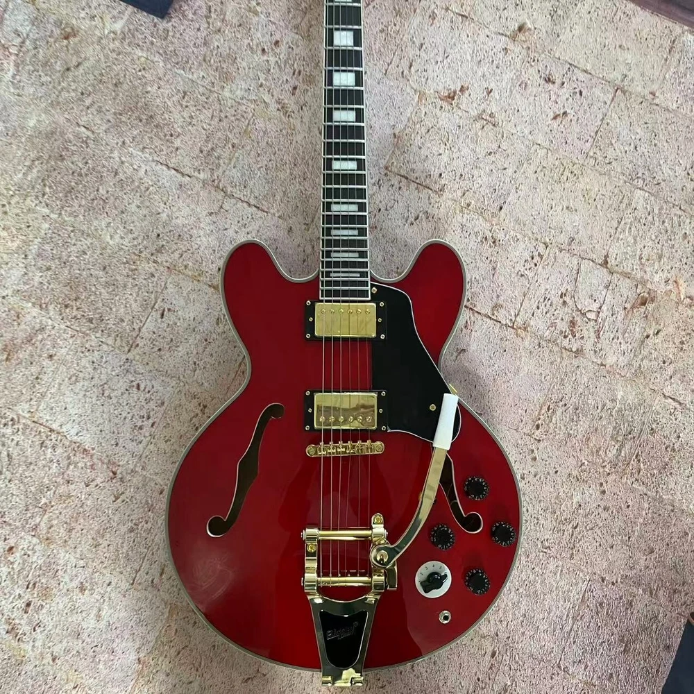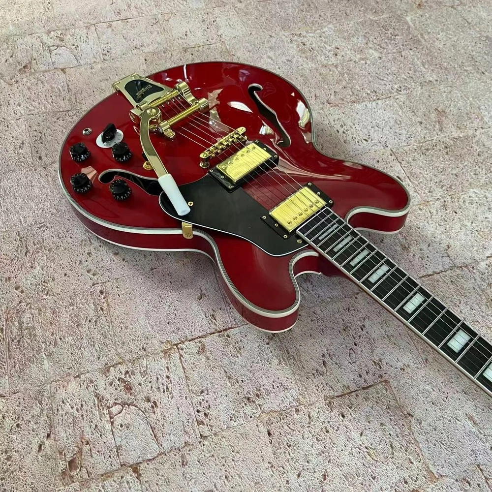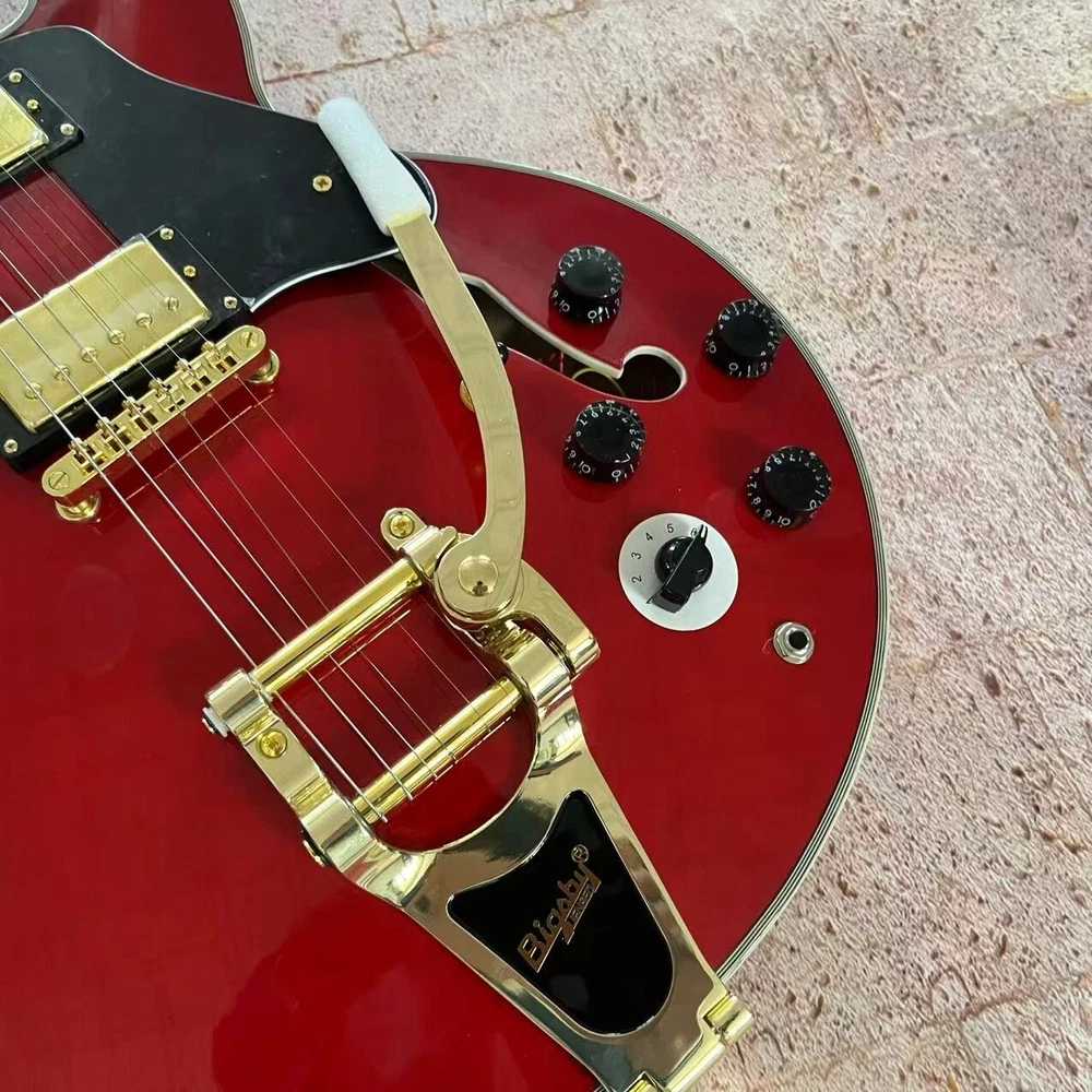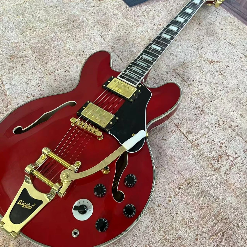 US Stock Jazz 335 Red Semi-Hollow Electric Guitar with White Binding Fast Delivery